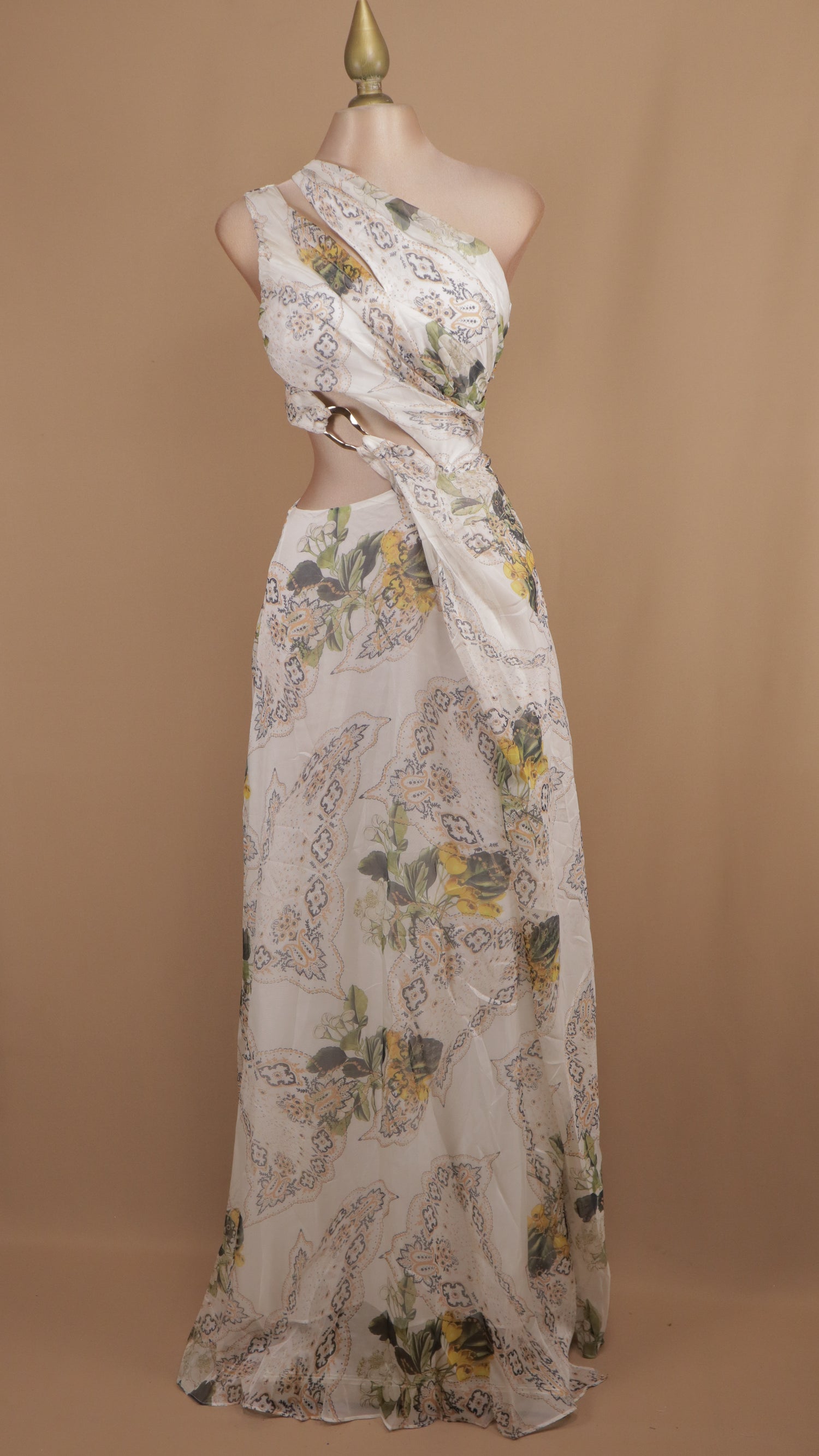 Palazzo asimétrico con botones dorados