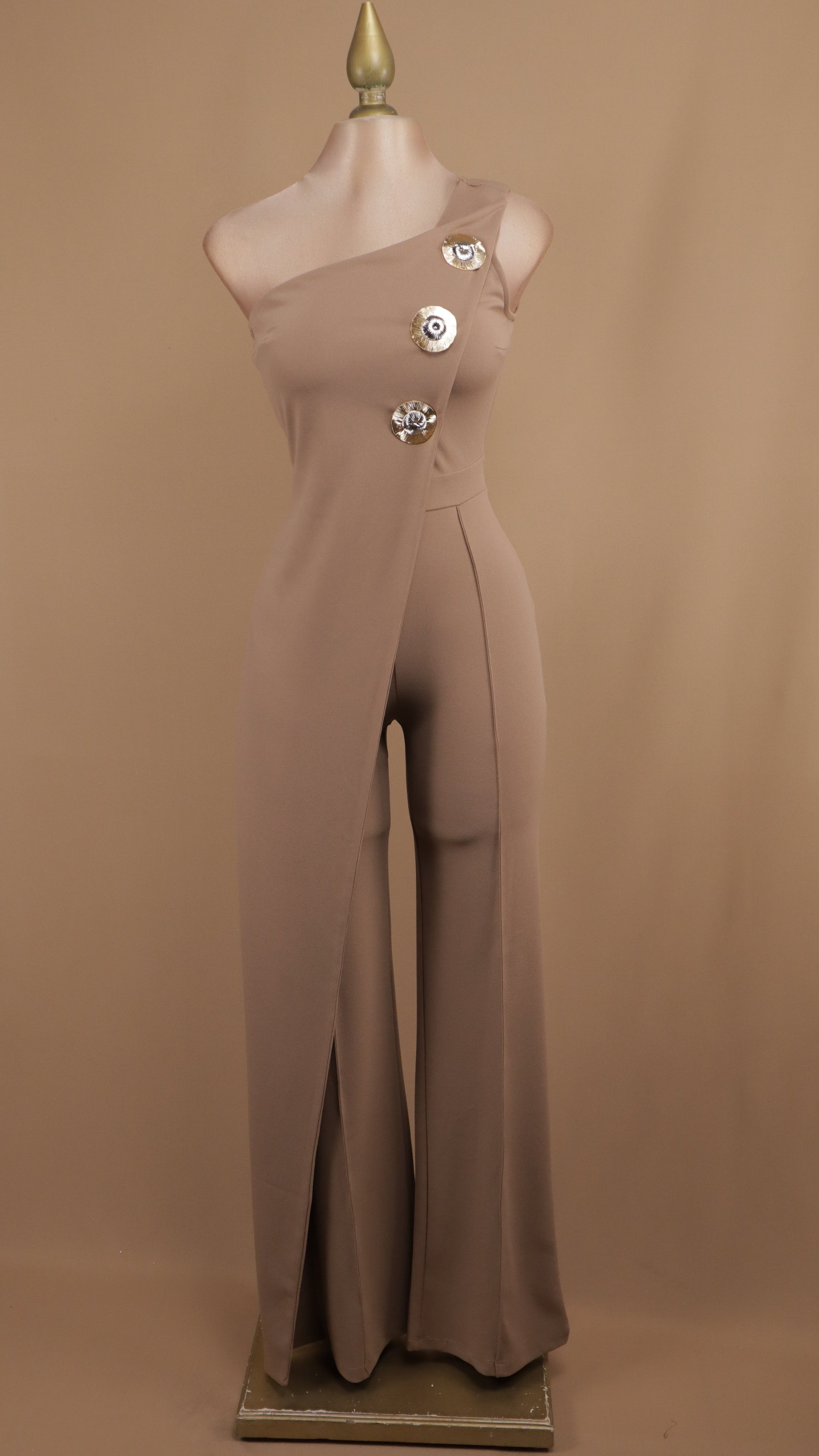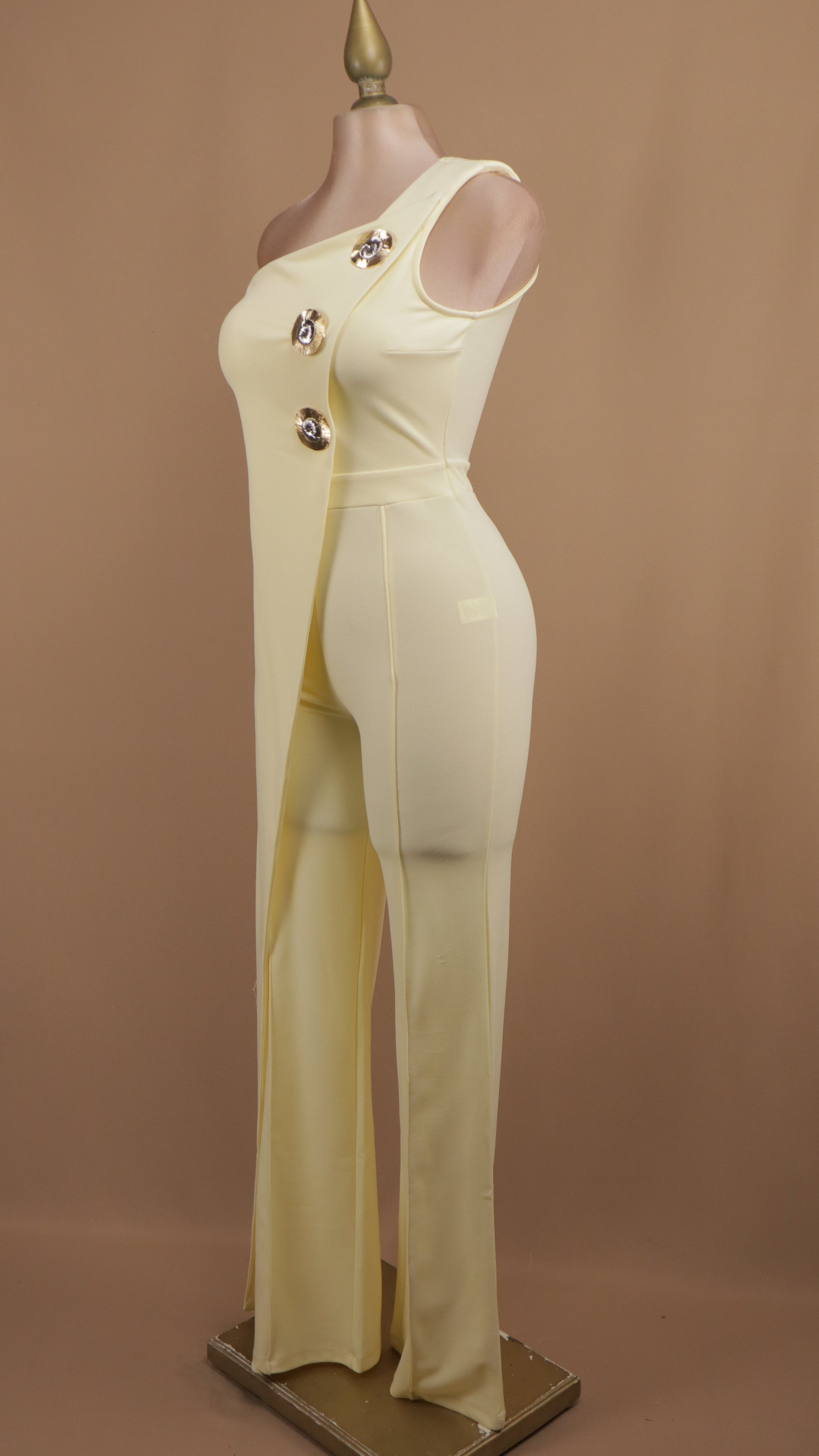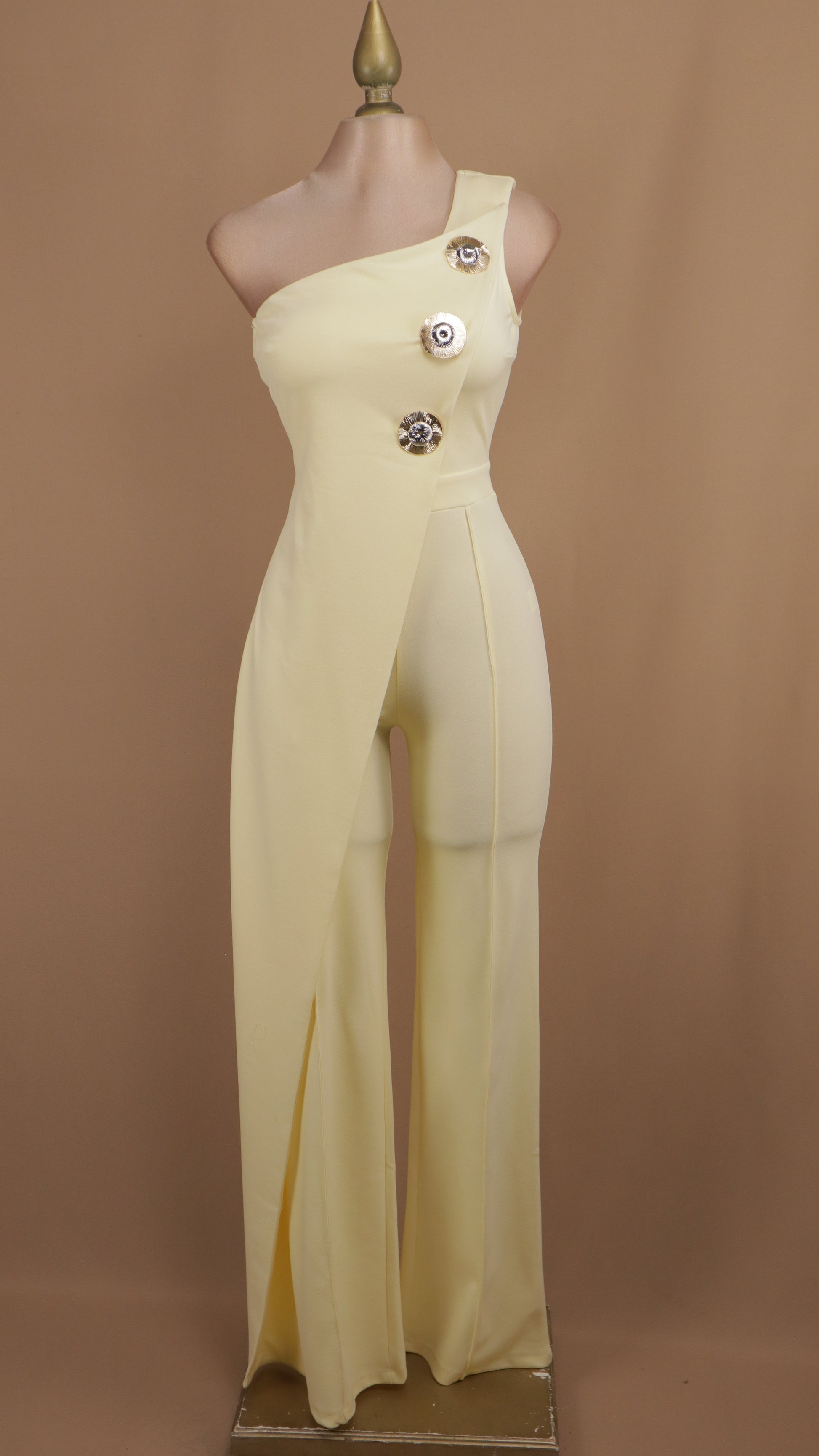 Palazzo asimétrico con diseño moderno y sofisticado. Confeccionado en tela fluida que favorece la silueta, este pantalón destaca por su corte irregular que combina elegancia con un toque contemporáneo. Los botones dorados añaden un detalle de lujo que eleva cualquier look, desde casual hasta formal. Perfecto para quienes buscan prendas versátiles que se adapten a diferentes ocasiones. Cómodo y estiloso, es la opción ideal para lucir segura y radiante.