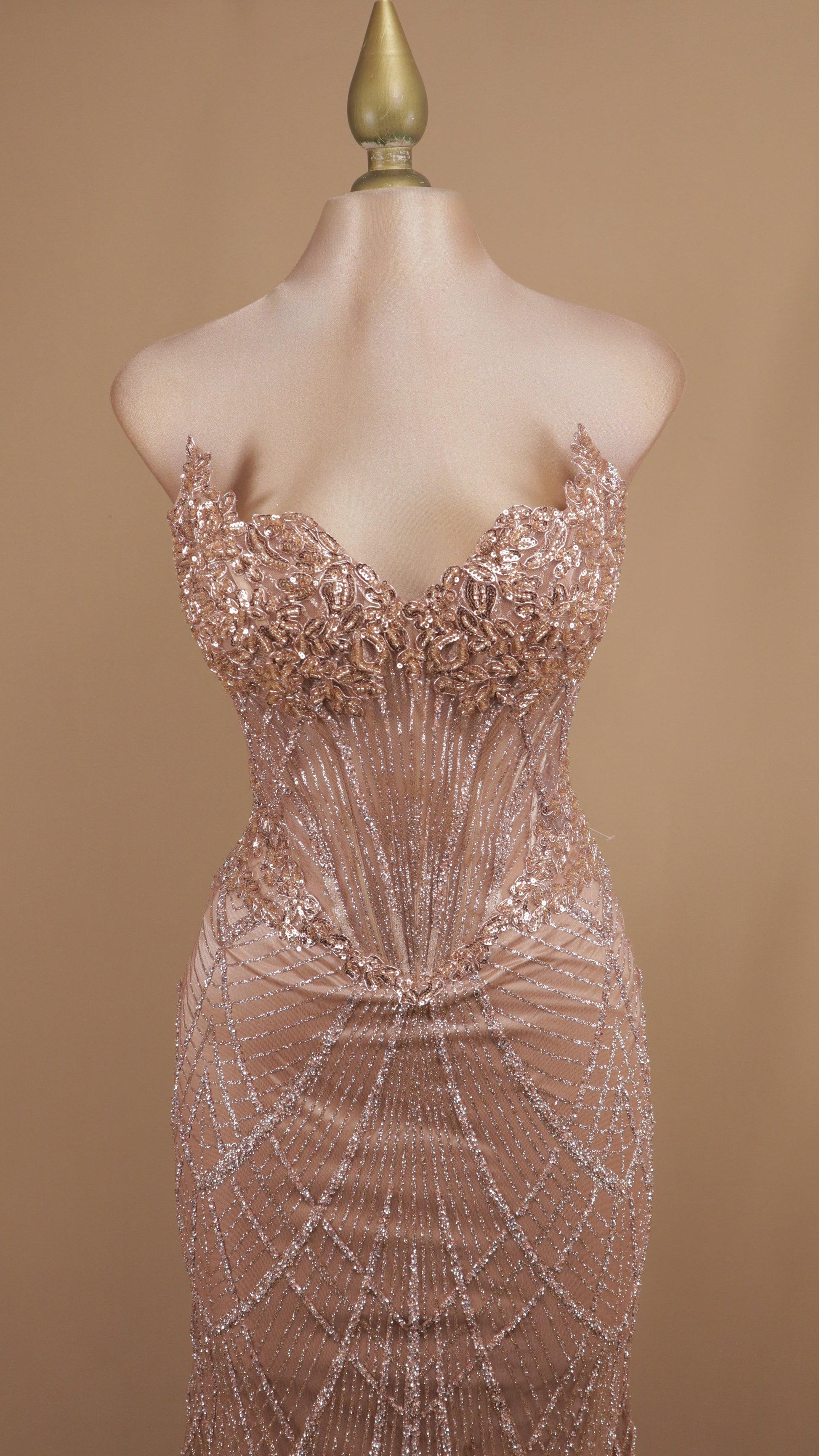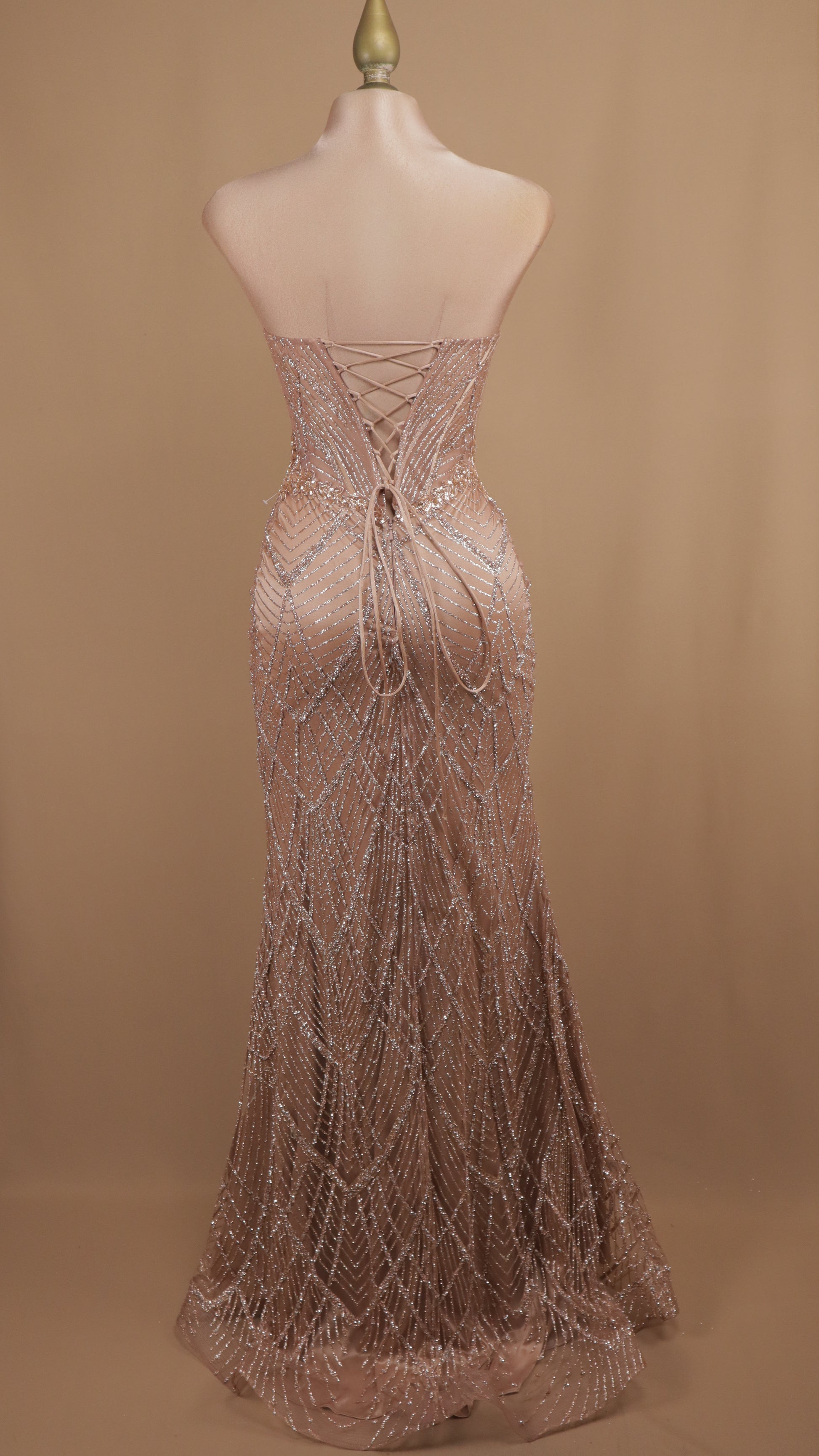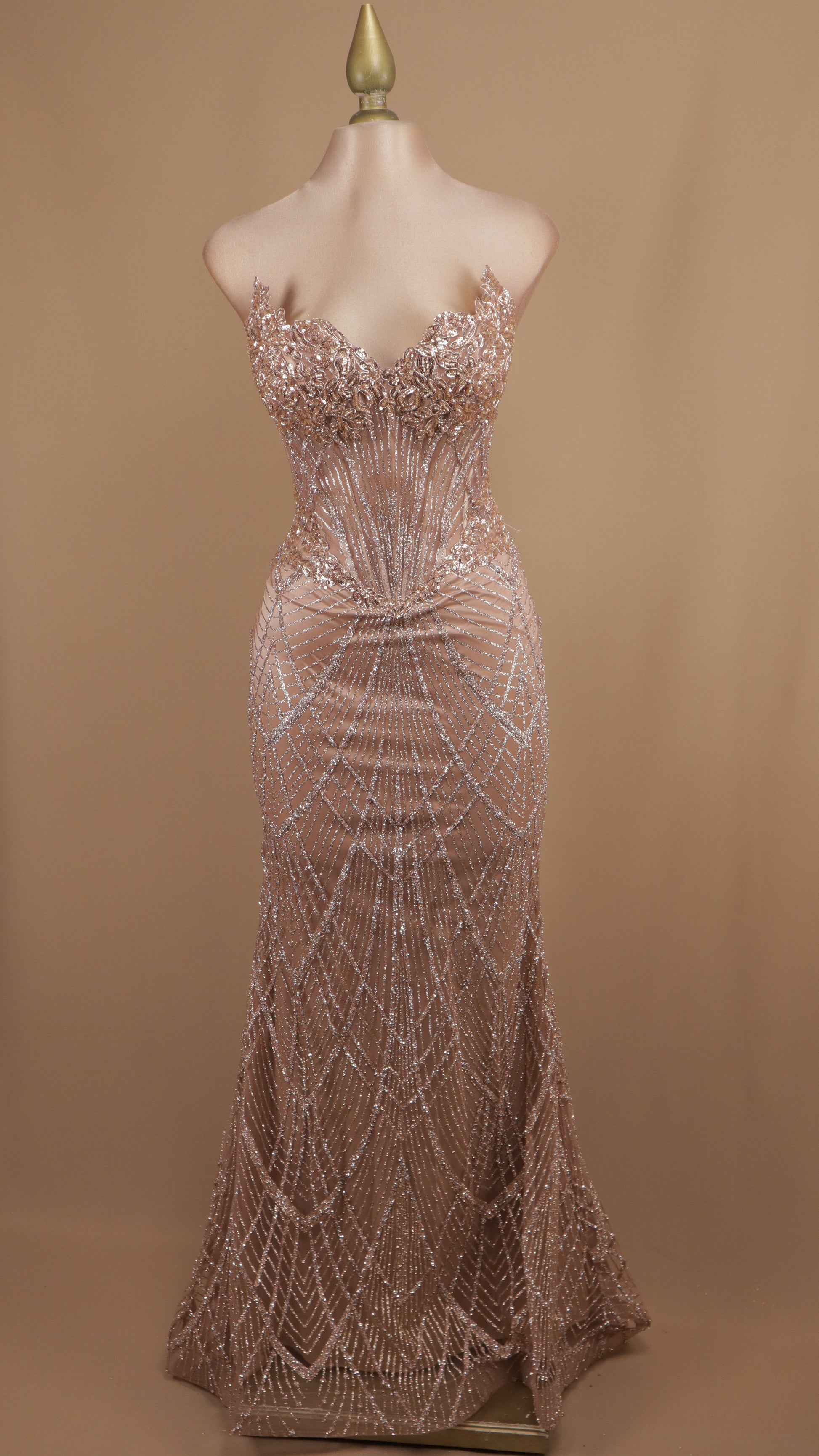Vestido largo de graduación straple con aplicación