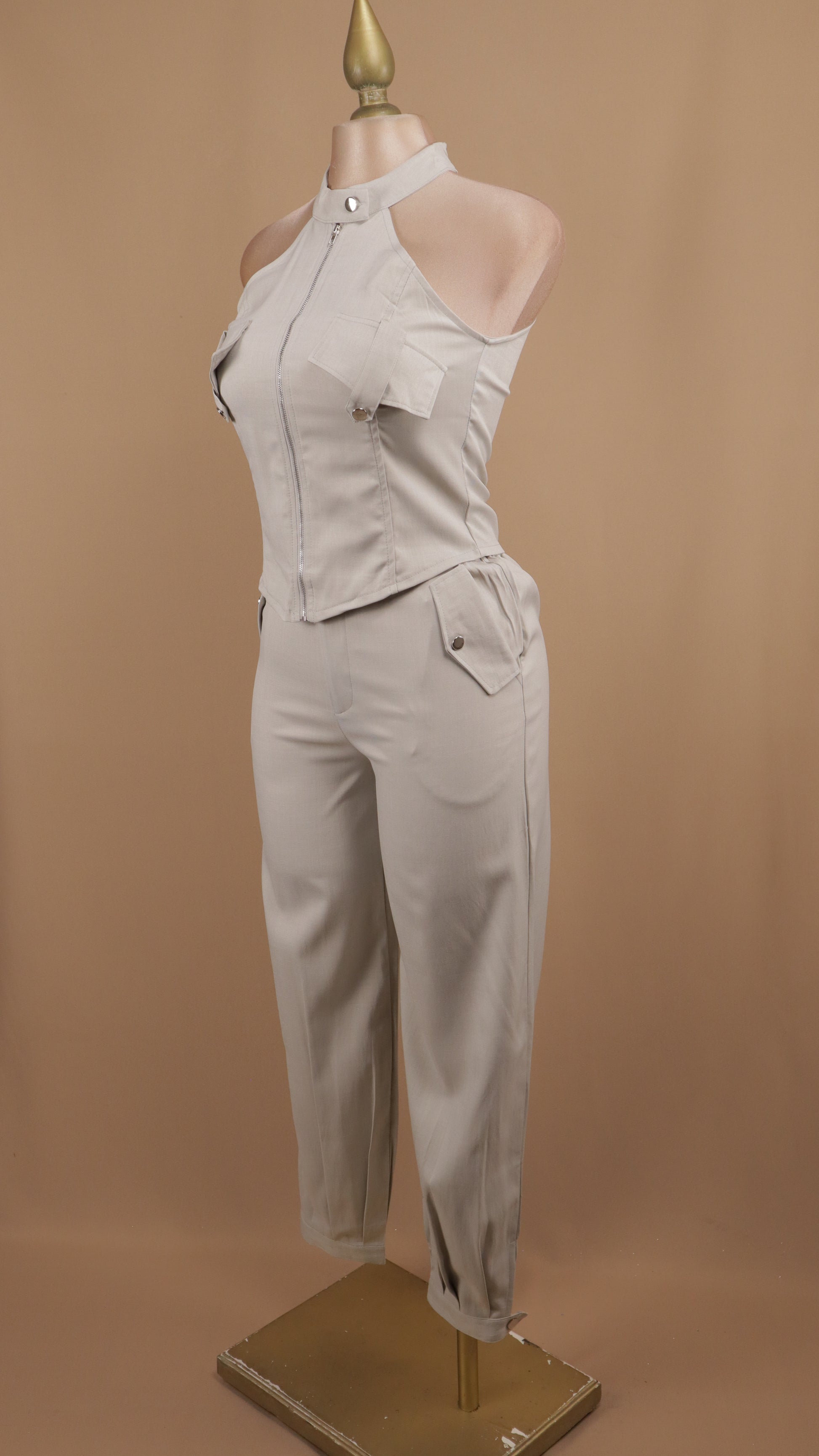 Luce espectacular con este conjunto de dos piezas que combina estilo y comodidad. El pantalón de corte moderno se adapta perfectamente a tu silueta, mientras que el crop halter con diseño atrevido realza tu figura de manera favorecedora. Ideal para salidas nocturnas, eventos especiales o cuando quieras sentirte segura y radiante. La combinación de prendas crea un look coordinado y sofisticado que te permitirá destacar sin esfuerzo. Versátil, cómodo y absolutamente trendy.