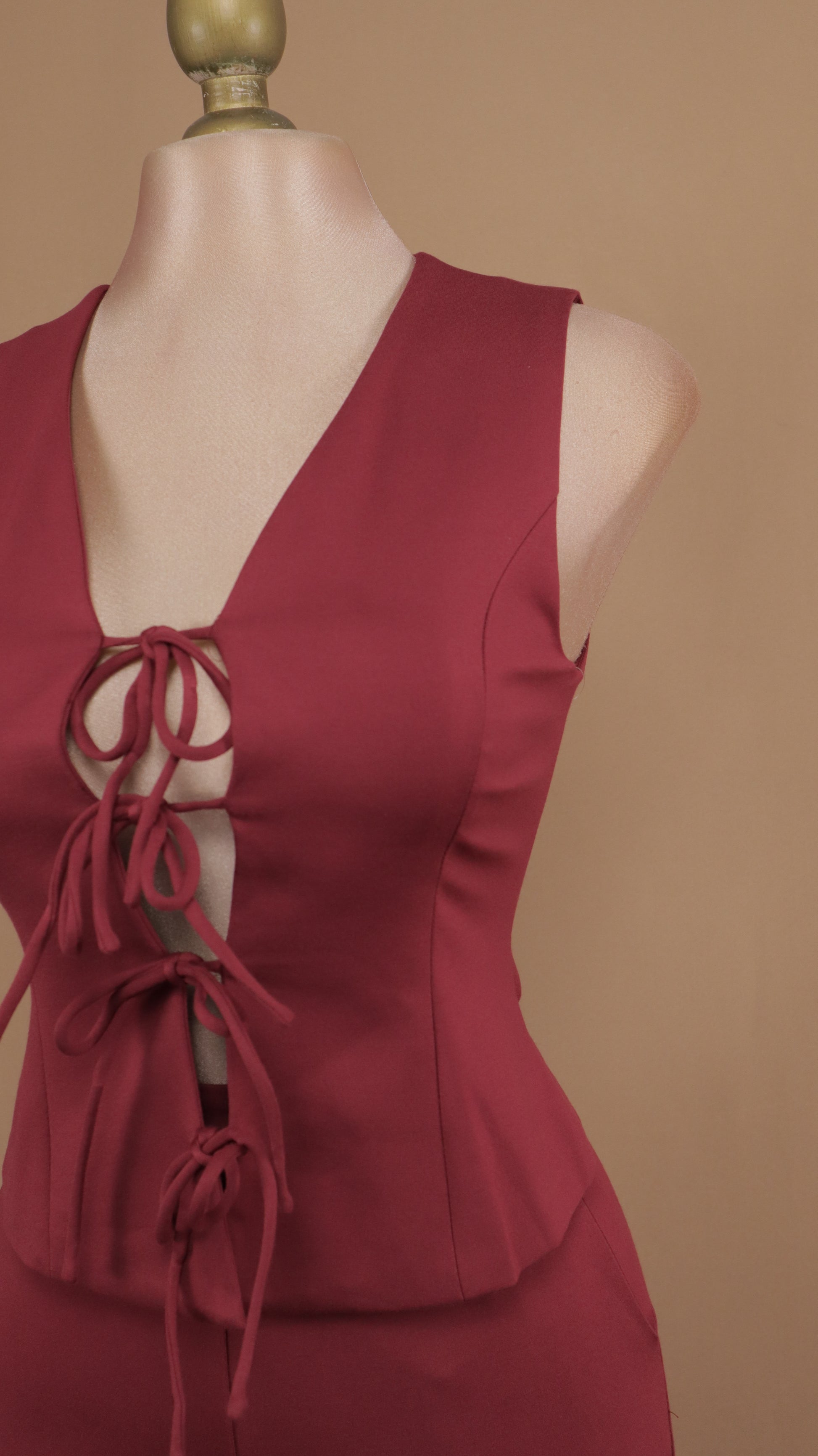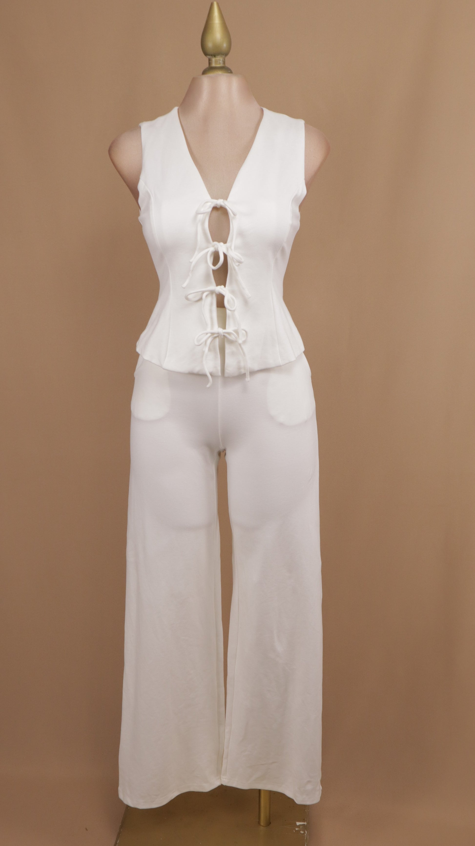Destaca con este conjunto juvenil que incluye un chaleco con lazos, diseñado para ofrecer estilo y comodidad en cada uso. La tela suave y de alta calidad asegura un ajuste perfecto, mientras que los lazos en el chaleco añaden un toque moderno y femenino.