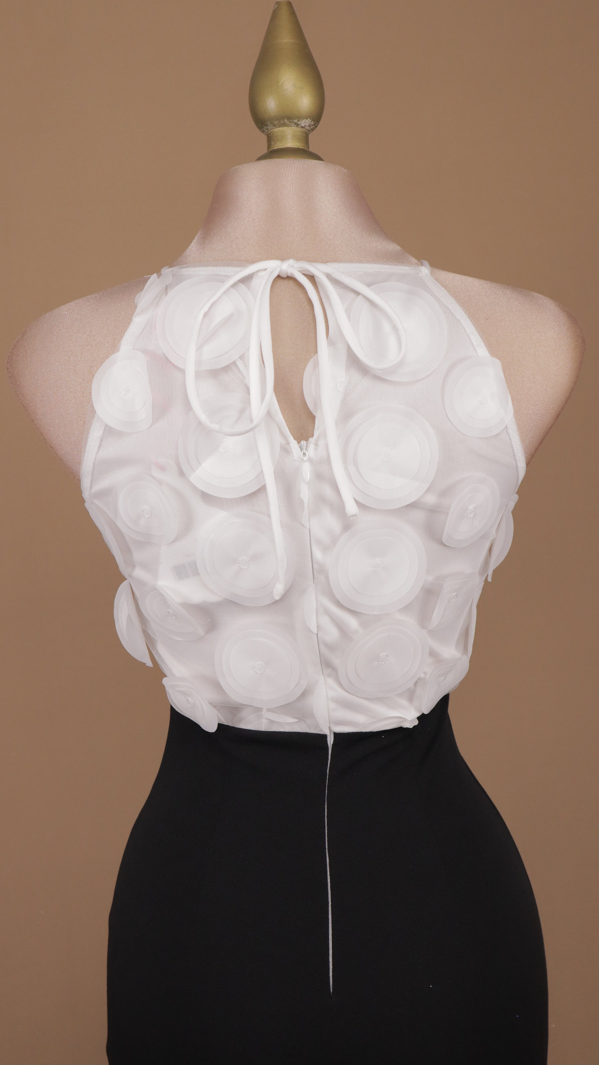 ¡Luce elegante y moderna con nuestro PALAZZO BICOLOR HALTER! Con un diseño único de CIRCULOS 3D en el busto y un pantalón ajustado, este palazzo te hará lucir increíblemente estilosa y sofisticada.