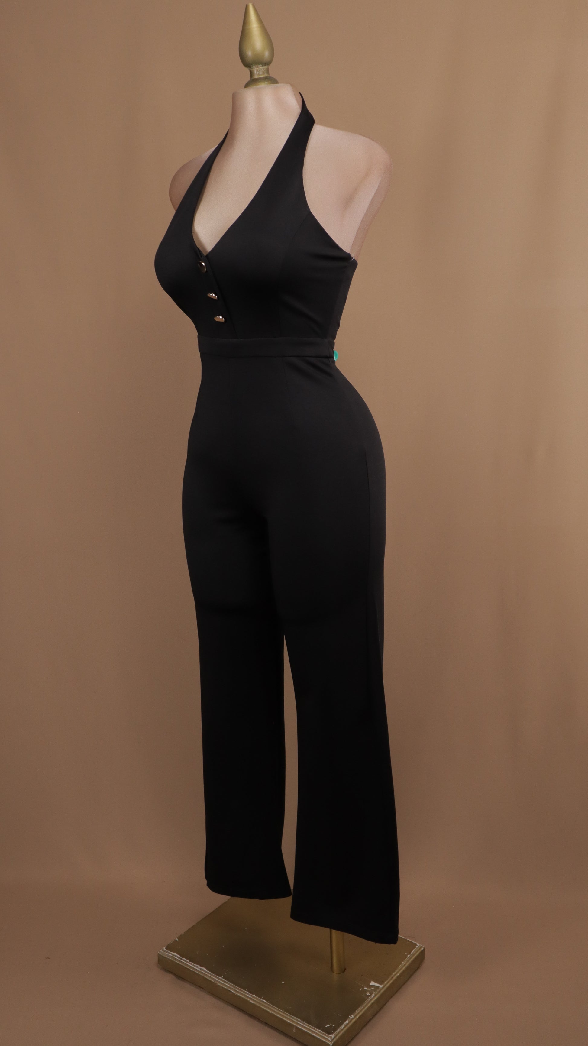 Descubre la elegancia y comodidad del palazzo con cuello halter, adornado con sofisticados botones dorados que añaden un toque de distinción. Su escote en la espalda realza tu silueta con un estilo fresco y moderno, ideal para destacar en ocasiones especiales. Perfecto para quienes buscan un look que combina moda y comodidad en un solo diseño.