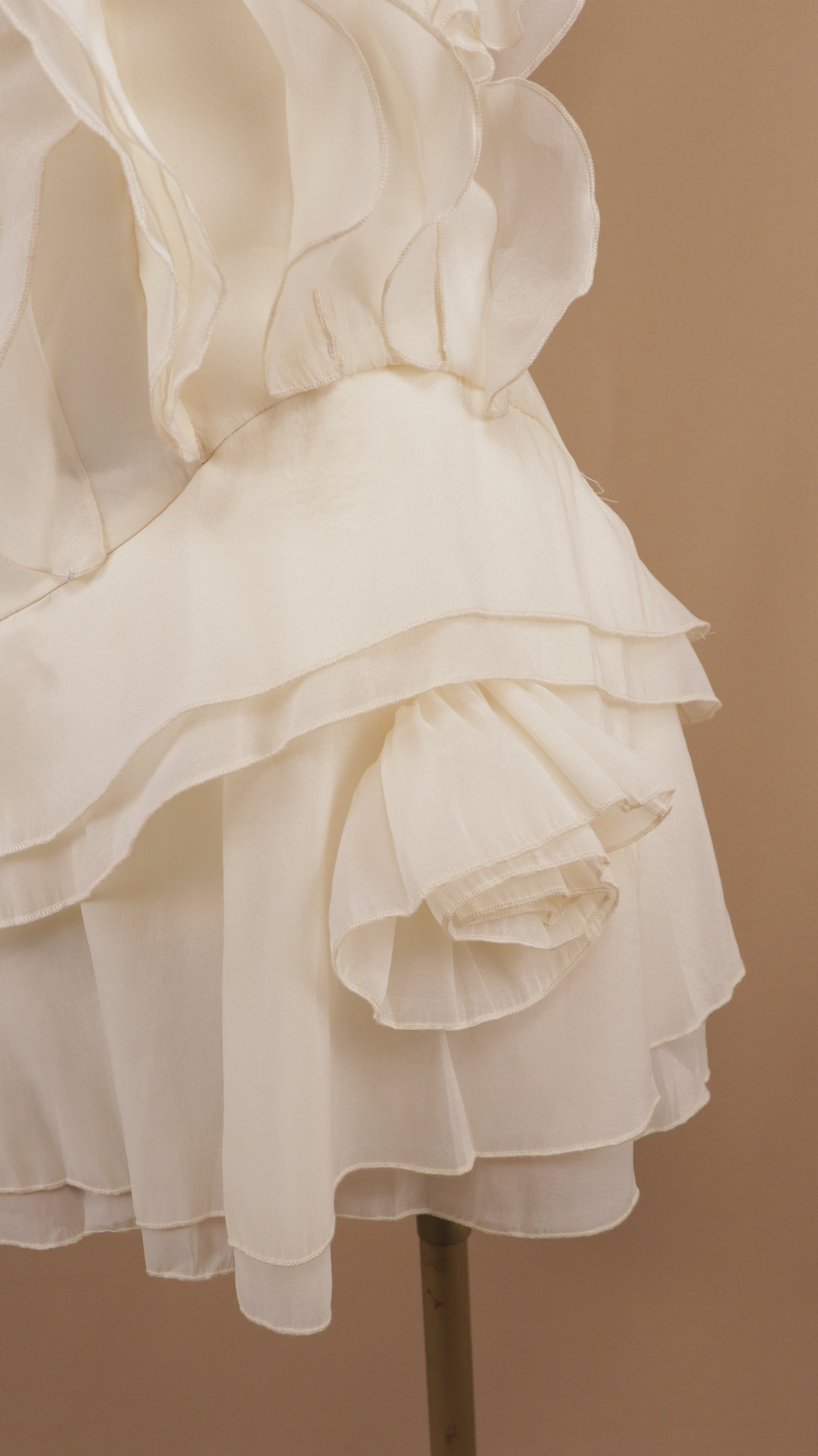 Vestido corto diseñado para destacar con elegancia. Presenta un escote en V que favorece la silueta, mientras que las escarolas añaden movimiento y textura a la prenda. Perfecto para ocasiones especiales, salidas nocturnas o eventos donde quieras lucir sofisticada. La combinación de estos detalles crea un look femenino y moderno que te hará sentir segura y hermosa.