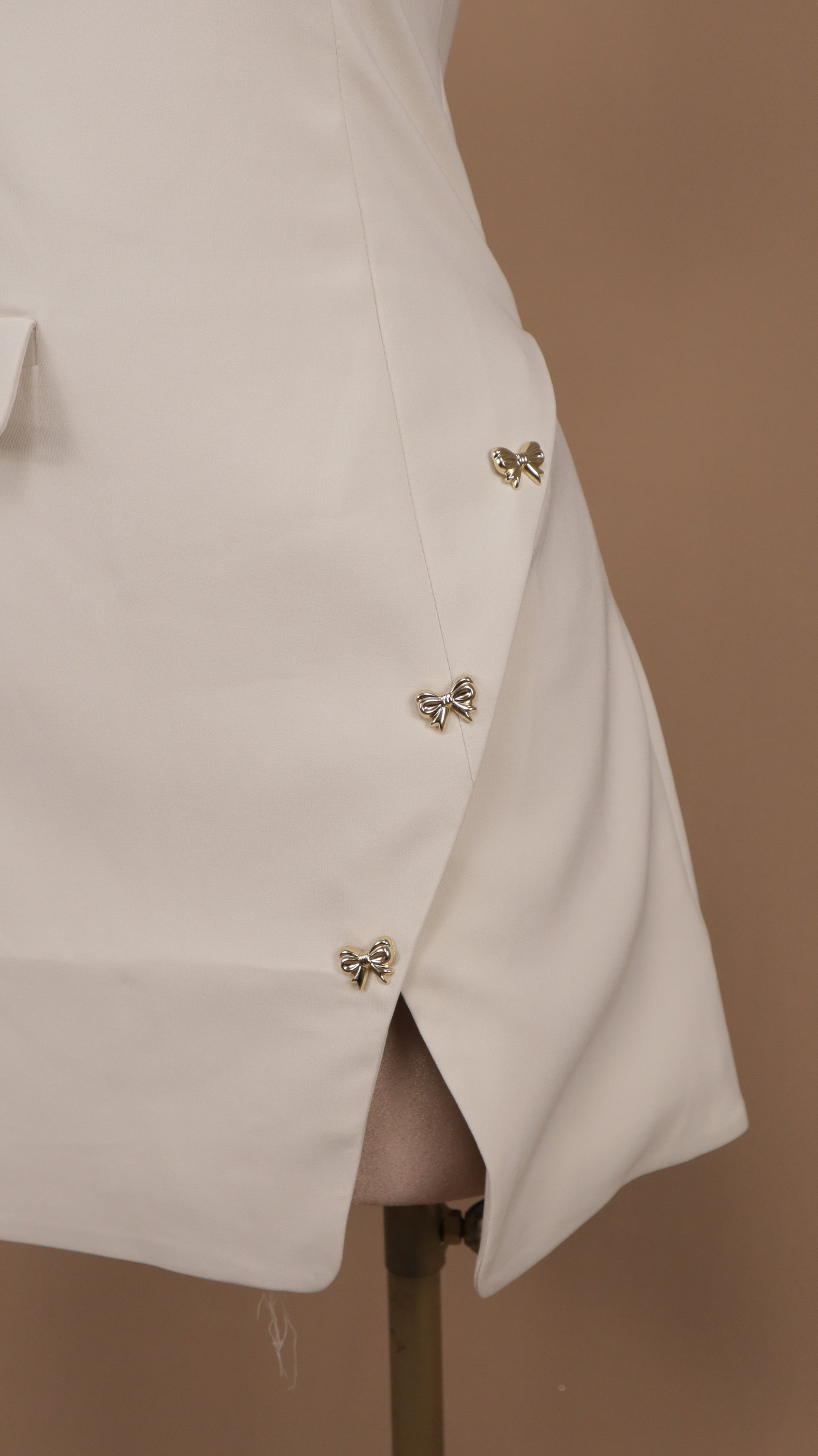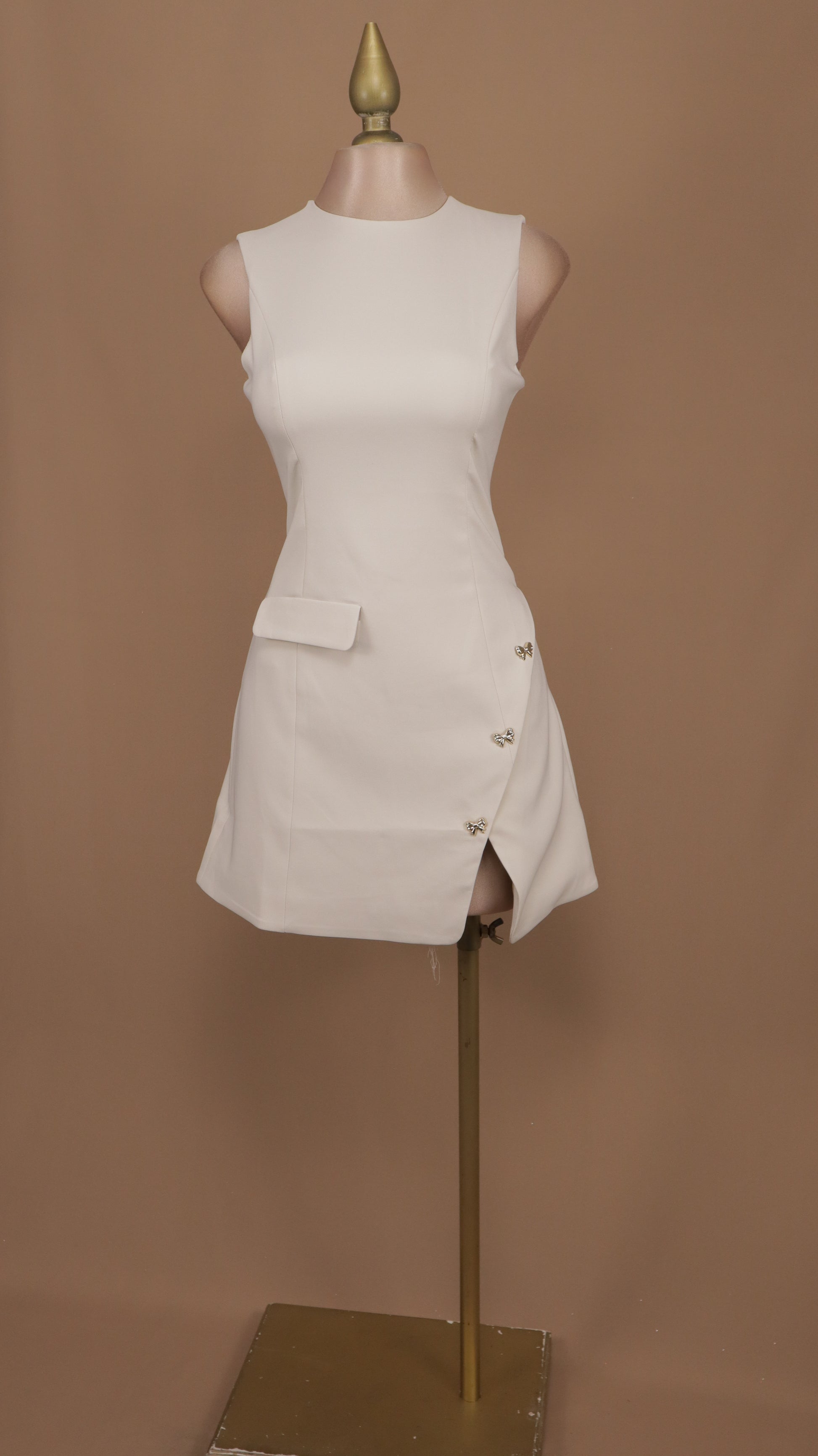 Este vestido corto resacado combina elegancia y estilo con una apertura sutil que aporta frescura y comodidad. La delicada decoración de moños añade un toque femenino y sofisticado, perfecto para destacar en cualquier ocasión especial. Su diseño favorecedor realza tu figura mientras te garantiza libertad de movimiento. Atrévete a brillar con este vestido que une encanto y modernidad en cada detalle.