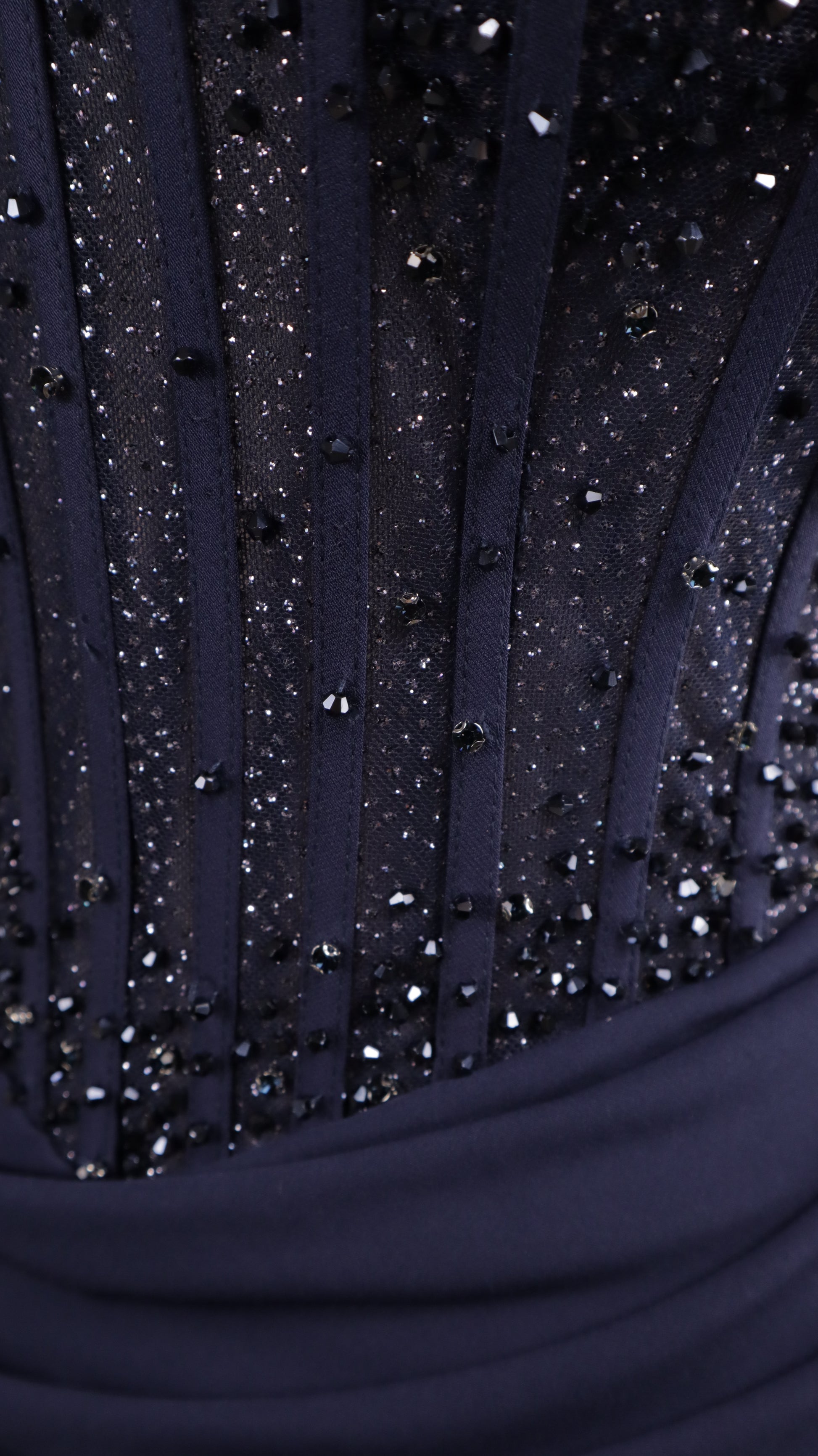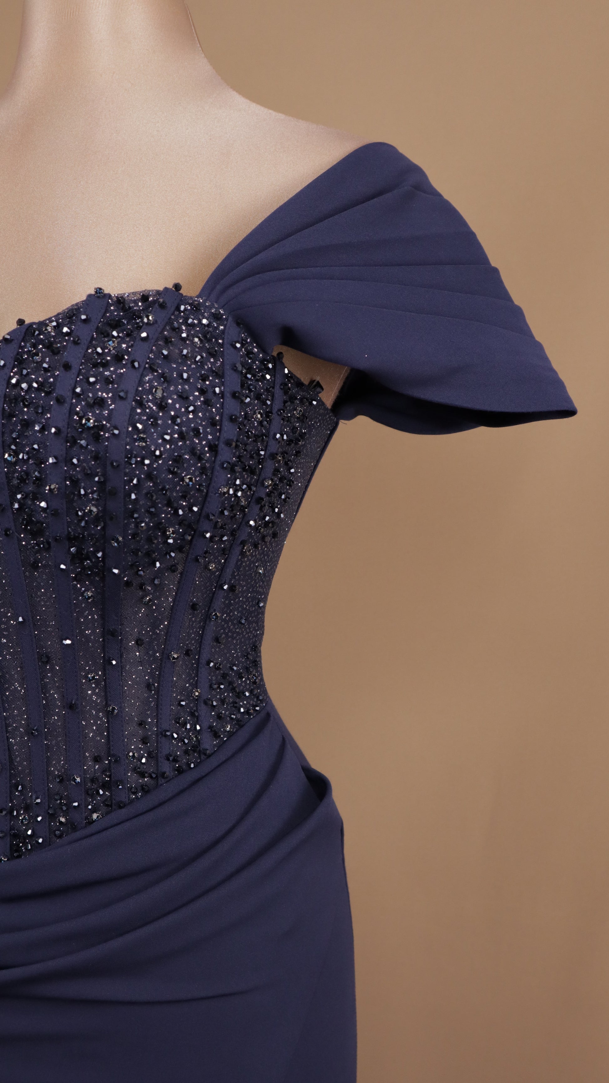 Vestido largo al hombro con aplicación y corte sirena (Copia)