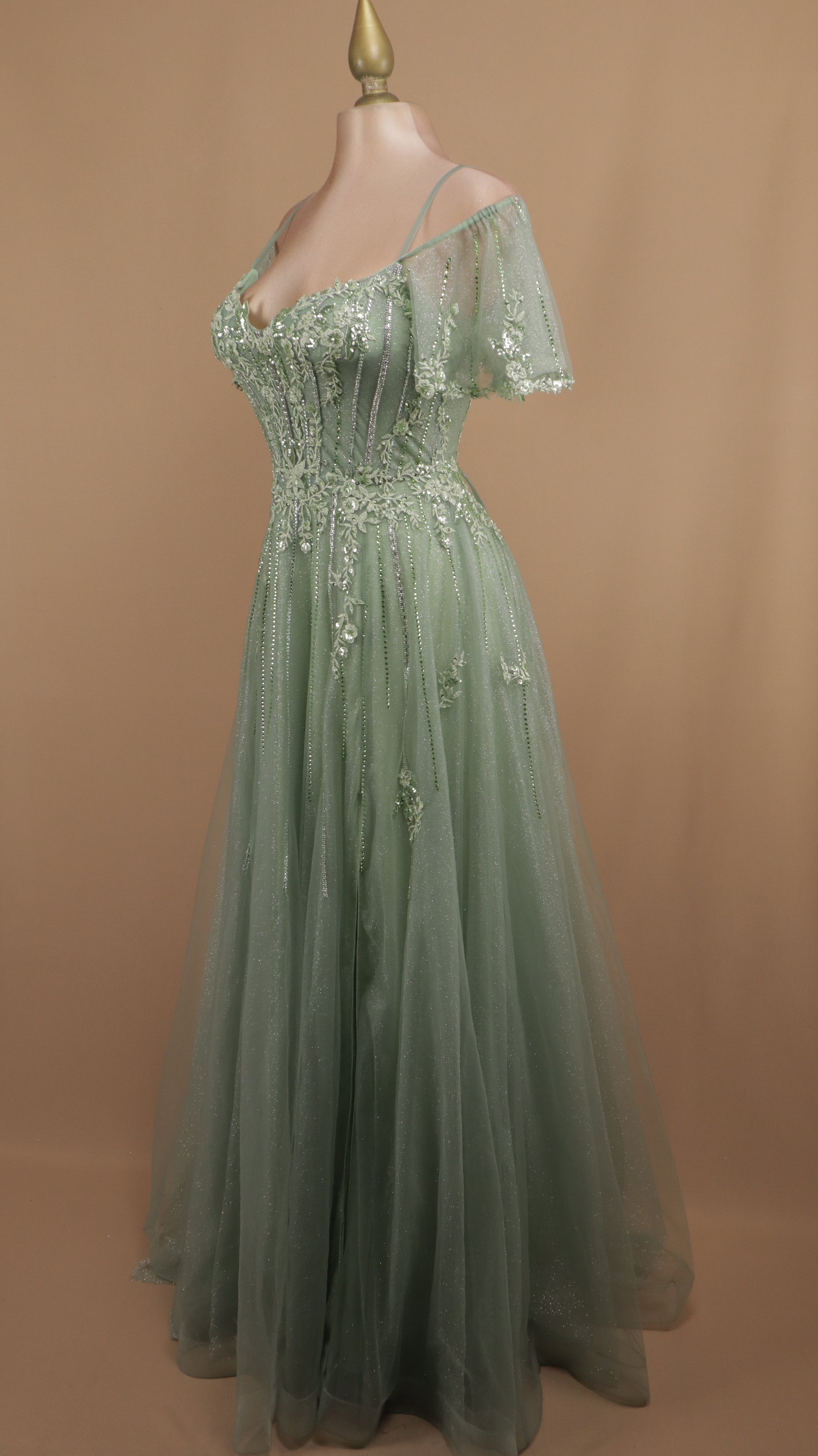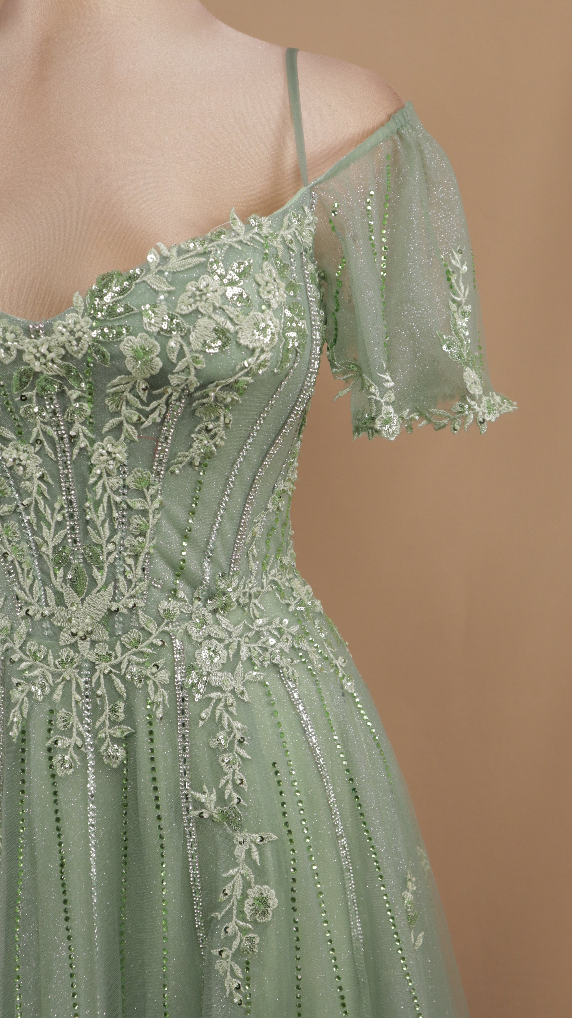 Vestido largo elegante con diseño al hombro que destaca por su delicado bordado artesanal y aplicaciones decorativas. Perfecto para ocasiones especiales, eventos formales o cenas de gala. La caída fluida del tejido proporciona comodidad y movimiento, mientras que los detalles bordados añaden sofisticación y un toque único a tu look. Ideal para lucir radiante en cualquier celebración.