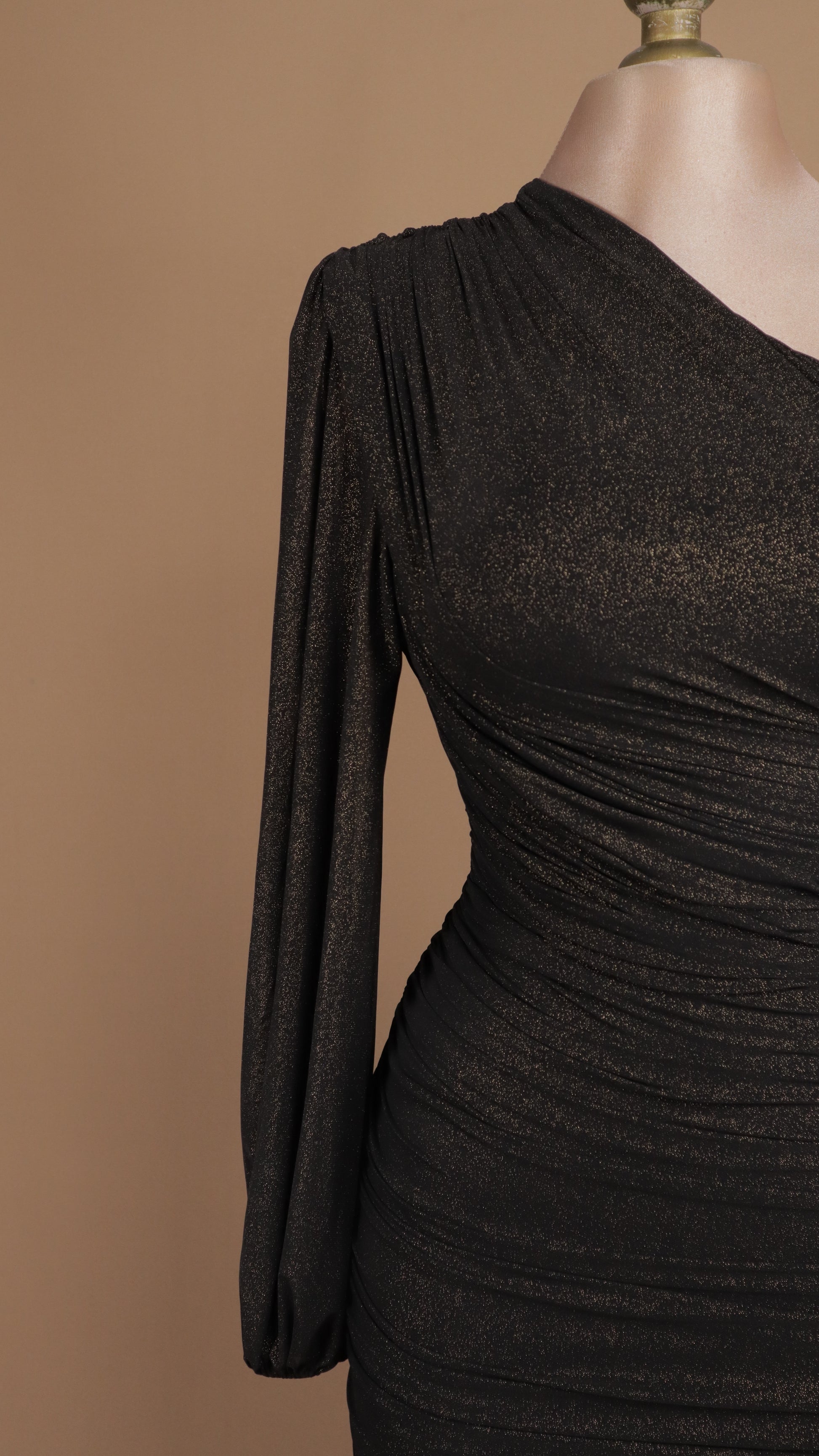 Luce radiante en cualquier ocasión con este vestido largo asimétrico que combina elegancia y movimiento. Su diseño asimétrico crea una silueta sofisticada y moderna, mientras que los destellos estratégicamente colocados capturan la luz con cada paso, añadiendo un toque de glamour irresistible. Perfecto para eventos especiales, cenas elegantes o noches memorables donde deseas destacar. La caída fluida del tejido favorece tu figura y proporciona comodidad sin sacrificar el estilo. Un vestido versátil que te hará sentir segura y deslumbrante.