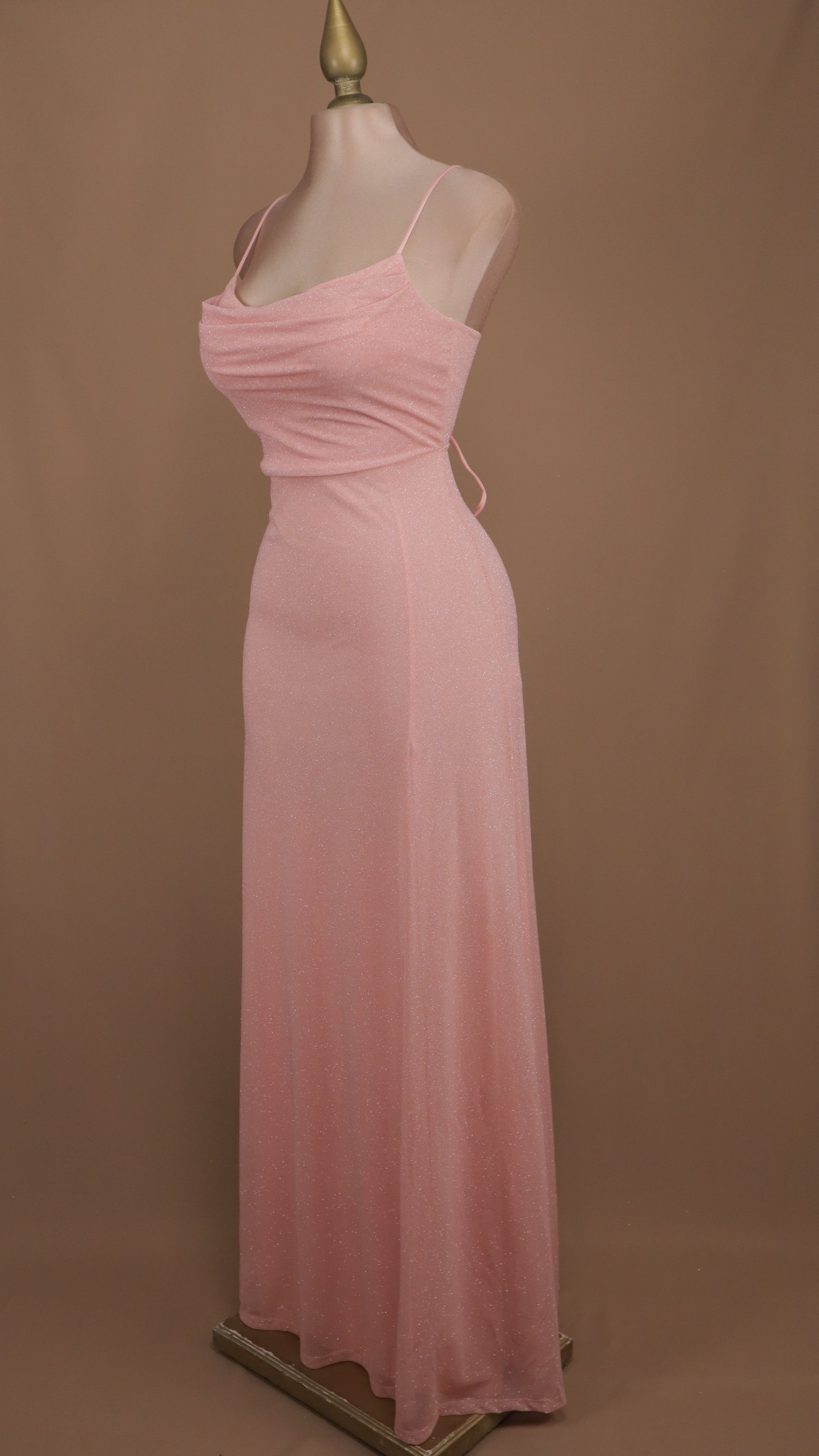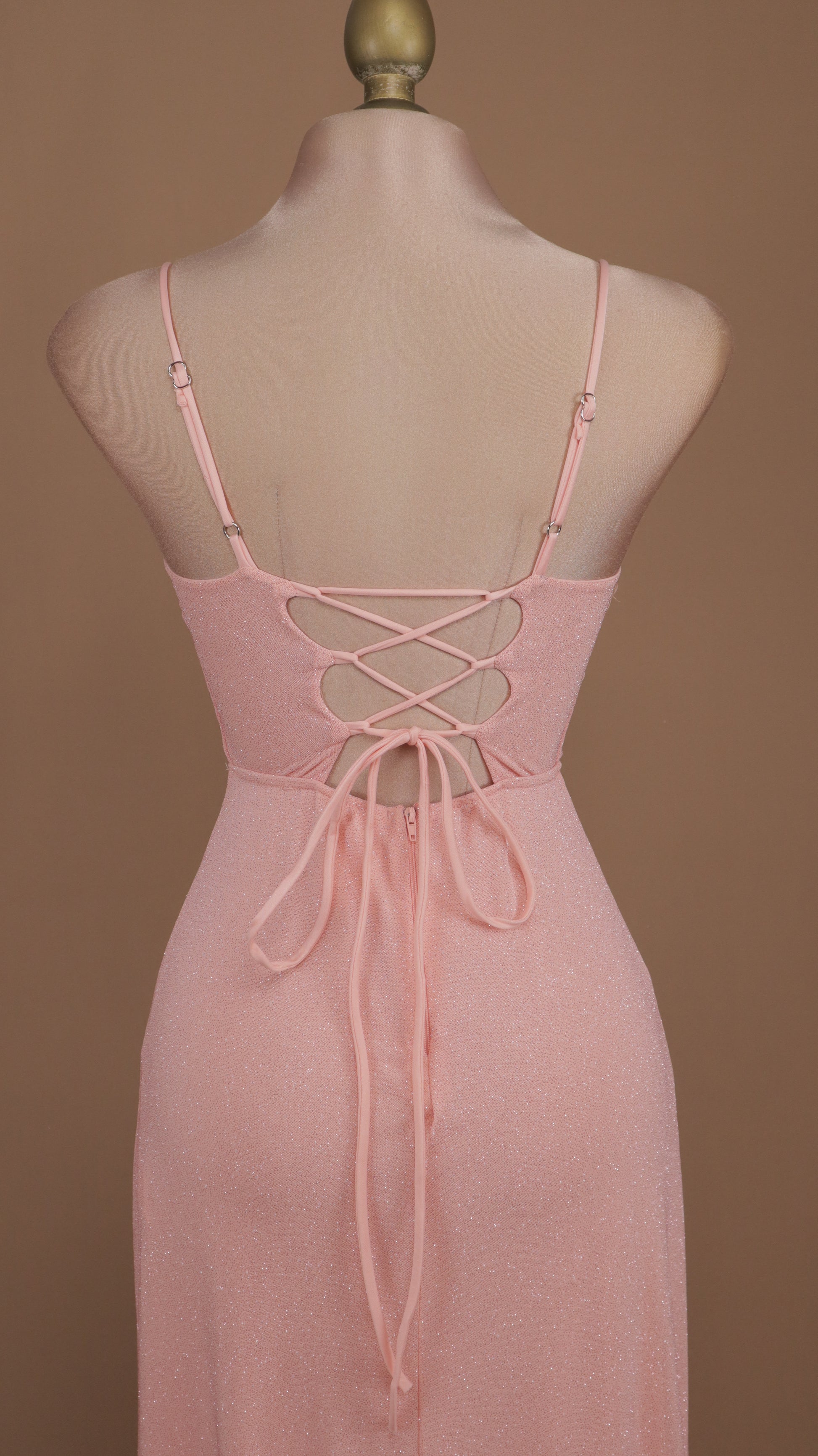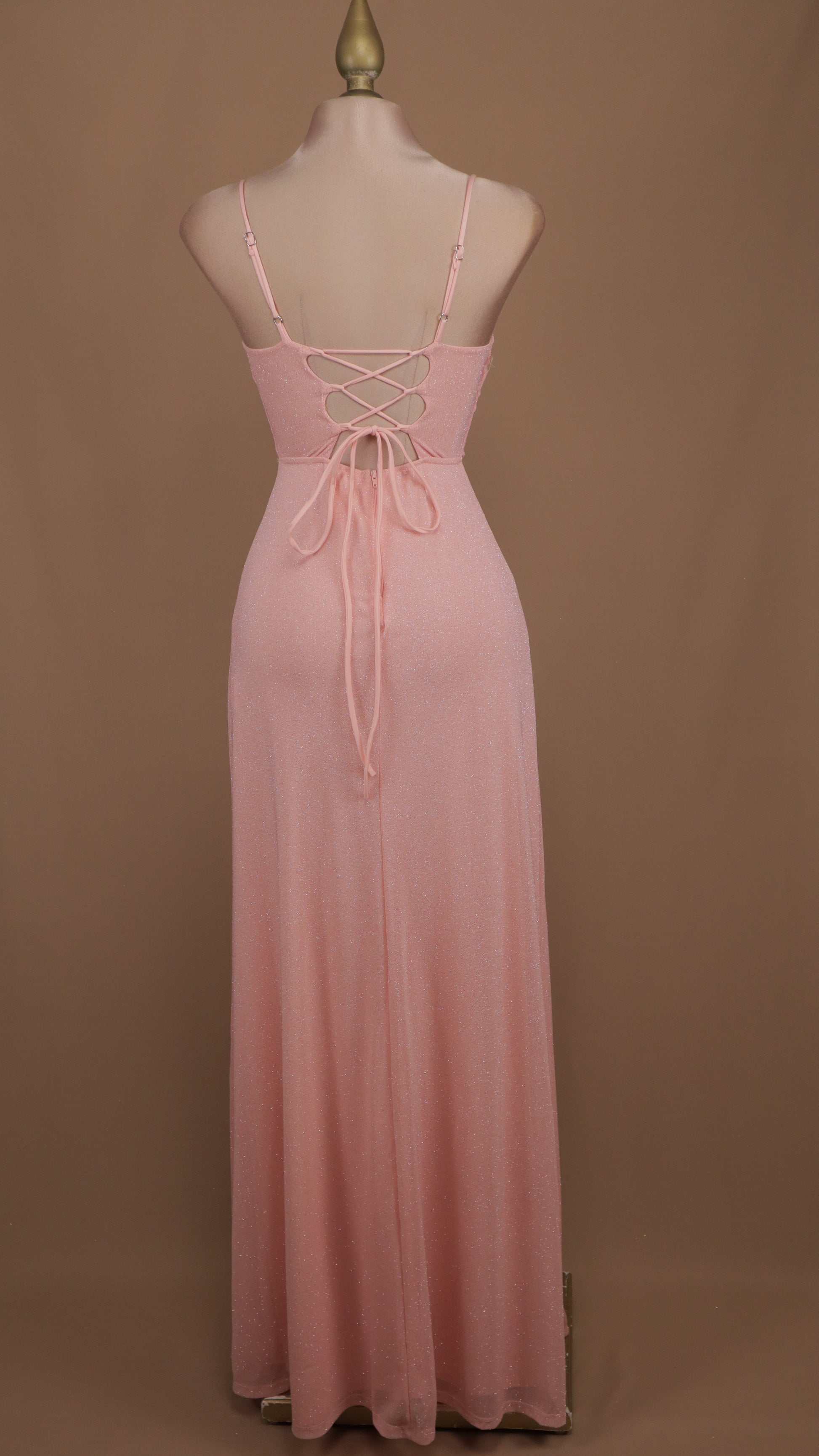 Este vestido largo con destellos es la elección perfecta para destacar en cualquier evento especial. Su diseño elegante se complementa con delicadas agujetas en la espalda, que aportan un toque sofisticado y ajustable para un fit ideal. Brilla con estilo y comodidad, asegurando que todas las miradas se posen en ti.