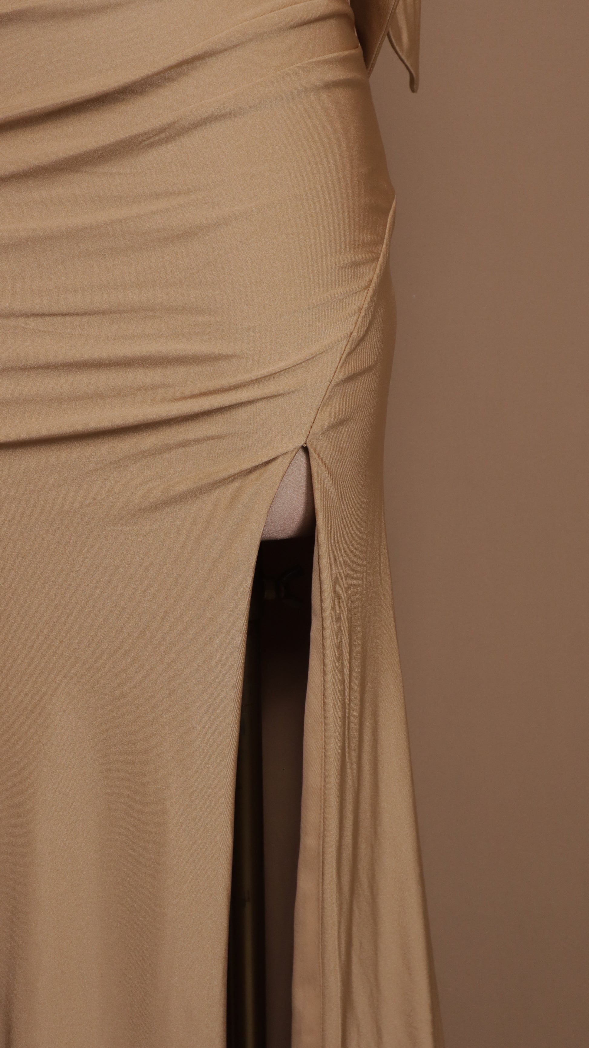 Este vestido largo al hombro destaca por su elegante plisado en la cadera y el hombro, que realza la figura con un toque sofisticado. La abertura lateral añade un detalle sensual y cómodo, ideal para cualquier ocasión especial donde quieras lucir única y segura. Su diseño fluido y femenino te garantiza comodidad sin perder estilo.