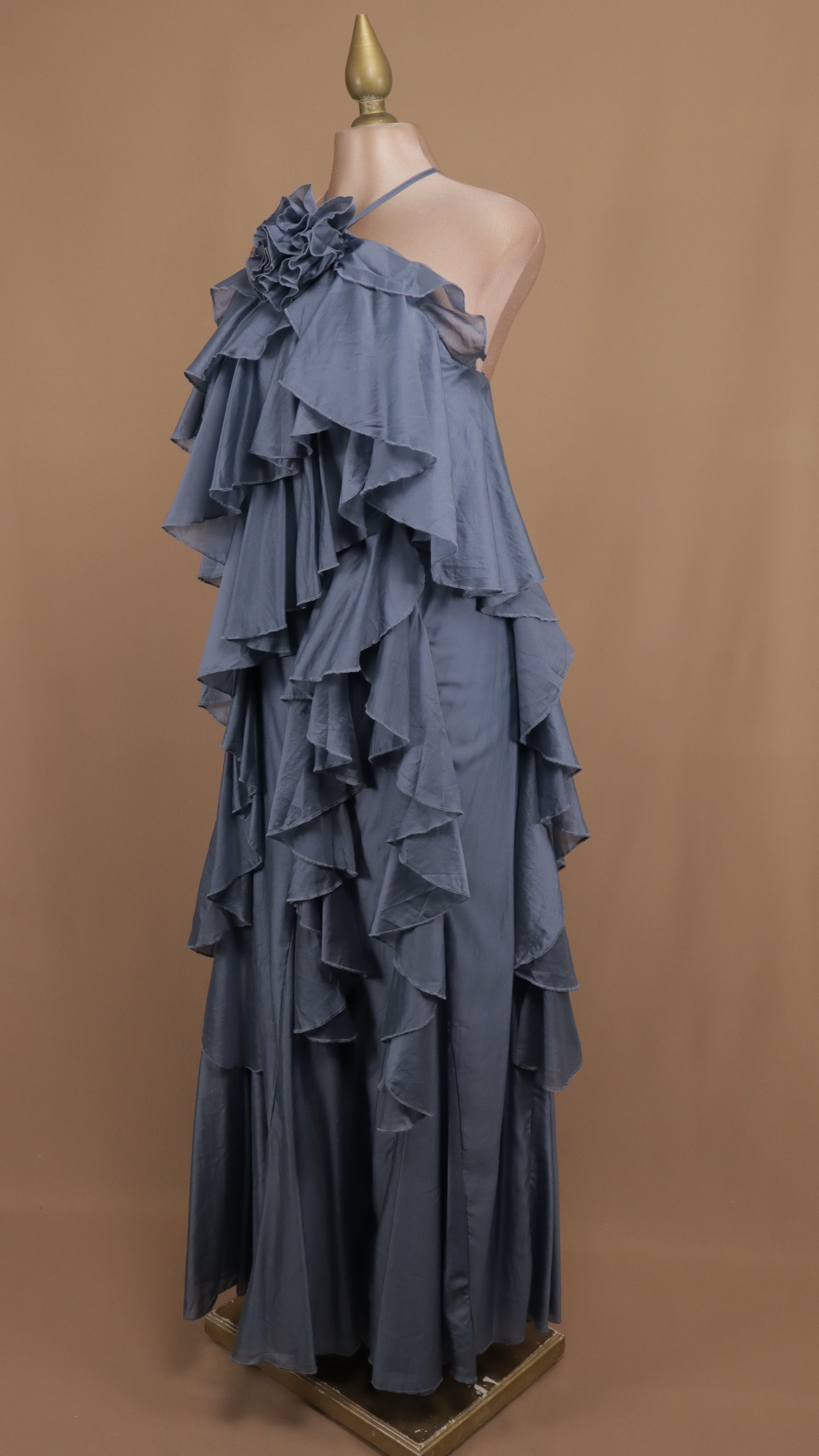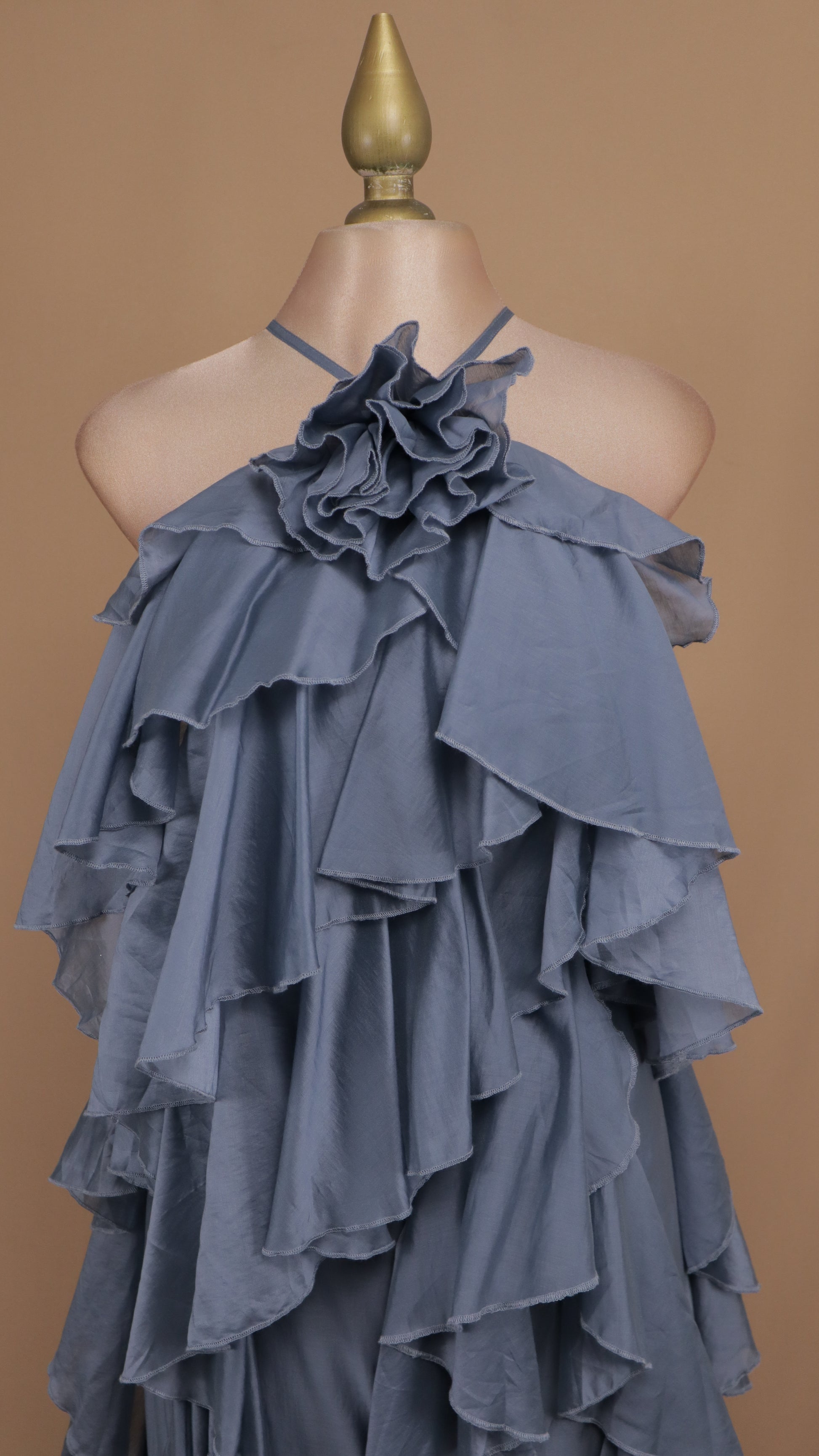 Vestido largo halter y olanes