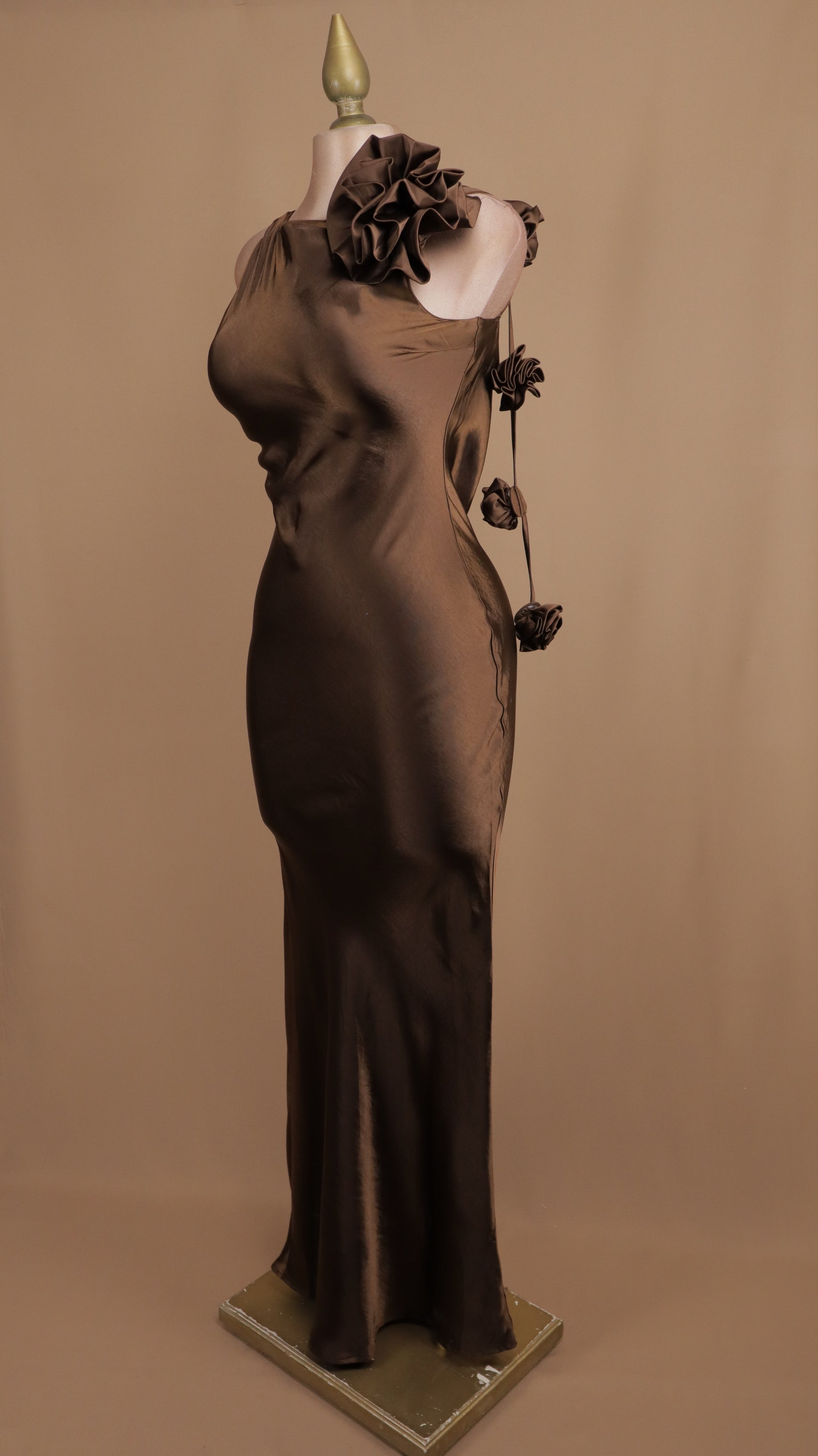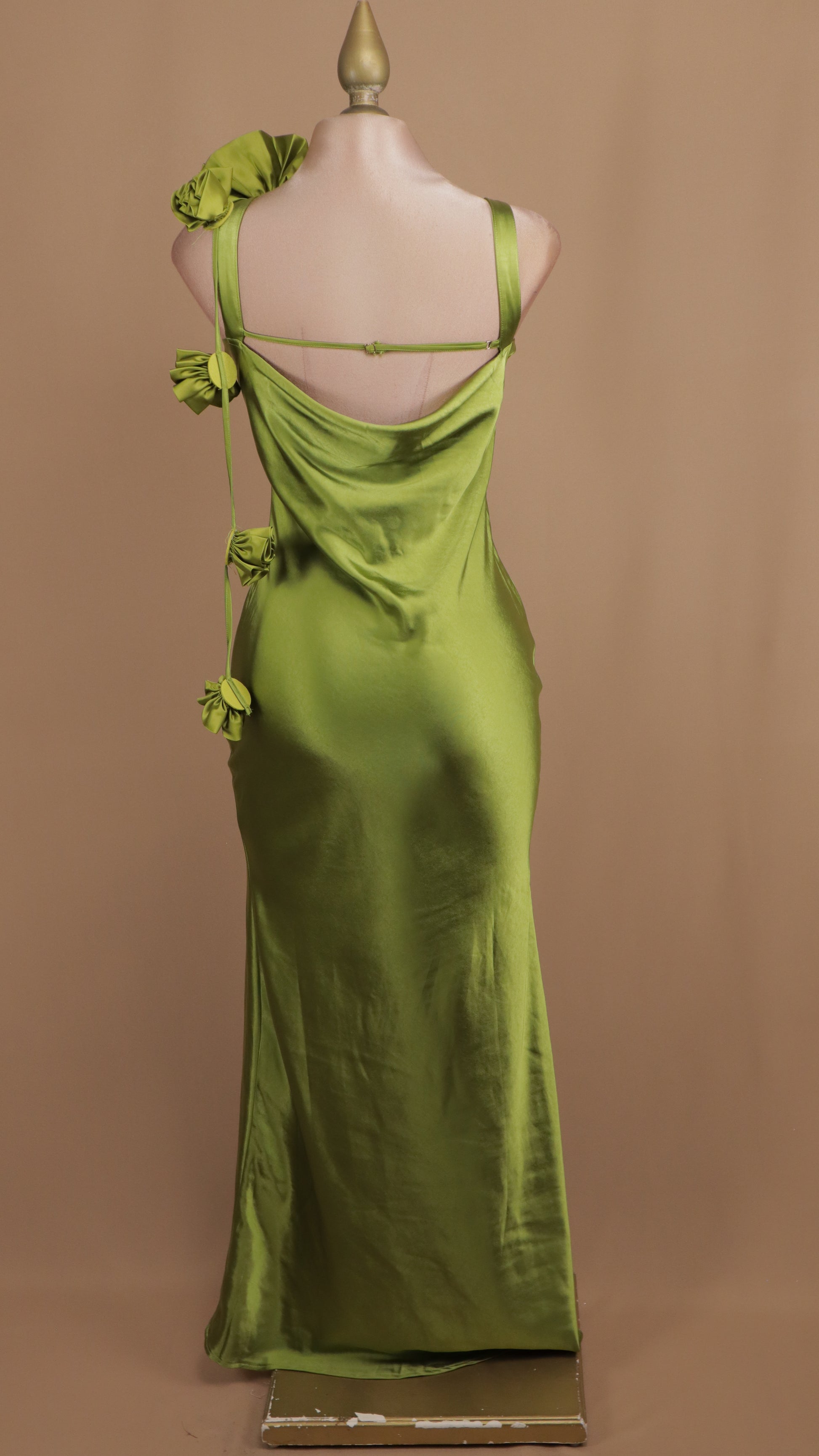 Este vestido largo es perfecto para cualquier ocasión especial. Con su diseño de flores y su elegante escote en la espalda, te asegurará un look femenino y sofisticado. ¡Siéntete hermosa y a la moda con este vestido único!