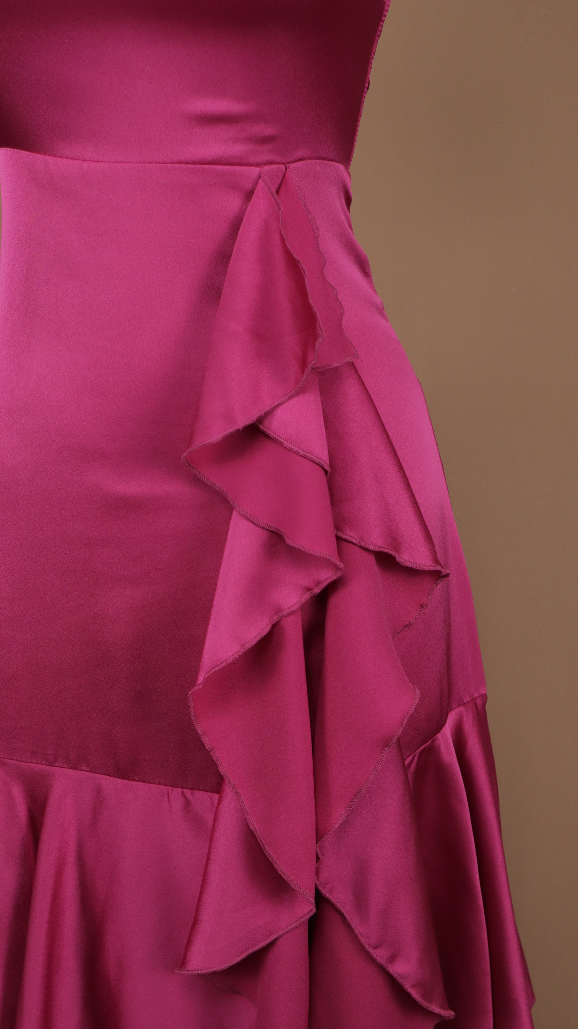 Vestido largo con olanes y corset