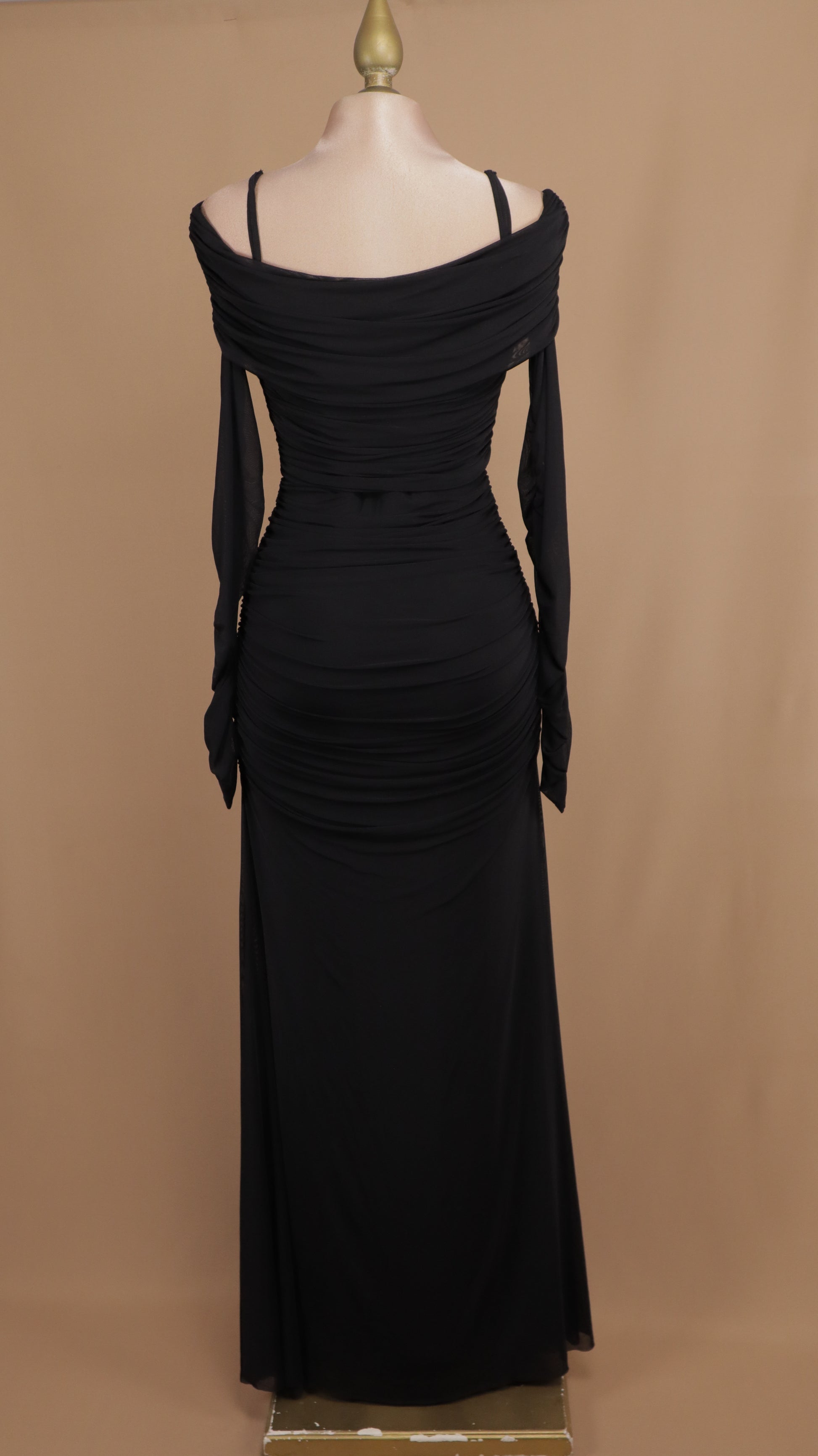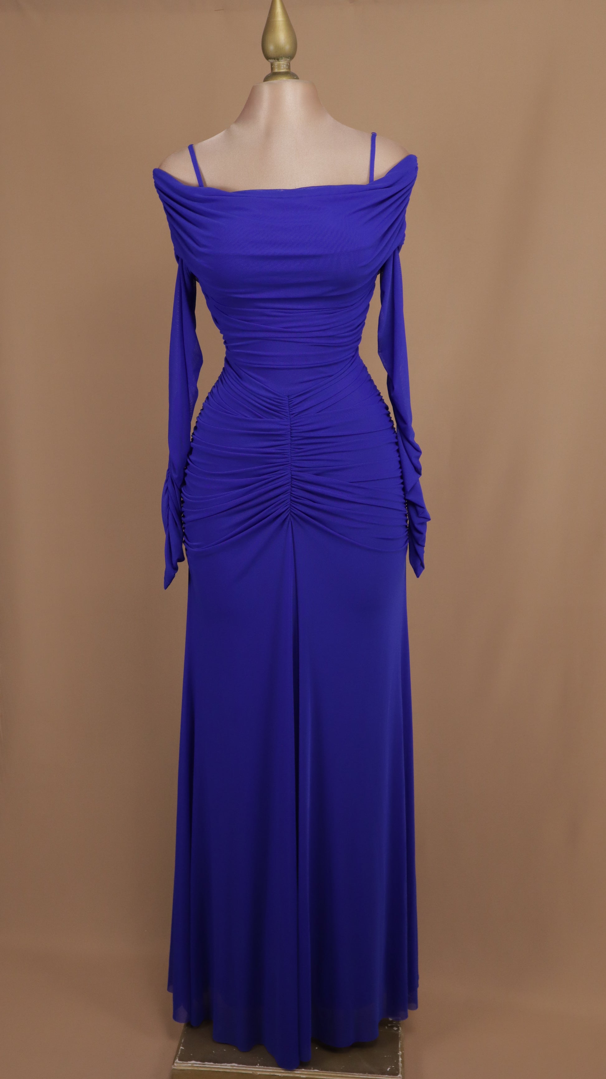 Este vestido largo al hombro con manga larga combina elegancia y comodidad, ideal para cualquier ocasión especial. Su diseño resalta la silueta femenina mientras las mangas largas ofrecen un toque sofisticado y protección ligera. Perfecto para destacar tu estilo con un aire romántico y moderno.