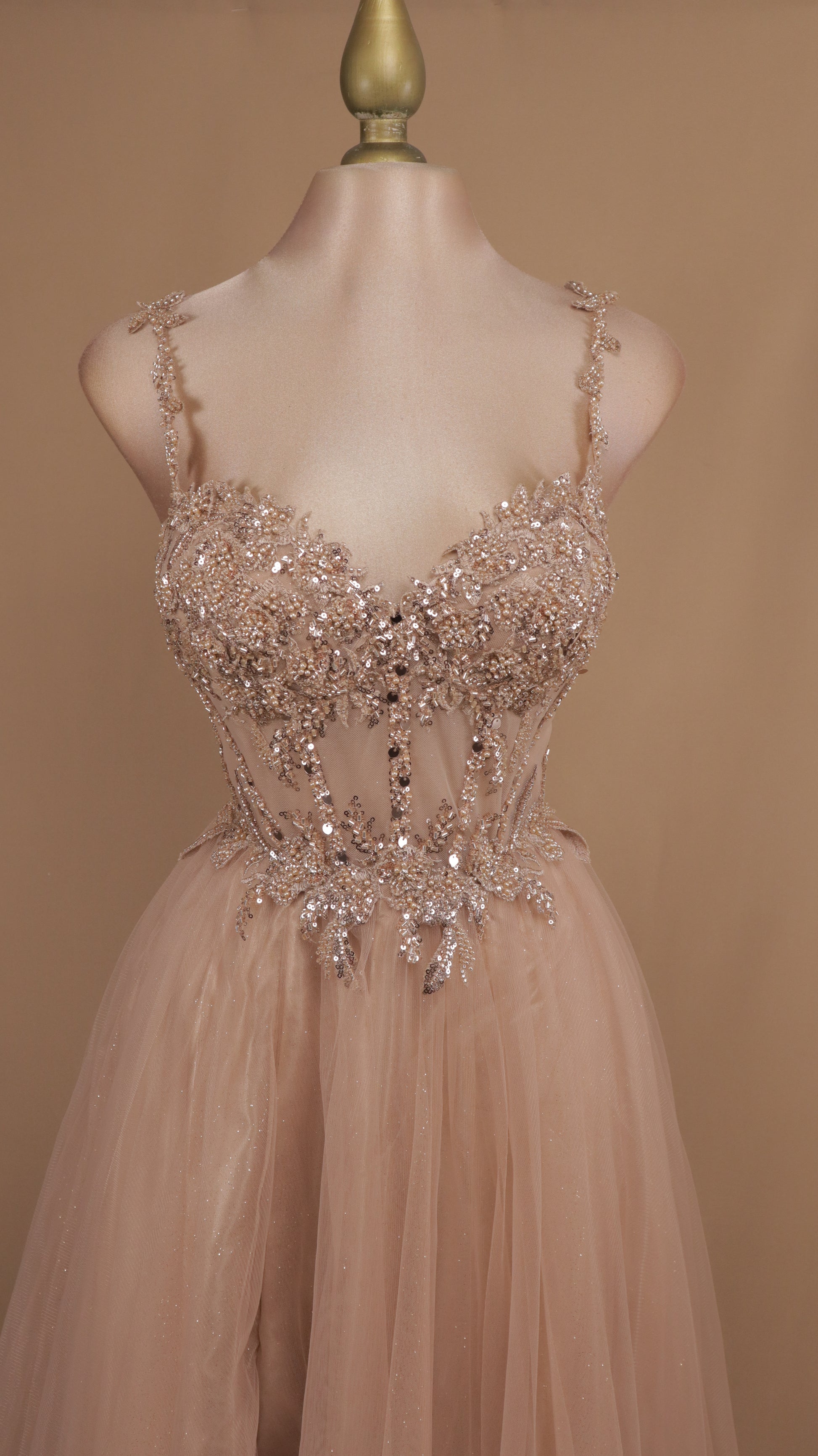 Este vestido largo de corte princesa, adornado con delicada pedrería, es la opción perfecta para destacar en cualquier ocasión especial. Su diseño elegante realza tu figura mientras los detalles brillantes aportan un toque sofisticado y único. Siente la confianza y distinción que te ofrece este espléndido vestido para momentos inolvidables.