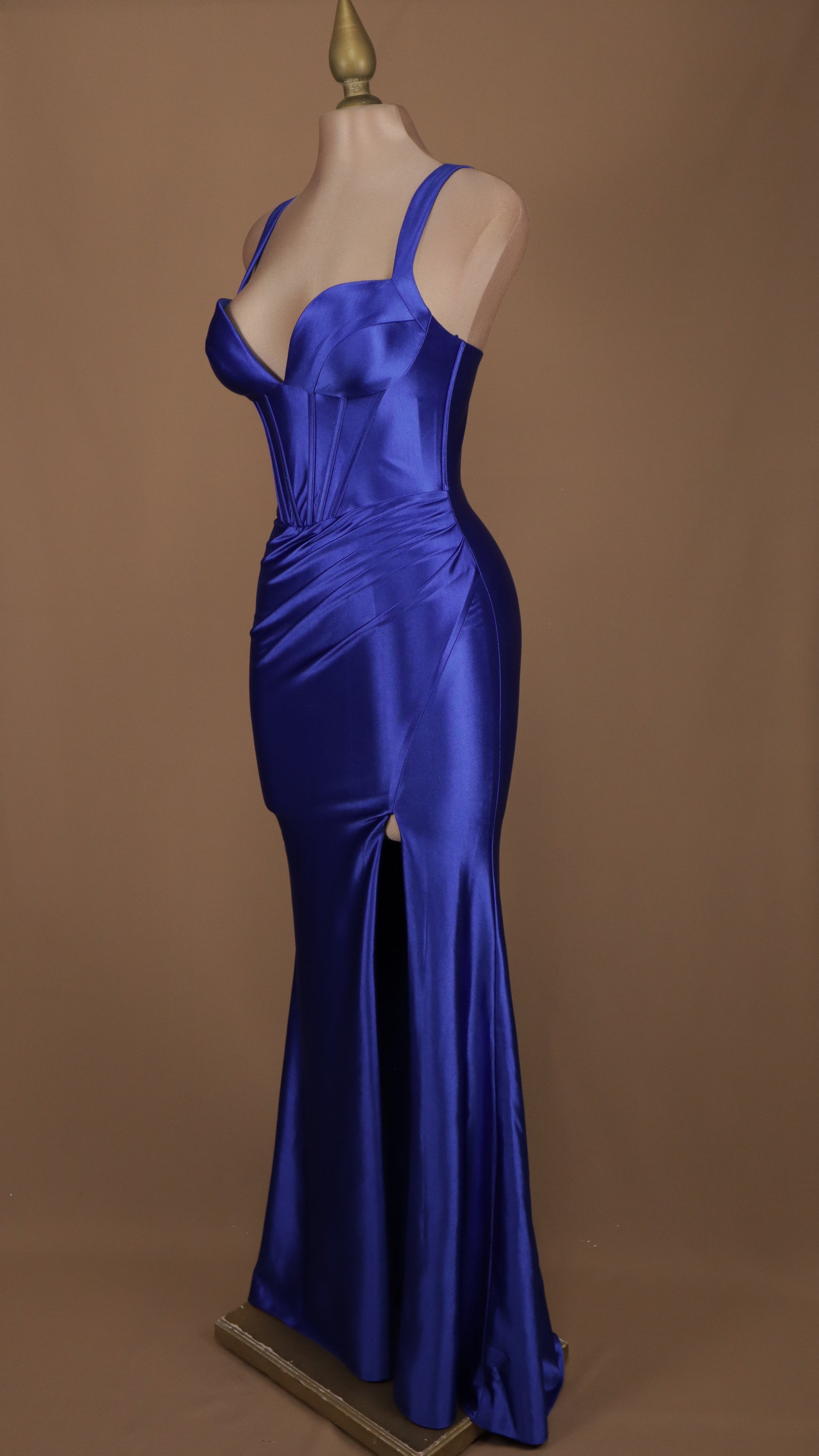 Deslúmbrate con nuestro elegante vestido corte sirena, diseñado para realzar tus curvas naturales. Sus barillas estratégicamente colocadas moldean tu figura a la perfección, mientras la sensual abertura en la pierna añade un toque de misterio y sofisticación. Ideal para esas ocasiones especiales donde deseas ser el centro de todas las miradas.
