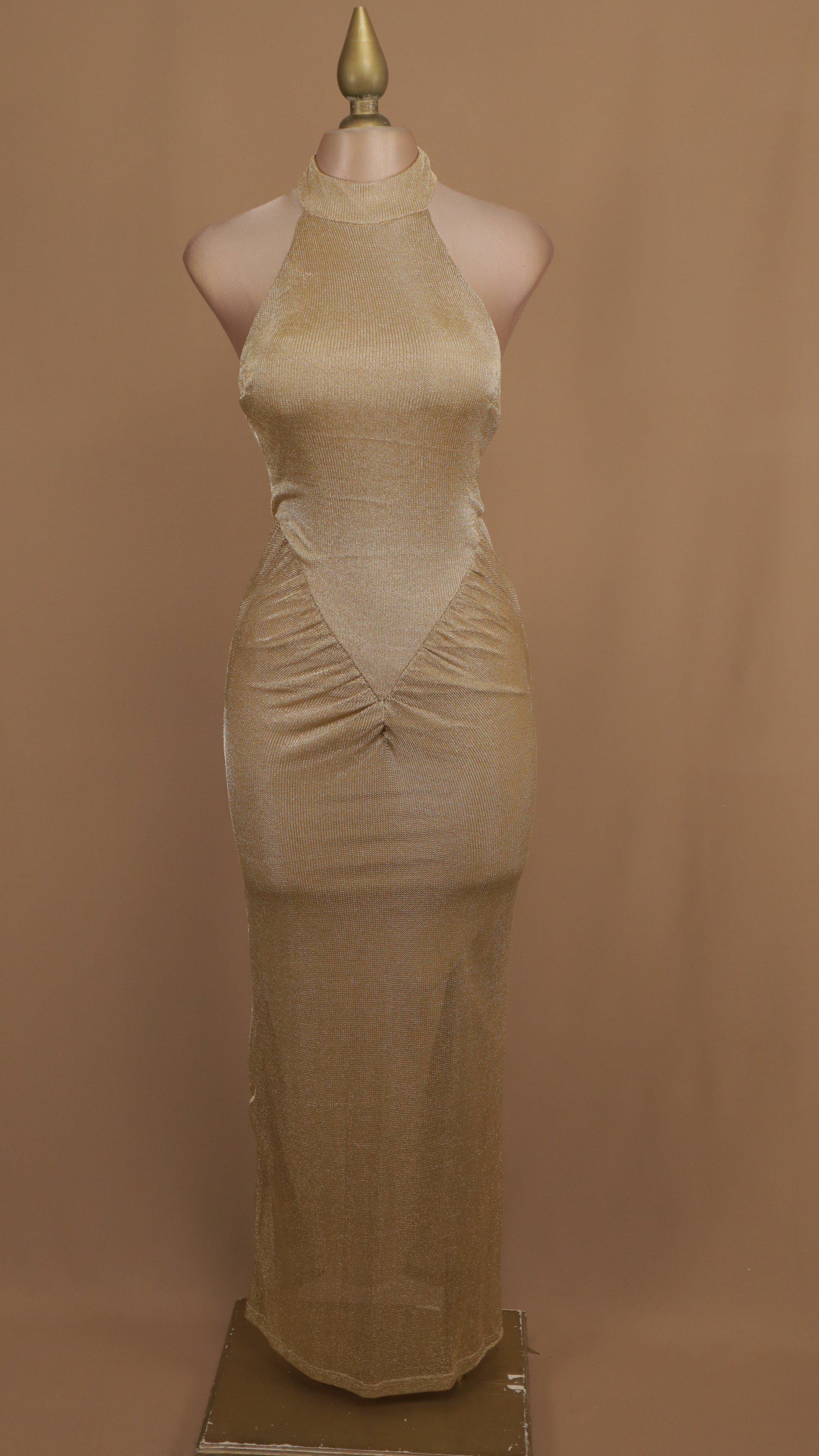 Este vestido largo con cuello halter combina elegancia y comodidad, ideal para destacar en cualquier ocasión especial. Su diseño fluido realza la figura mientras el cuello halter aporta un toque sofisticado y moderno. Perfecto para eventos formales o cenas especiales, asegura un look inolvidable que atraerá todas las miradas.