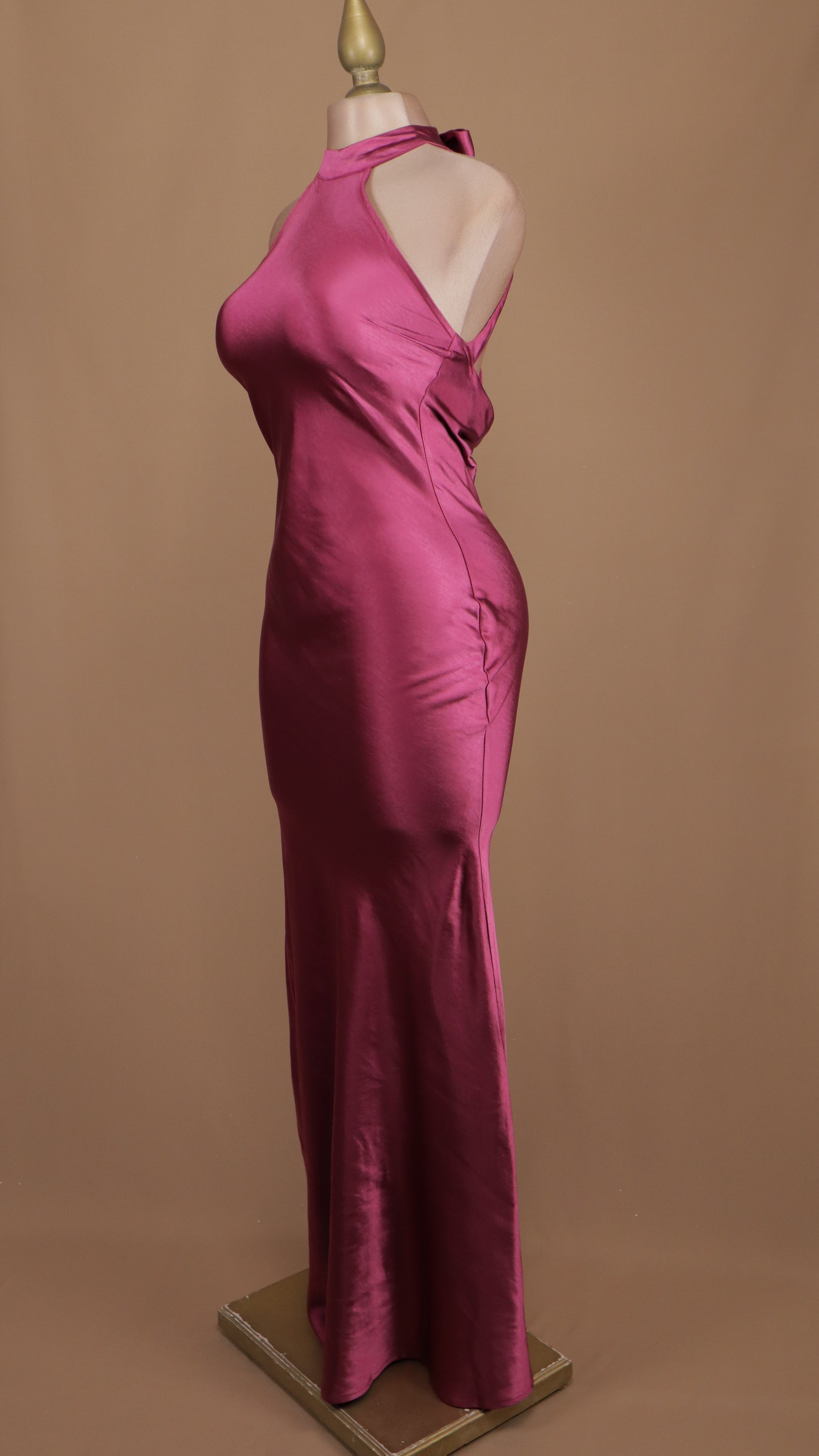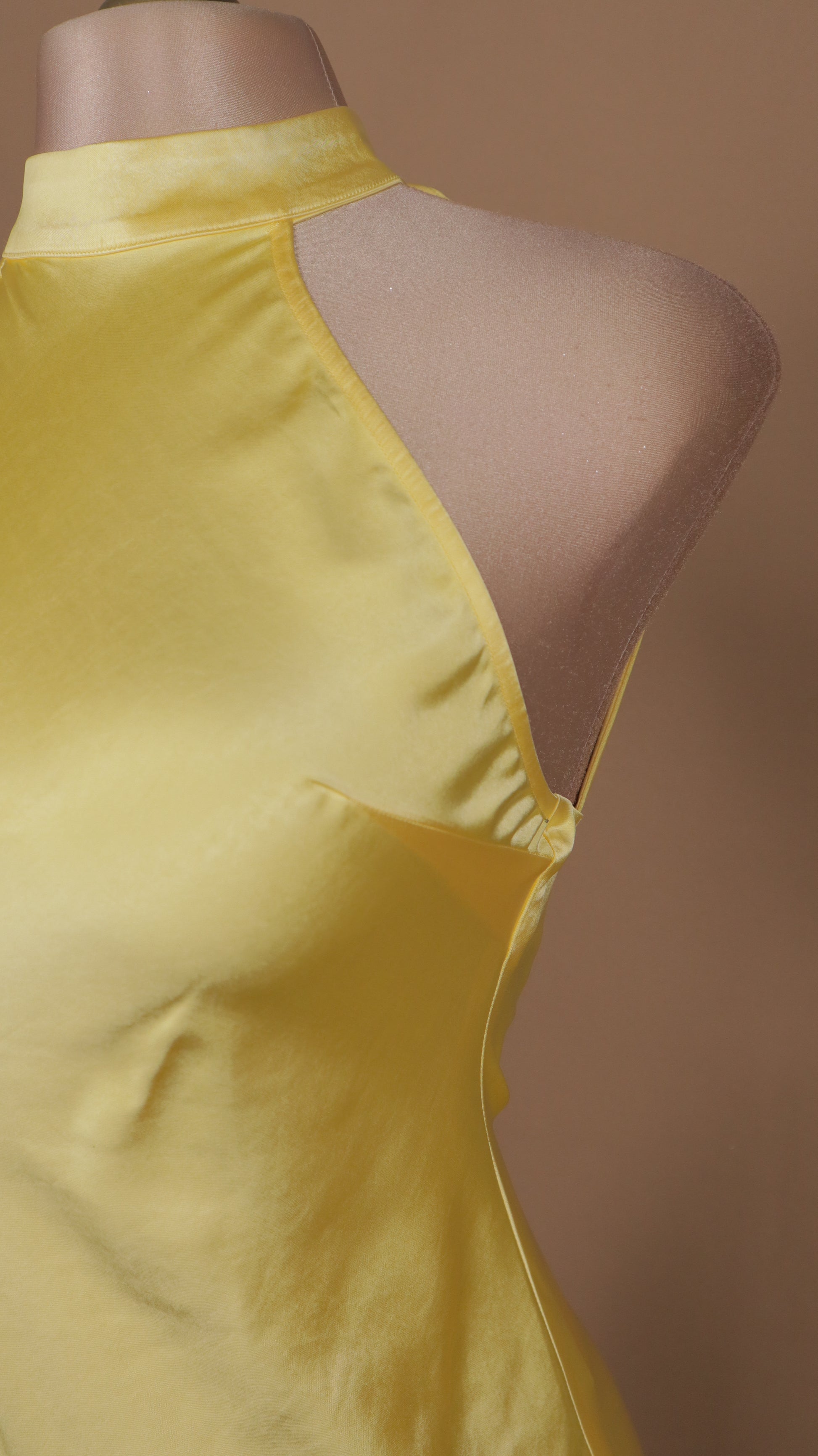 Deslúmbrate con nuestro elegante vestido largo de cuello halter satinado, diseñado para resaltar tu figura con un brillo sutil que captura todas las miradas. Su acabado satinado de lujo refleja la luz con cada movimiento, mientras que el corte halter estiliza tus hombros y realza tu escote. Perfecto para eventos especiales donde quieres causar una impresión inolvidable.