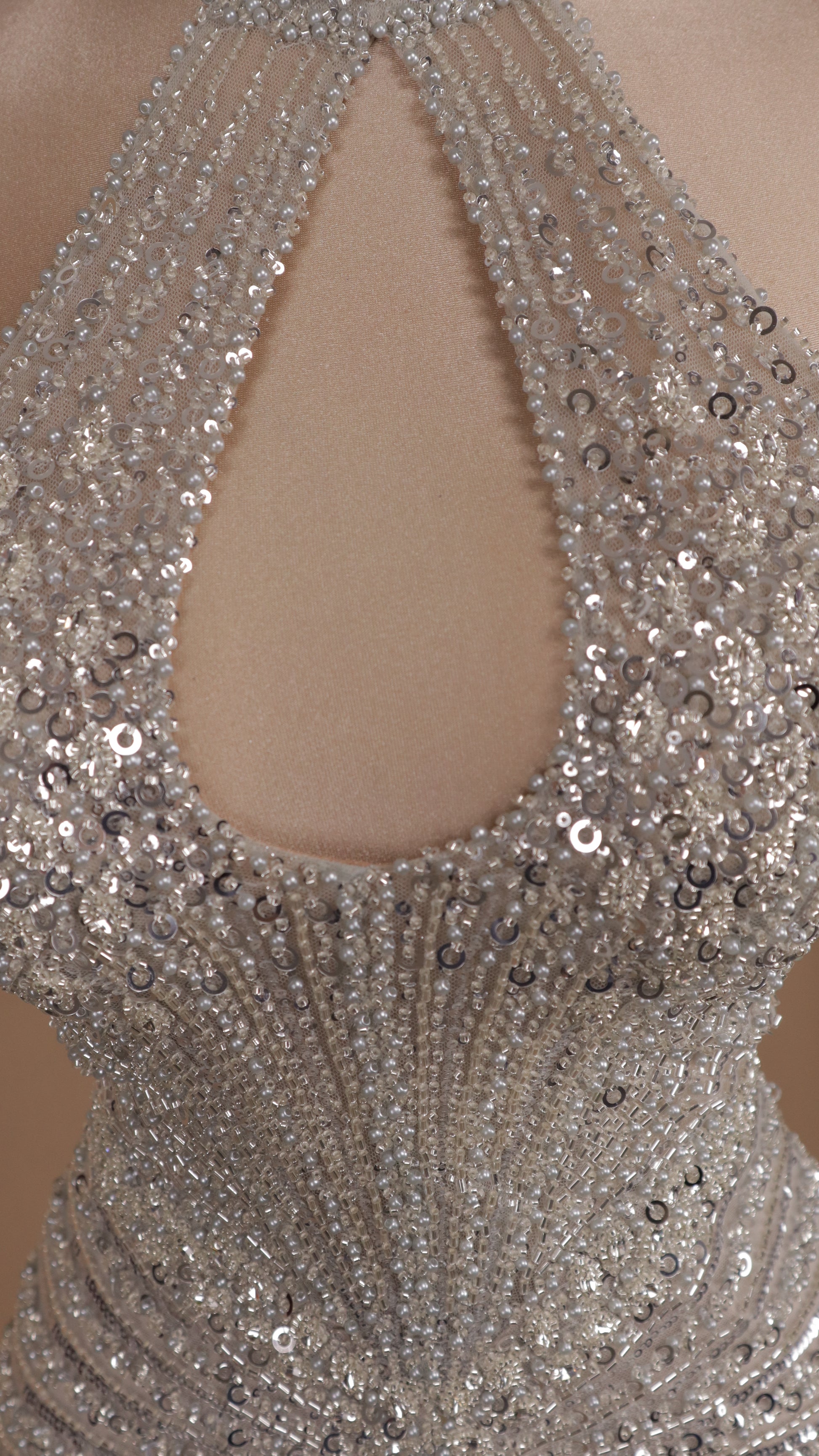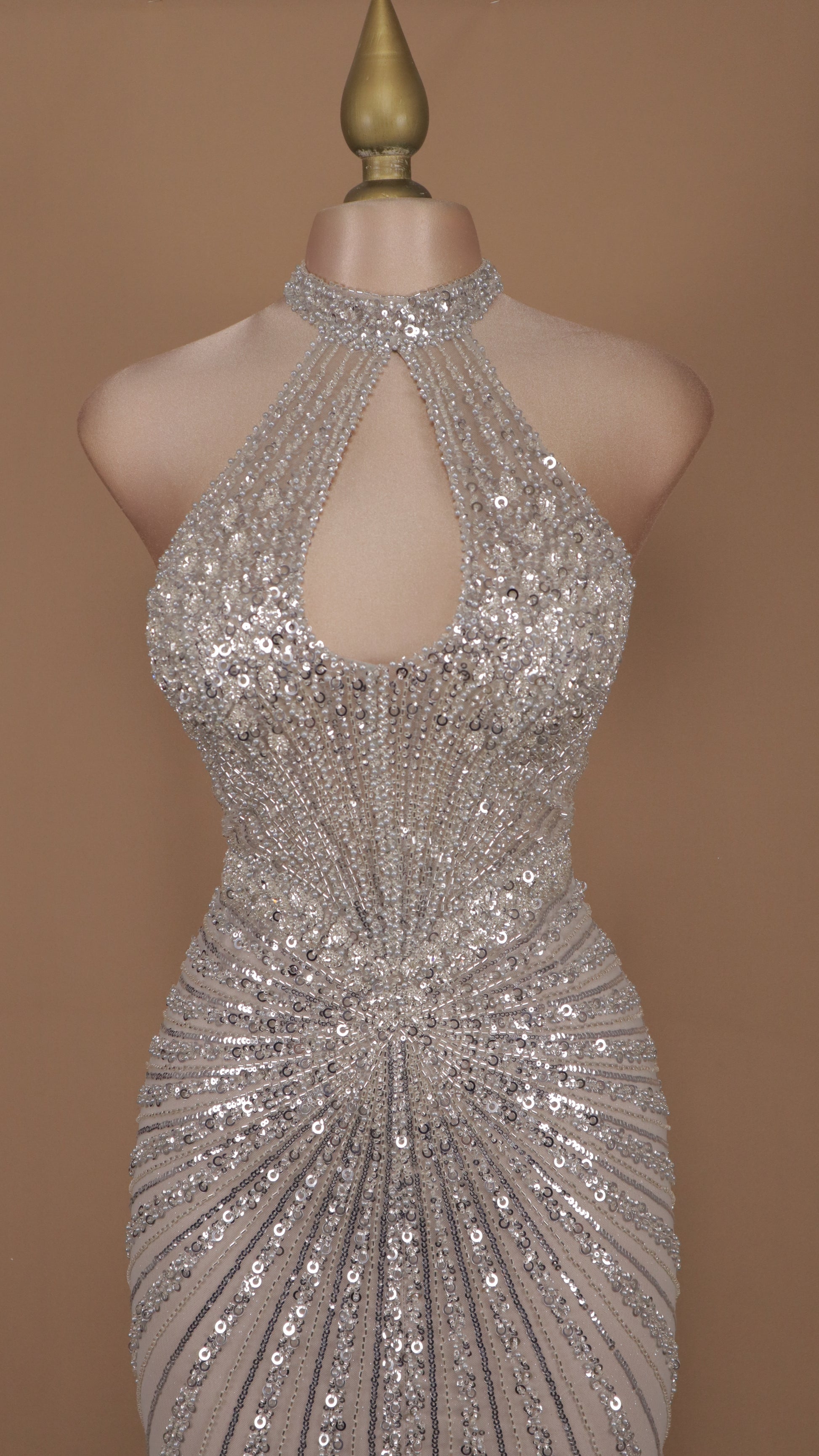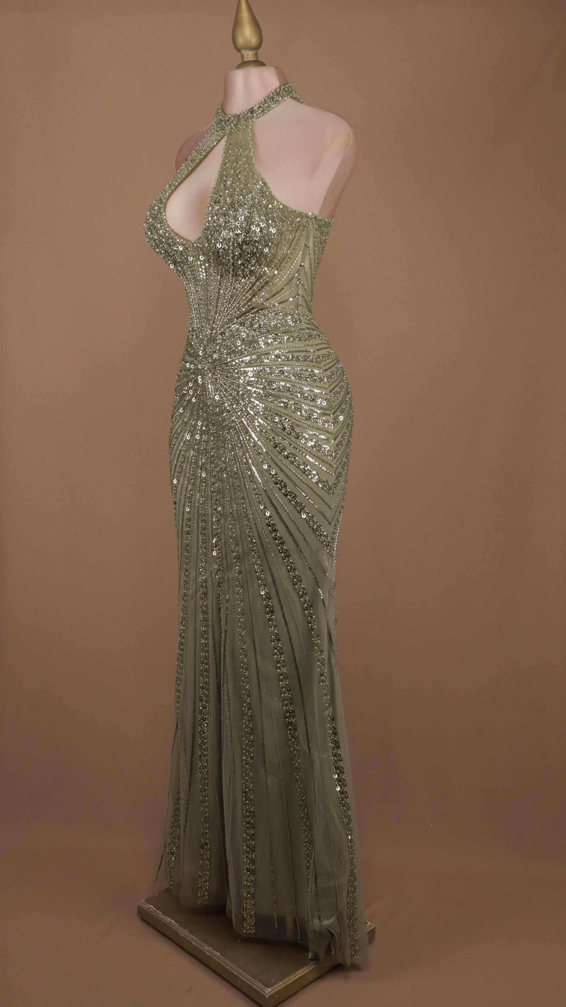 ¡Descubre el vestido perfecto para tus eventos especiales! Nuestro vestido largo cuenta con una hermosa aplicación que destaca en el cuello halter y el escote, dándote un aspecto elegante y sofisticado. ¡Atrae todas las miradas y siéntete segura y bella en cualquier ocasión!