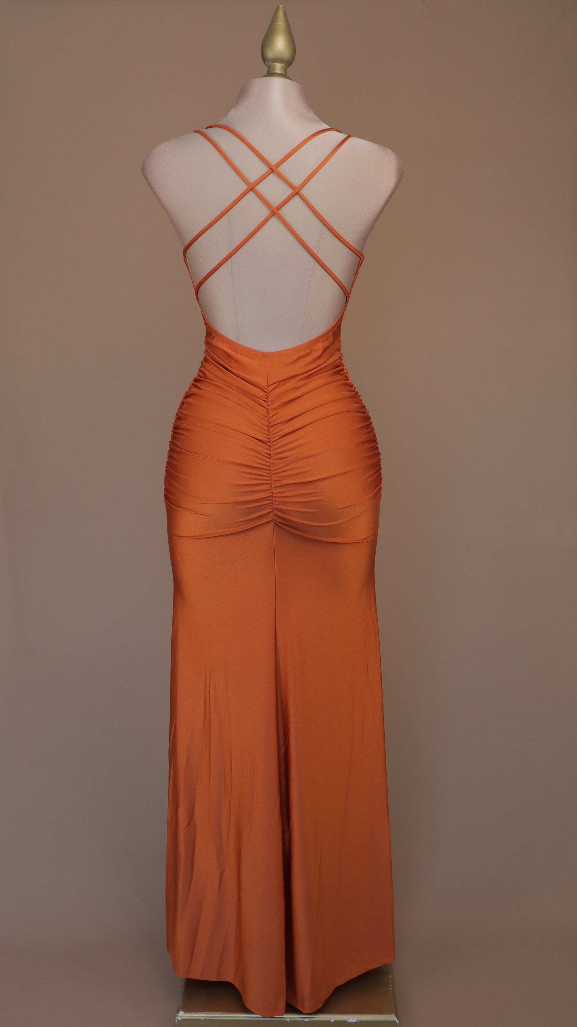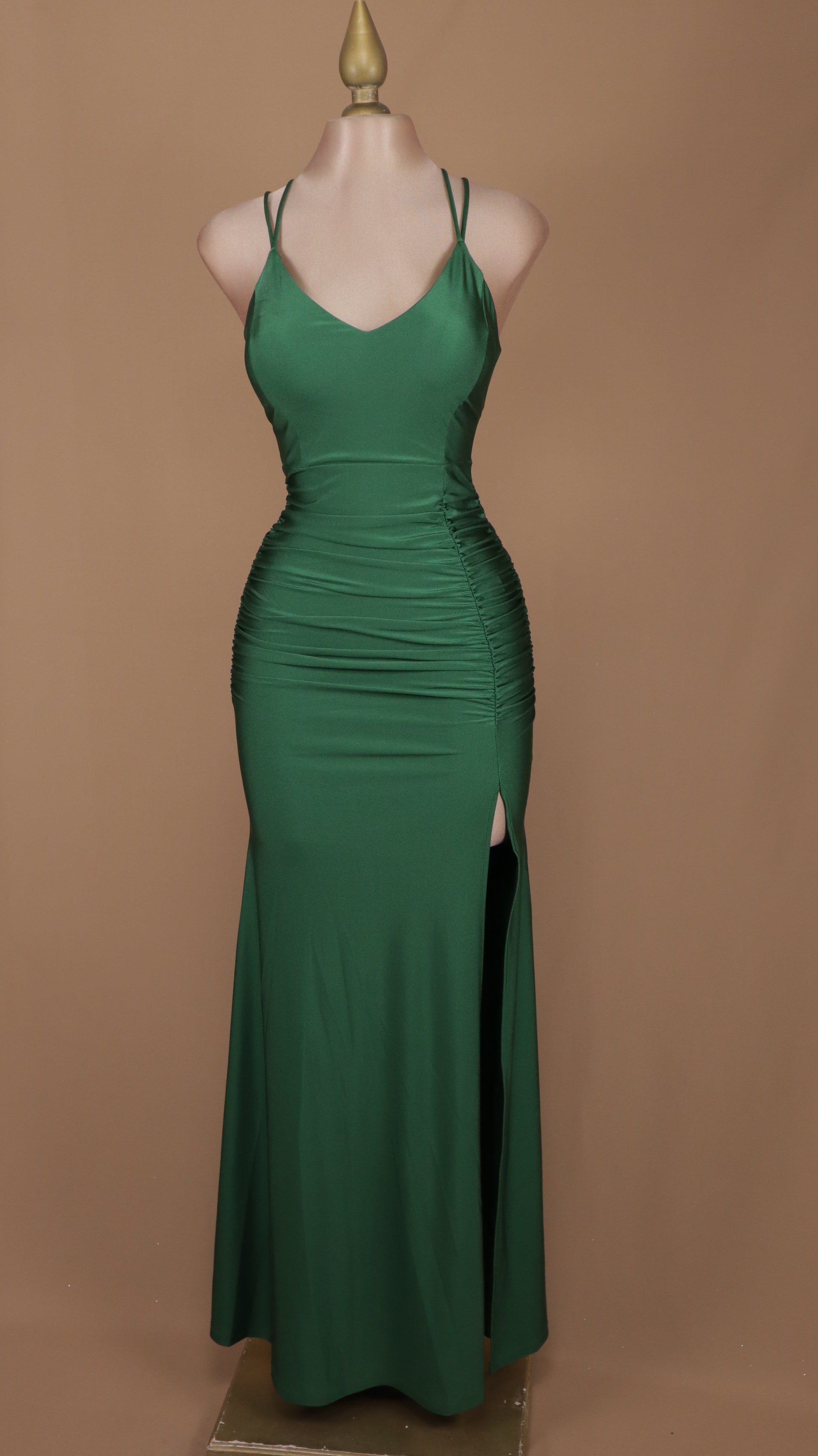 Este vestido largo de licra cuenta con una elegante abertura en la pierna y un escote cruzado en la espalda que realza tu figura. Hecho de un suave tejido elástico, se adapta perfectamente a tu cuerpo para brindarte comodidad y estilo. Ideal para cualquier ocasión, este vestido es un imprescindible en tu guardarropa.