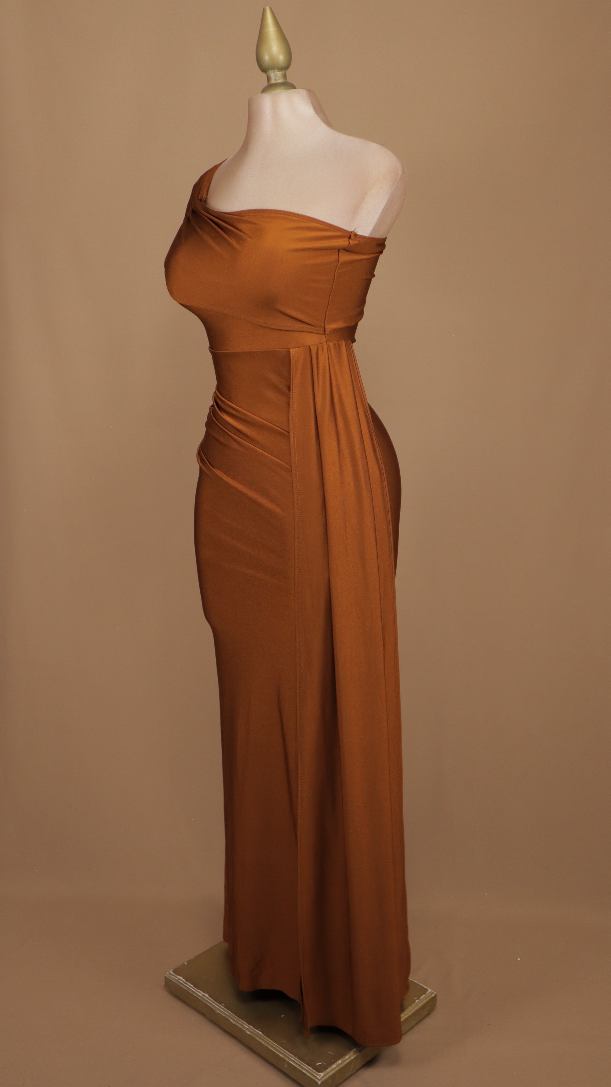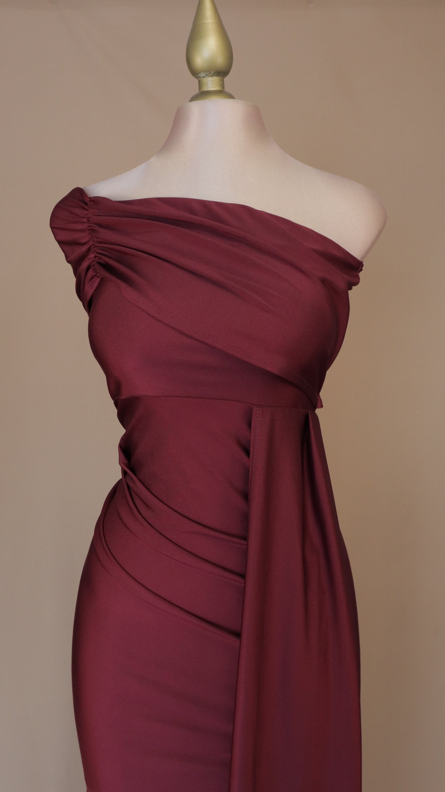 El vestido de licra asimétrico con estola es una opción elegante para cualquier ocasión. La tela de licra se ajusta cómodamente al cuerpo, mientras que el diseño asimétrico y la estola añaden un toque de estilo único. Perfecto para destacar en eventos formales o informales.