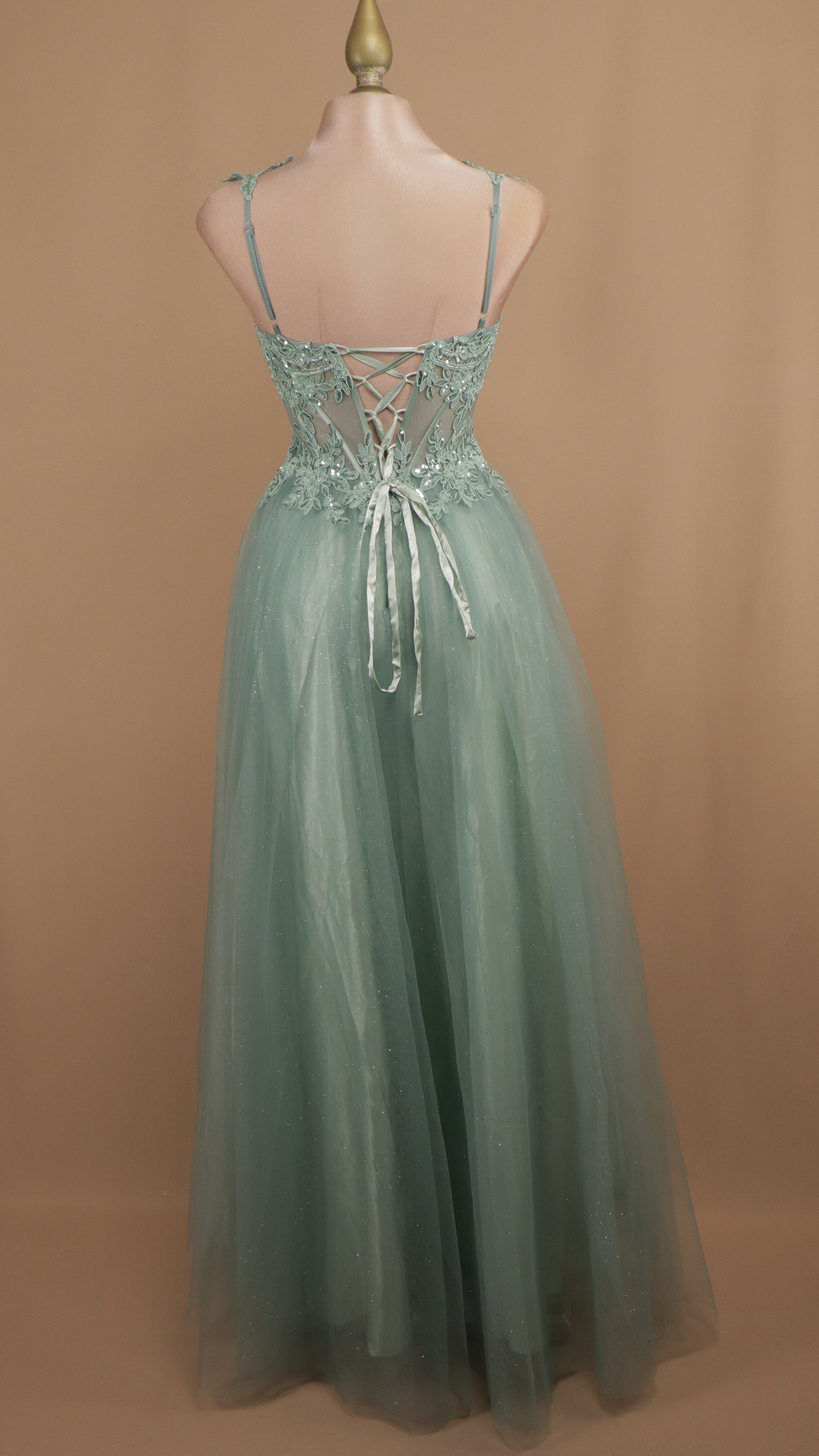 Vestido largo elegante confeccionado en tul suave que fluye con movimiento natural. Destaca por su aplicación decorativa en el busto que añade sofisticación y detalle visual. El tirante ajustable proporciona comodidad y un ajuste seguro durante todo el día. Perfecto para eventos especiales, bodas o celebraciones donde desees lucir radiante y femenina. La falda larga crea una silueta estilizada y elegante que favorece cualquier tipo de cuerpo.