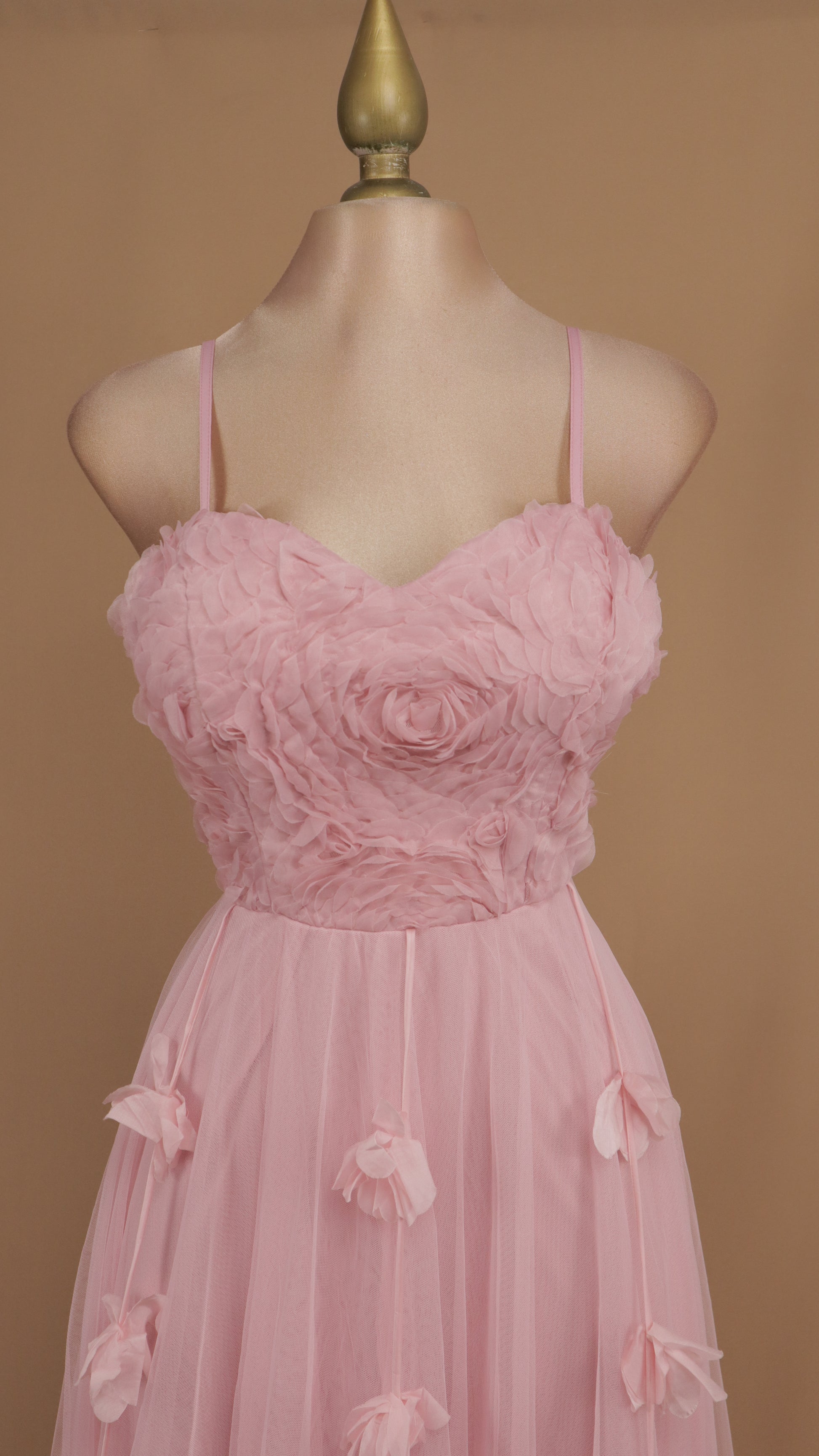 Este vestido largo de tul con delicados detalles florales ofrece una elegancia única para cualquier ocasión especial. Su diseño ligero y vaporoso realza tu figura mientras te brinda comodidad durante todo el día. Perfecto para eventos formales o románticos, este vestido te hará destacar con un toque sofisticado y femenino.
