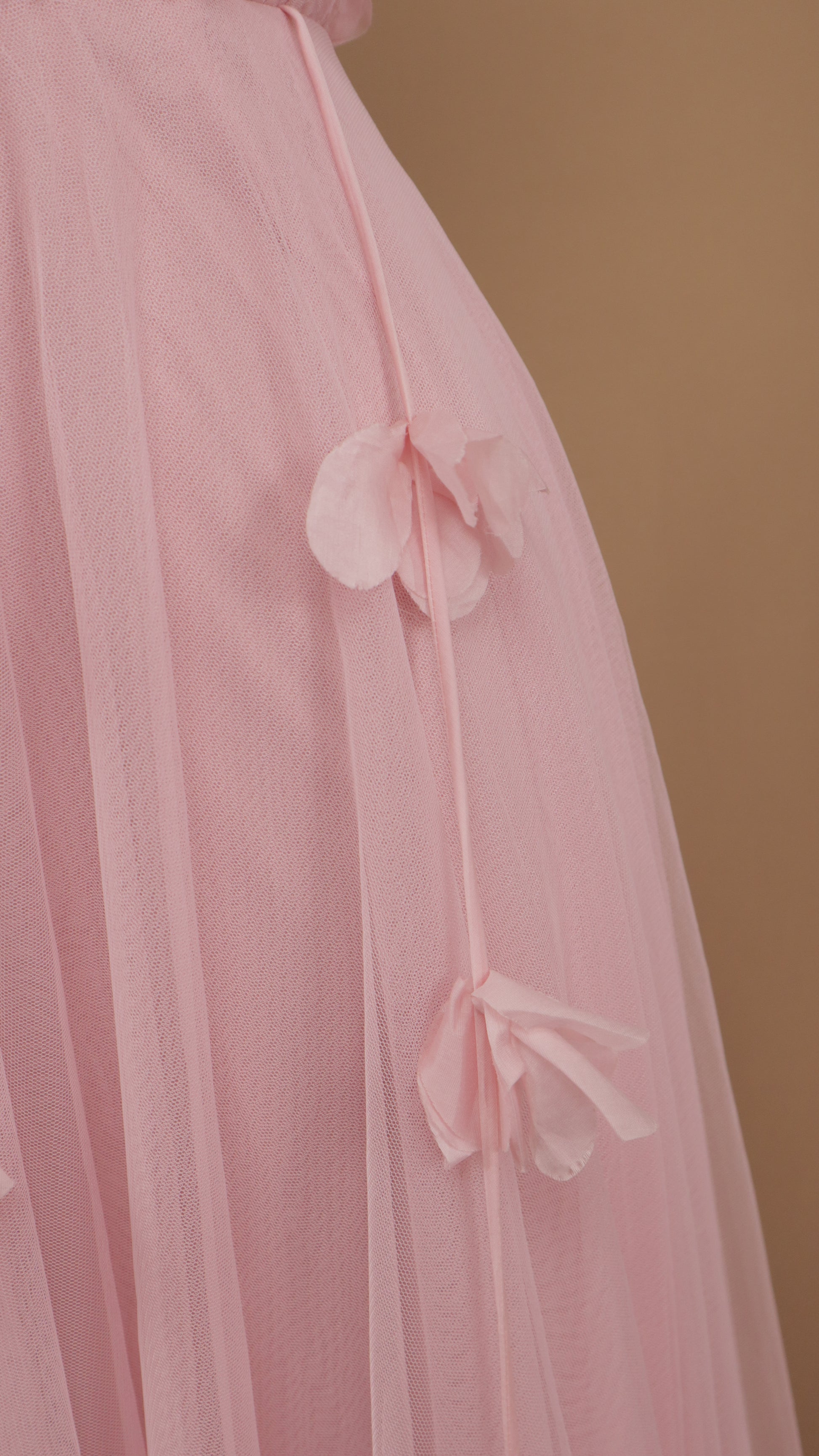 Vestido largo de tull con flor en 3D