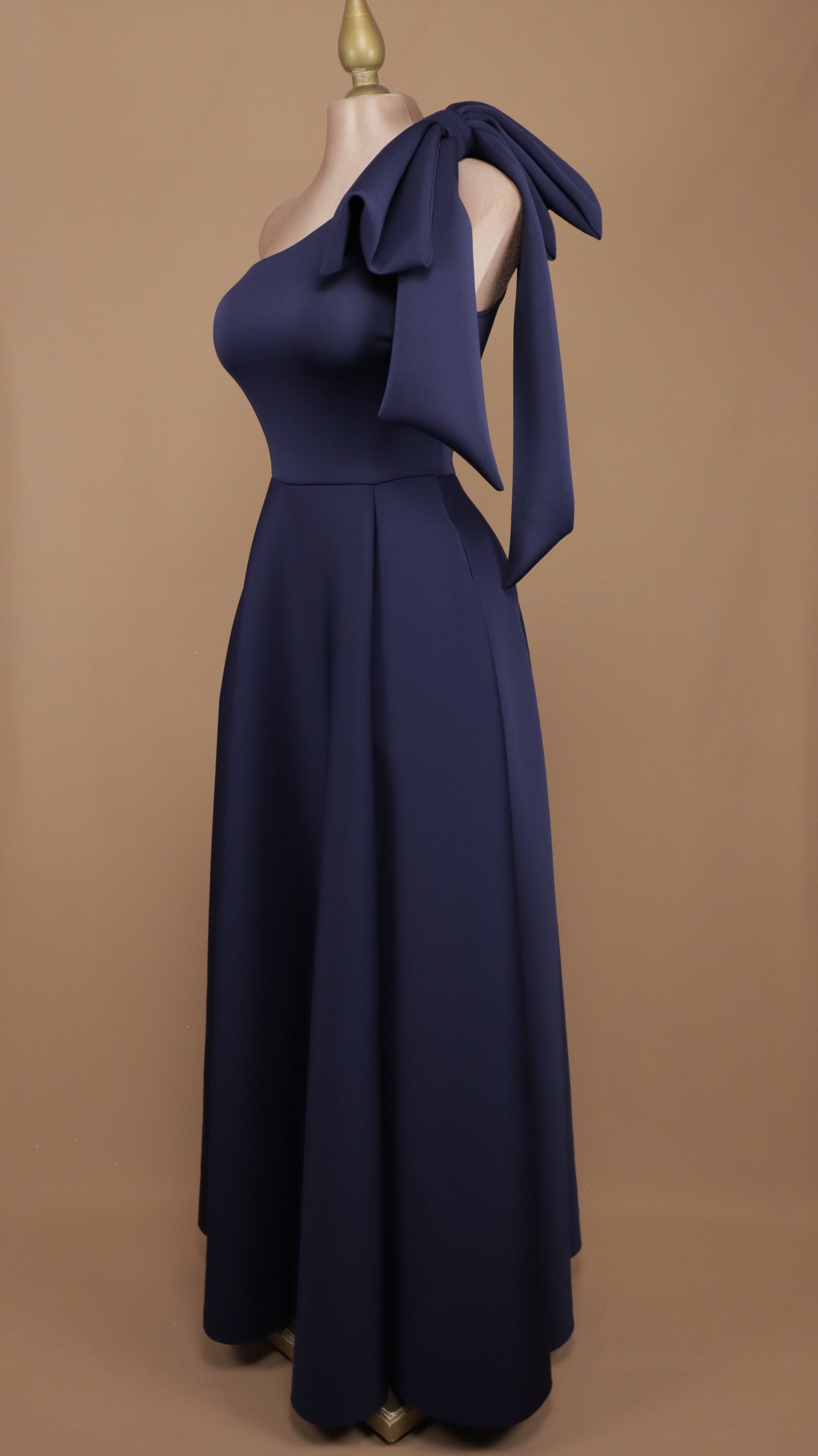 Este vestido asimétrico con moño tipo fomi en línea A combina elegancia y estilo único para cualquier ocasión especial. Su diseño favorecedor realza la figura, mientras que el moño añade un toque sofisticado y moderno. Perfecto para destacar con un look fresco y femenino que no pasará desapercibido.