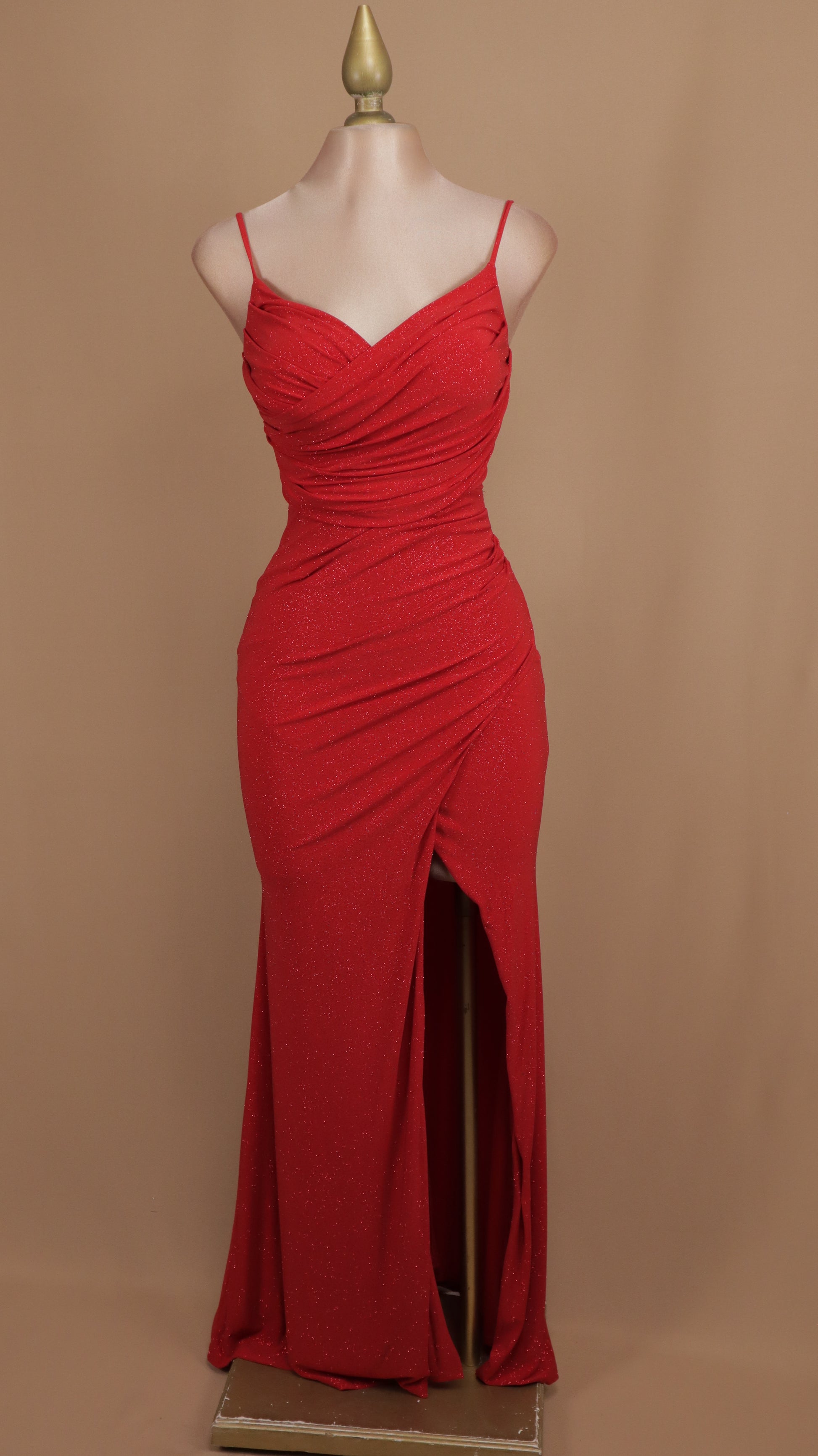 Deslúmbrate con este elegante vestido largo que combina sofisticación y brillo. Su escote en V favorecedor enmarca perfectamente el rostro, mientras que los destellos estratégicamente distribuidos capturan la luz en cada movimiento, creando un efecto luminoso irresistible. Ideal para noches especiales, cenas de gala o cualquier ocasión donde desees ser el centro de atención. La silueta alargada estiliza la figura y proporciona comodidad sin sacrificar el estilo. Un diseño versátil que te permite brillar con confianza y elegancia.