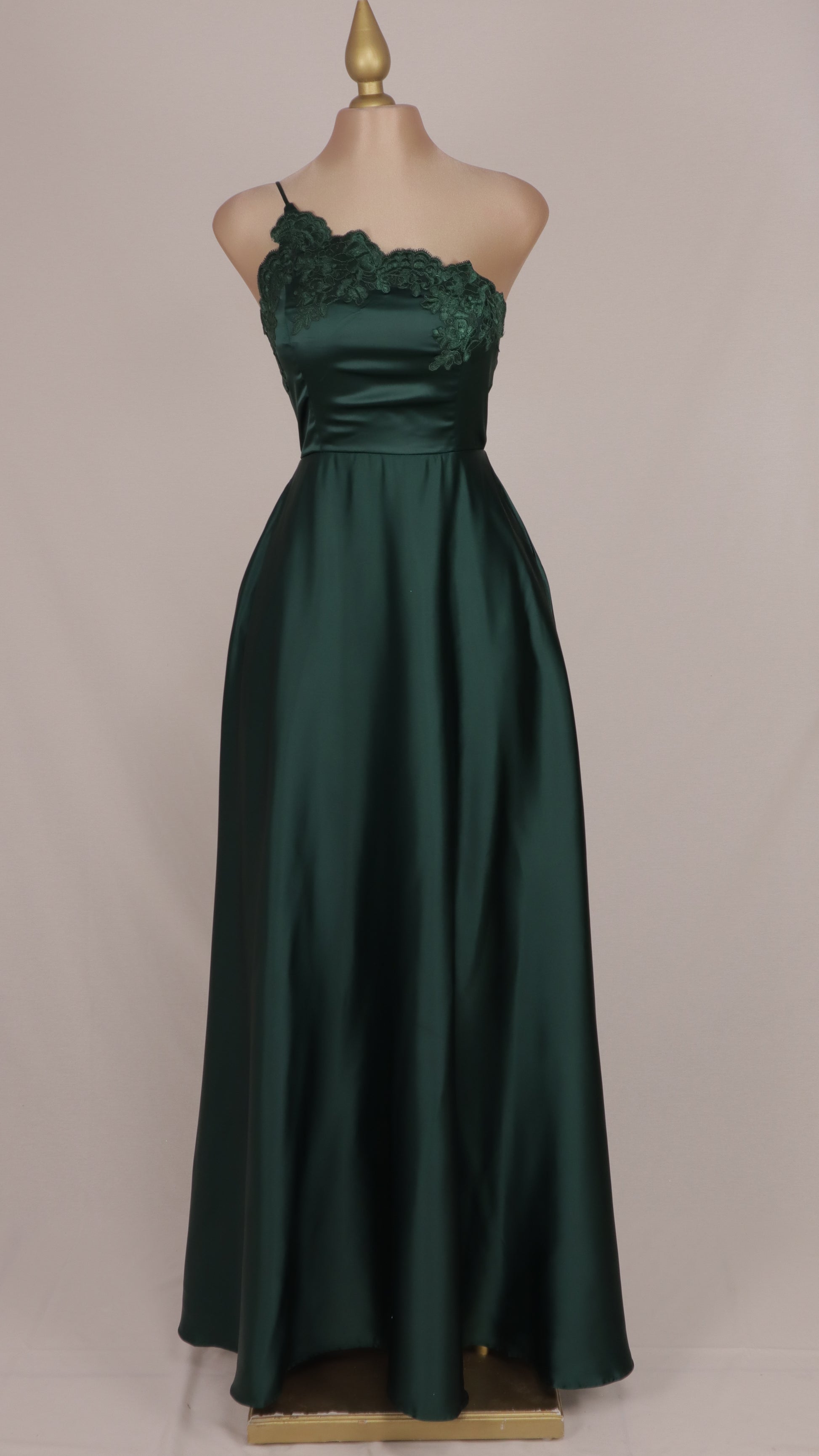 Disfruta de una silueta armoniosa con nuestro Vestido Largo estilo Griego. Fabricado con material de calidad, cuenta con un solo hombro descubierto y una aplicación de Guipur. Esta intemporal pieza de moda aporta glamour y estilo a tu look.