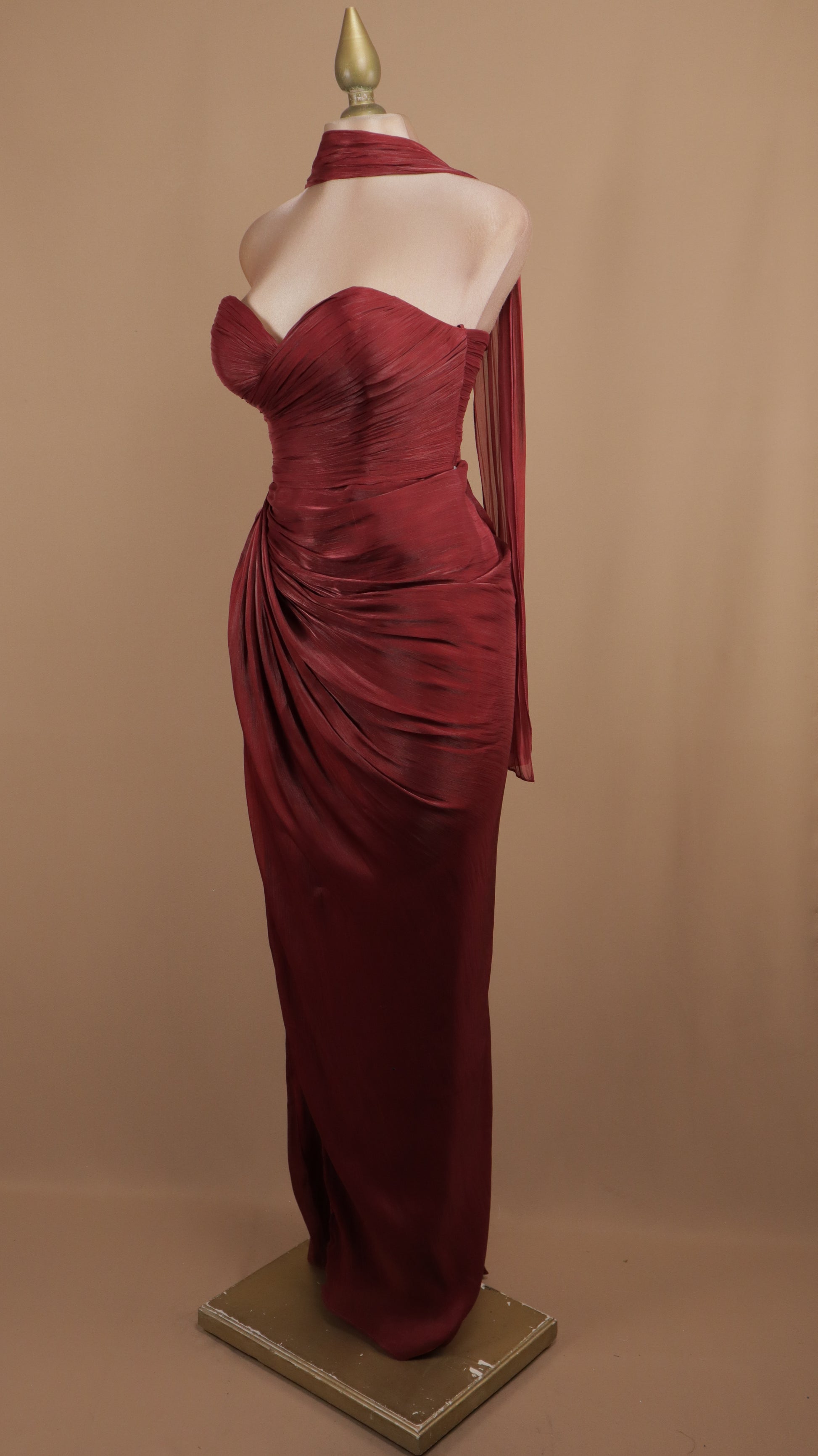 Vestido largo estraple drapeado con estola que combina elegancia y sofisticación. Diseño exclusivo con escote estraple que realza la figura, complementado por drapeados estratégicos que crean un efecto visual envolvente y favorecedor. La estola incluida añade un toque de distinción perfecta para eventos especiales, cenas formales o celebraciones. Confeccionado con materiales de calidad que garantizan comodidad durante toda la noche. Una pieza versátil que te permitirá lucir radiante en cualquier ocasión importante.