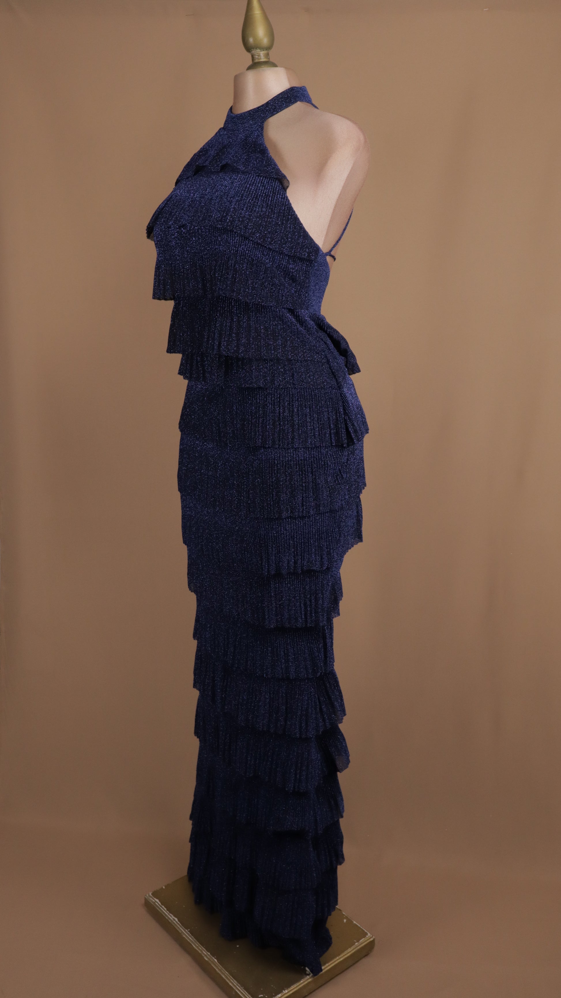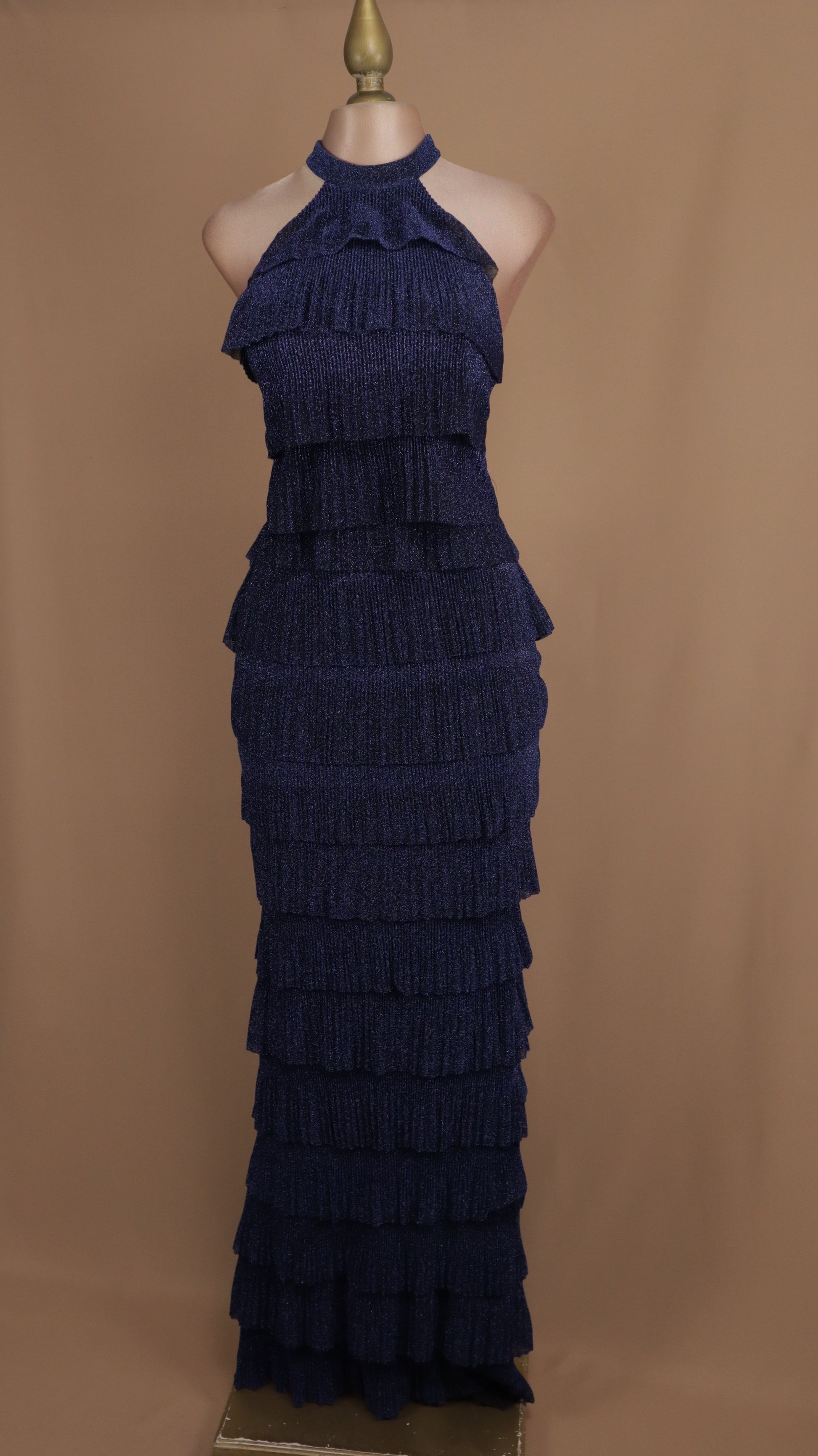¡Luce elegante y radiante con nuestro Vestido Largo Halter con Escarola y Agujetas en la Espalda con Brillitos! El halter realza tu figura mientras el detalle de encaje le da un toque de glamour. Las agujetas en la espalda y los brillos añaden un toque único a este vestido, perfecto para cualquier ocasión especial.