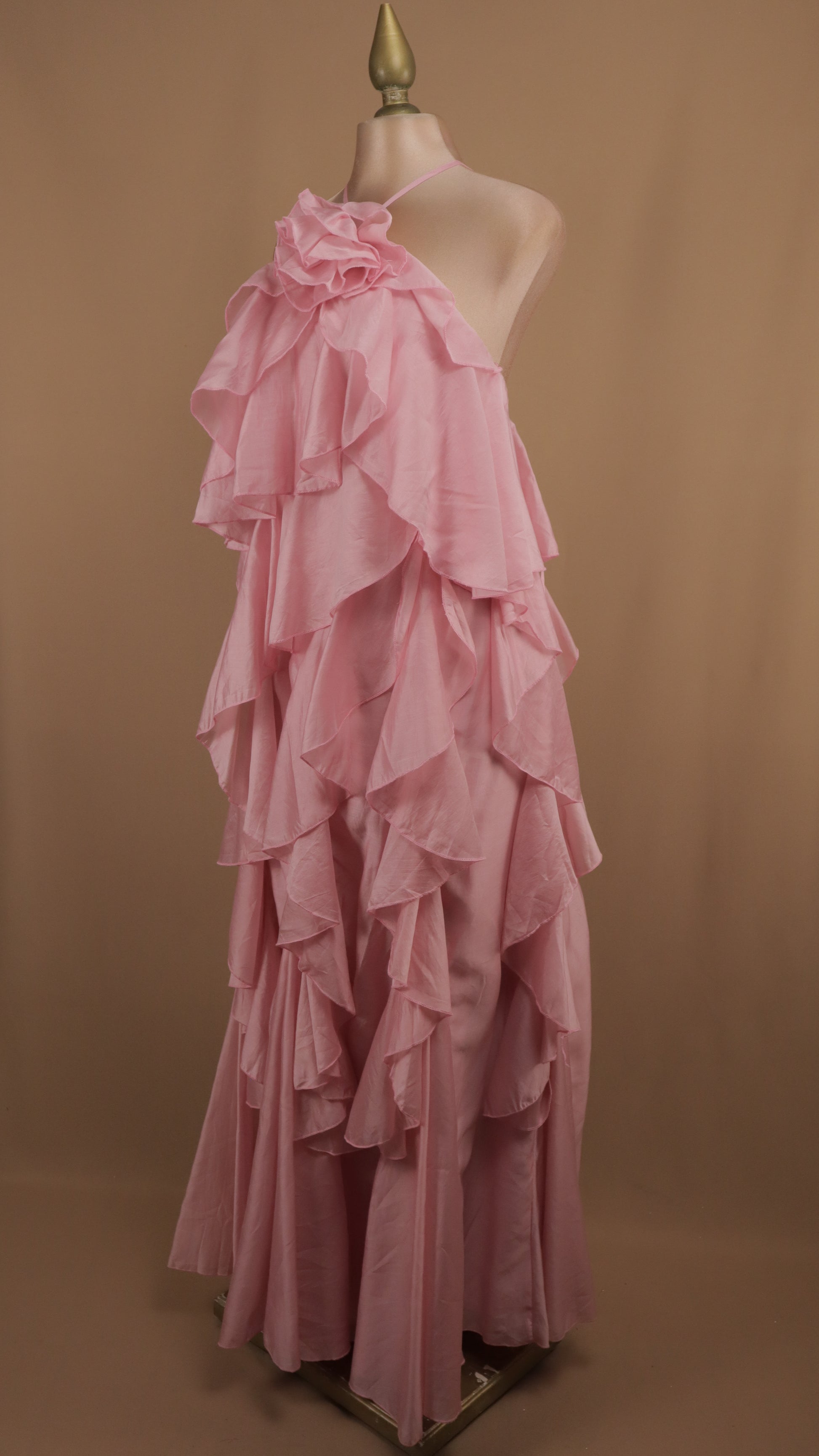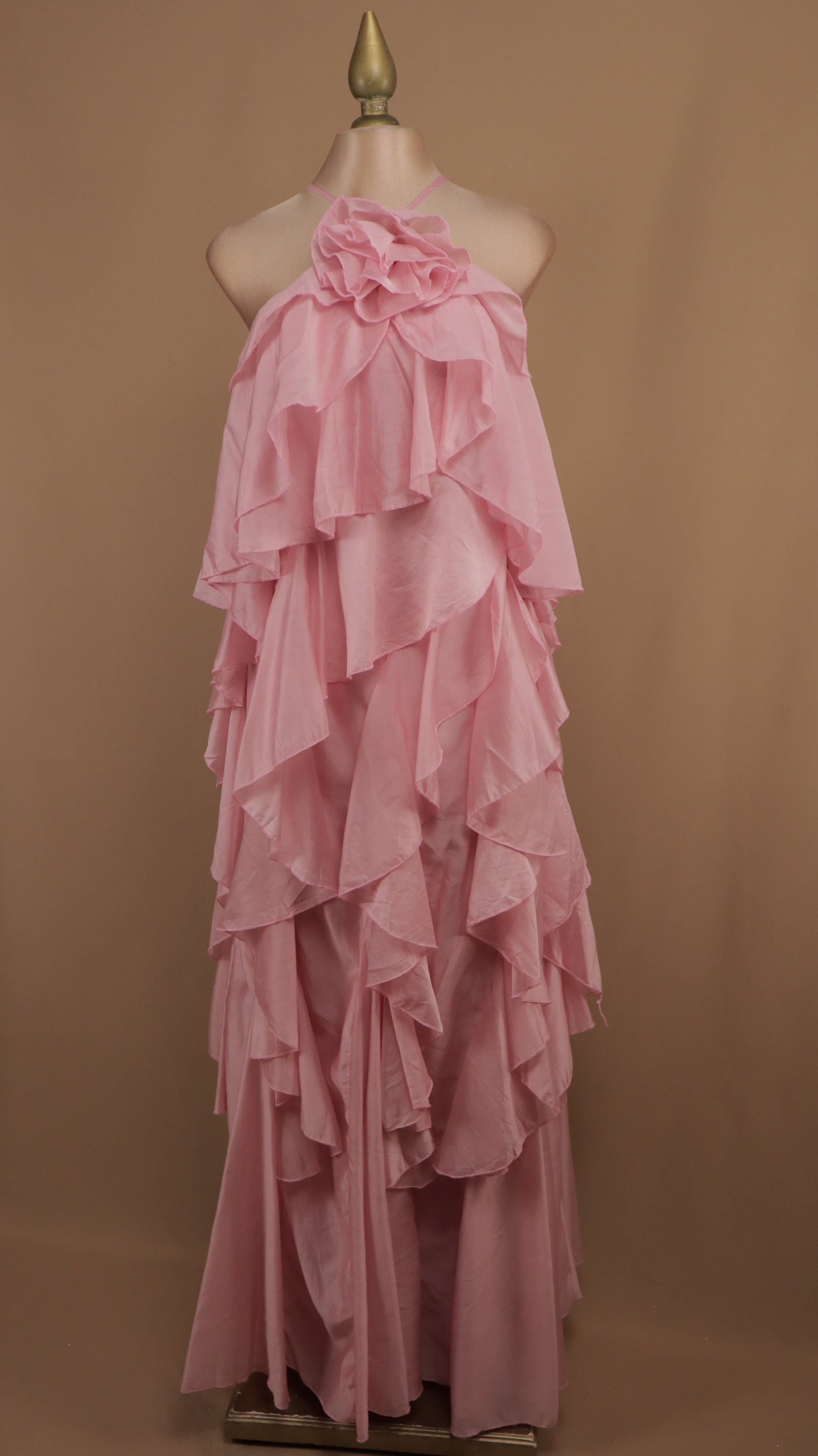Vestido largo halter y olanes