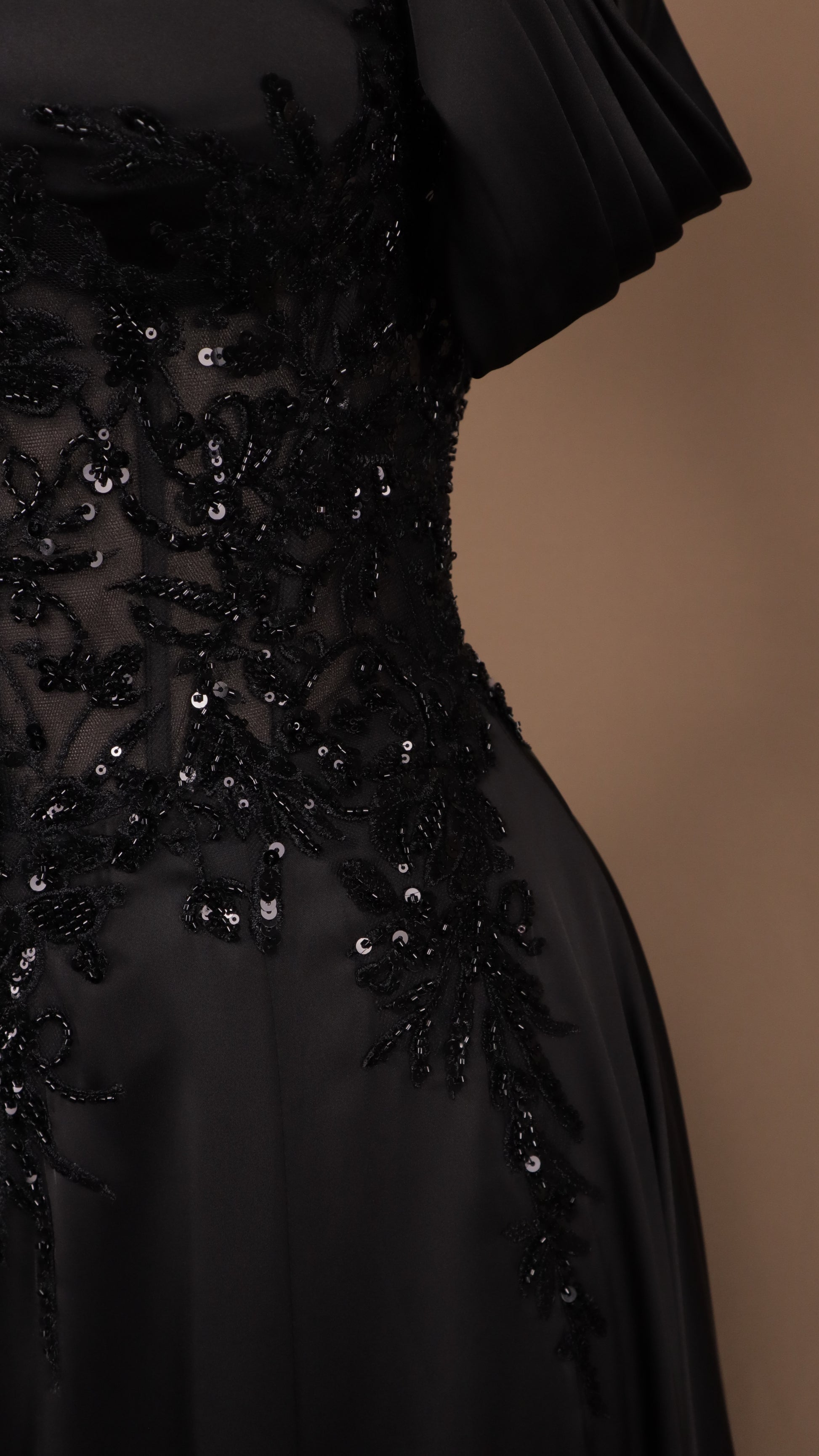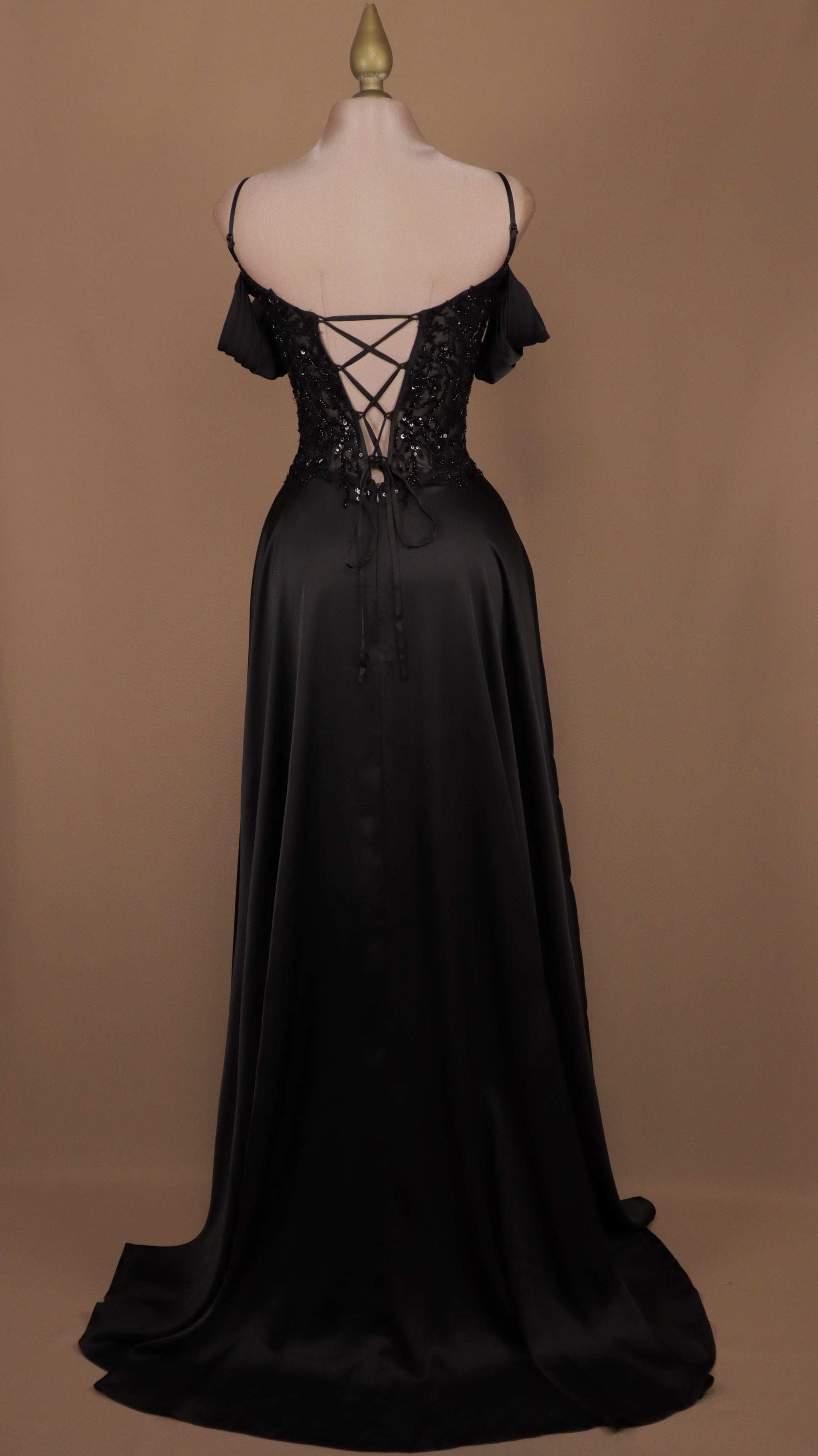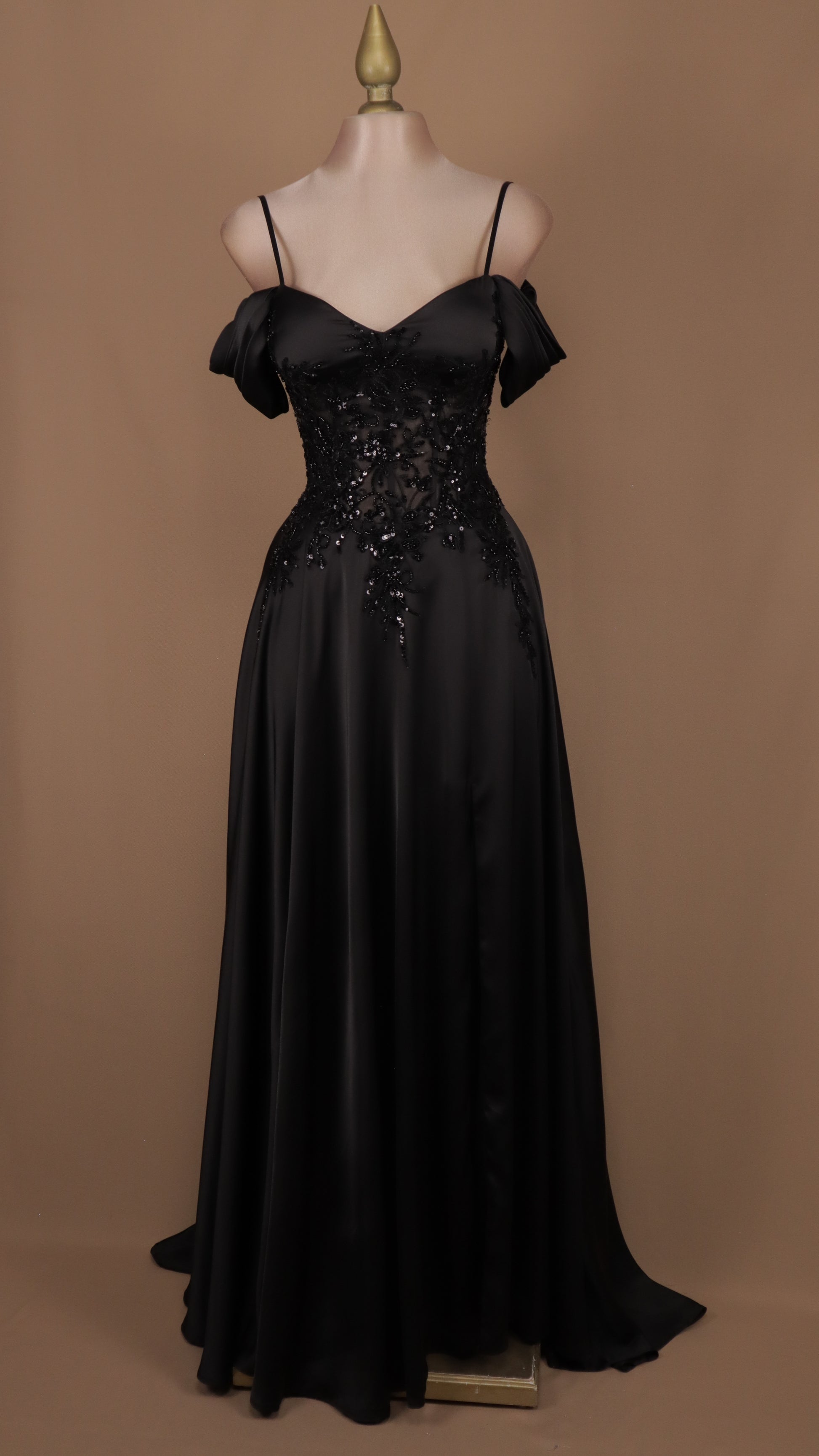 Enamórate de este elegante vestido largo que combina sofisticación y estilo. Sus delicados tirantes y escote al hombro realzan tu figura con feminidad, mientras que las aplicaciones decorativas añaden un toque único que captará todas las miradas. Perfecto para eventos especiales donde deseas destacar con un look inolvidable.