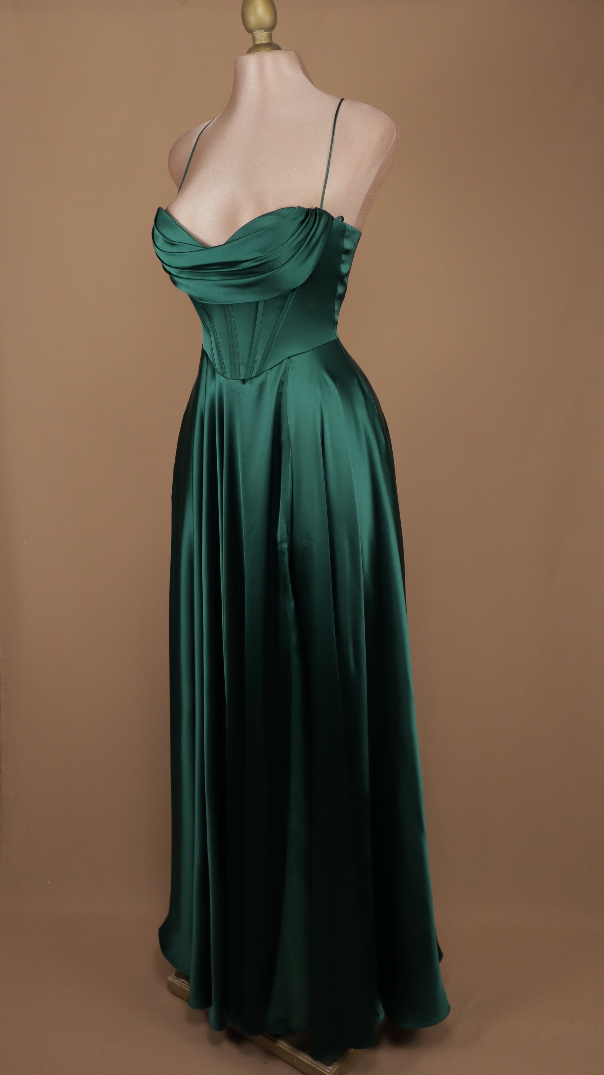 ¡Siéntete como una verdadera reina con nuestro vestido largo línea A! El corset te ayudará a realzar tu figura mientras que la abertura en la pierna te dará un toque de sensualidad. Perfecto para cualquier ocasión, ¡este vestido es una verdadera joya en tu armario!
