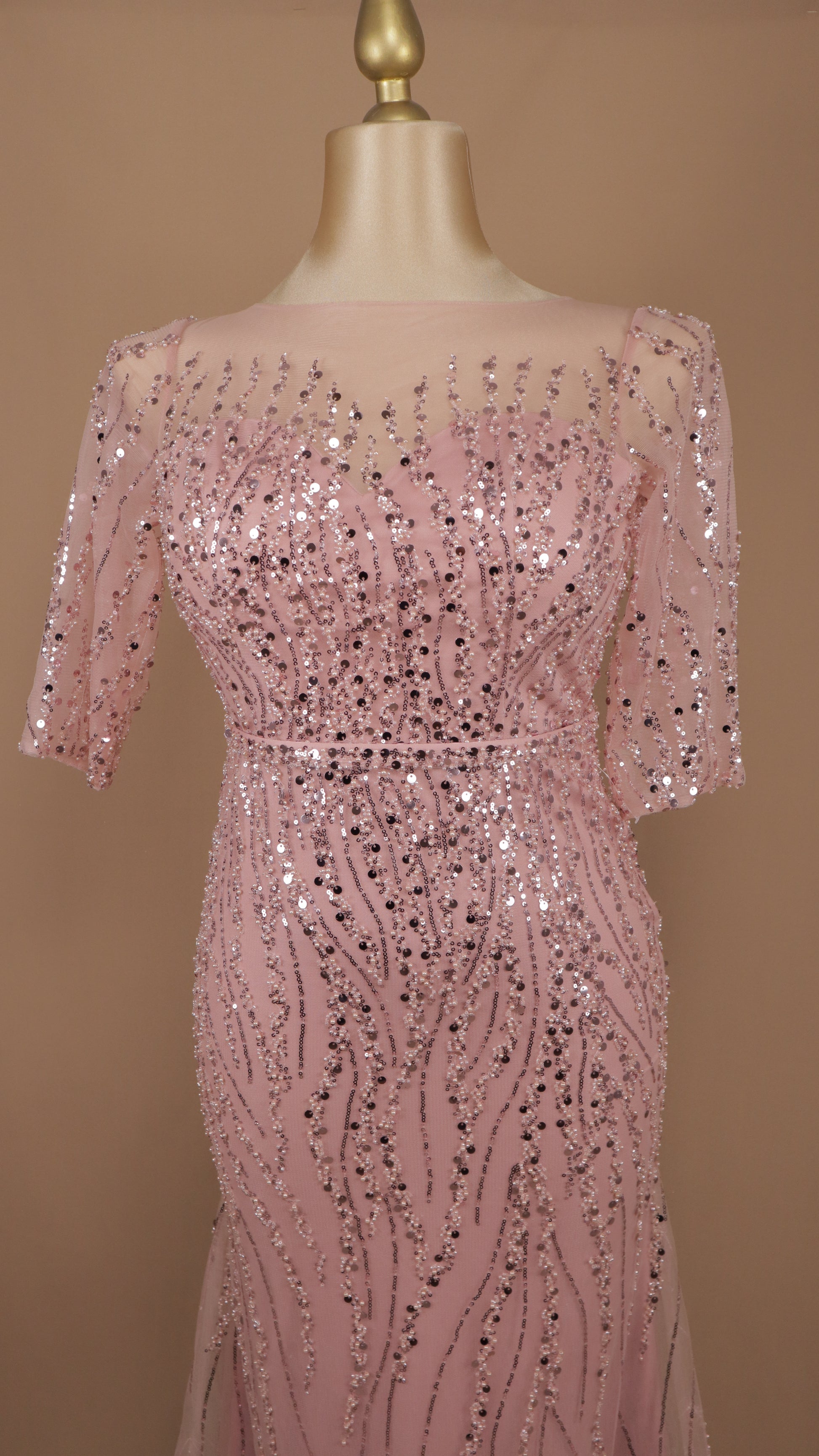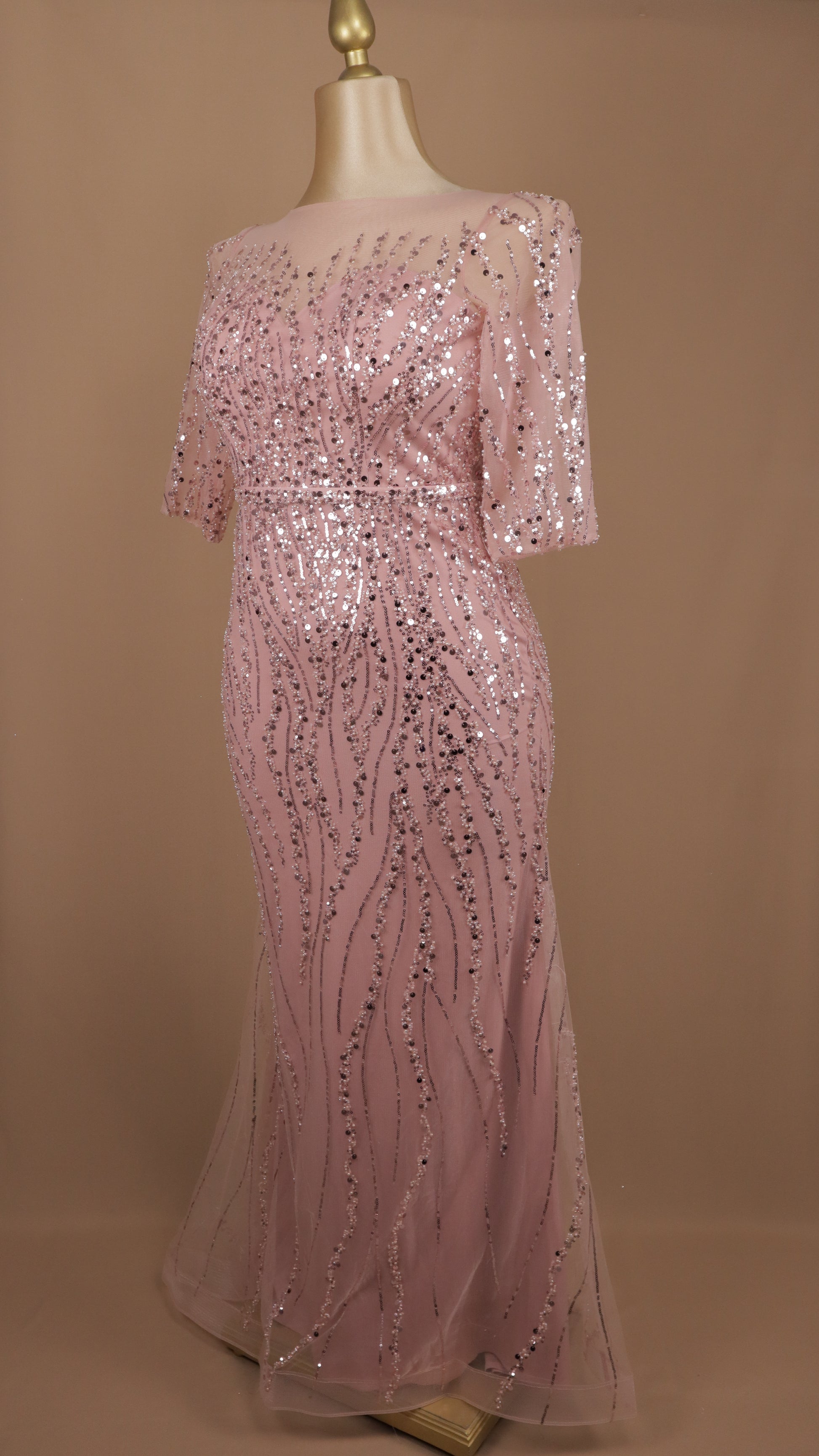 ¡Luce elegante y glamurosa con nuestro vestido largo plus con lentejuela! Diseñado con manga 3/4, corte sirena y detalles brillantes que te harán destacar en cualquier ocasión especial. ¡Siéntete segura y deslumbra a todos con este vestido de alta costura!