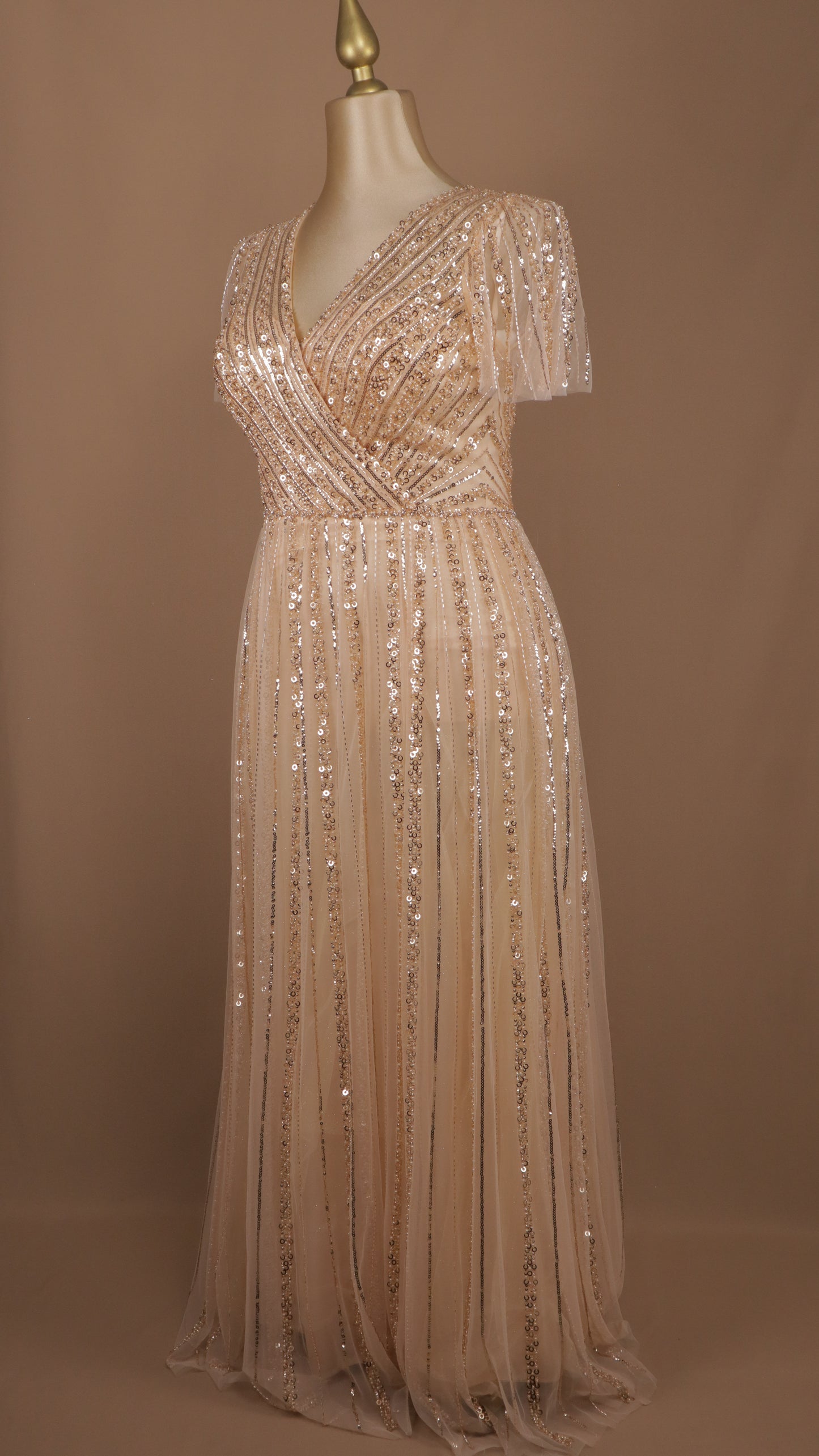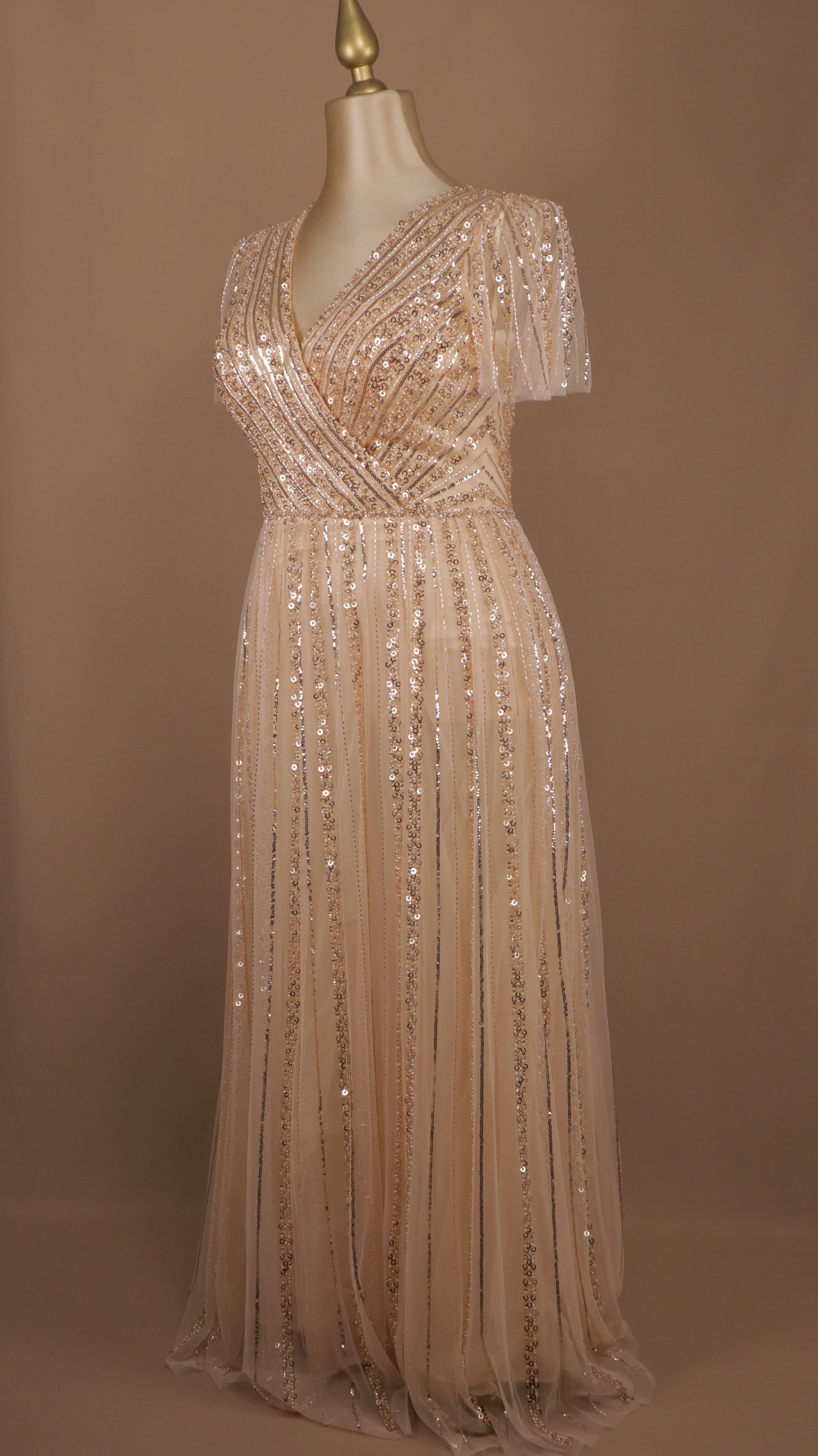 ¡Luce elegante con nuestro vestido largo plus size con aplicación y manga corta! Perfecto para cualquier ocasión, su tela suave y cómoda te hará sentir segura y hermosa mientras realzas tus curvas. El diseño con aplicaciones agrega un toque de glamour y la manga corta te mantiene fresca y cómoda. ¡Haz una declaración de moda con este vestido único!