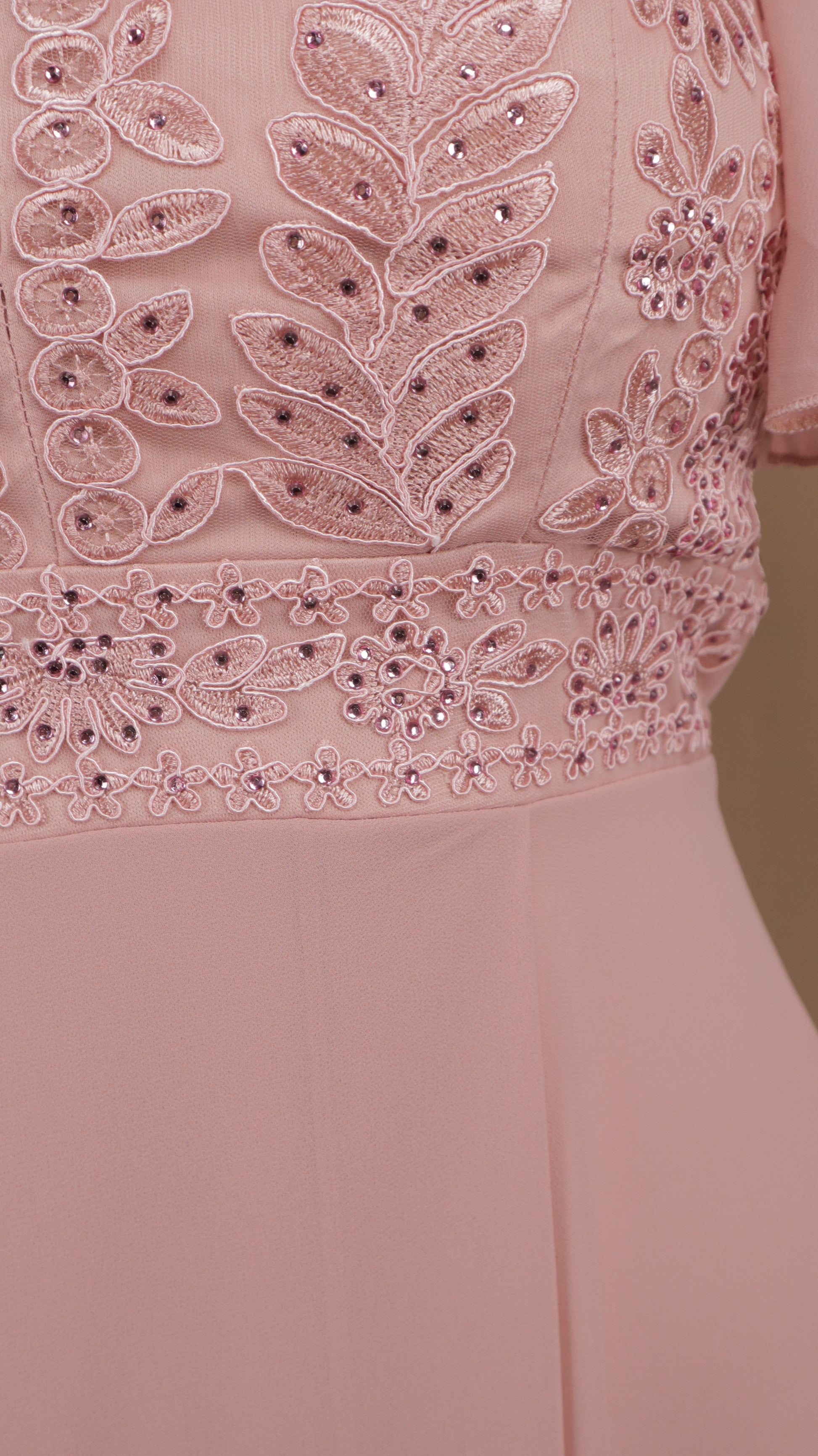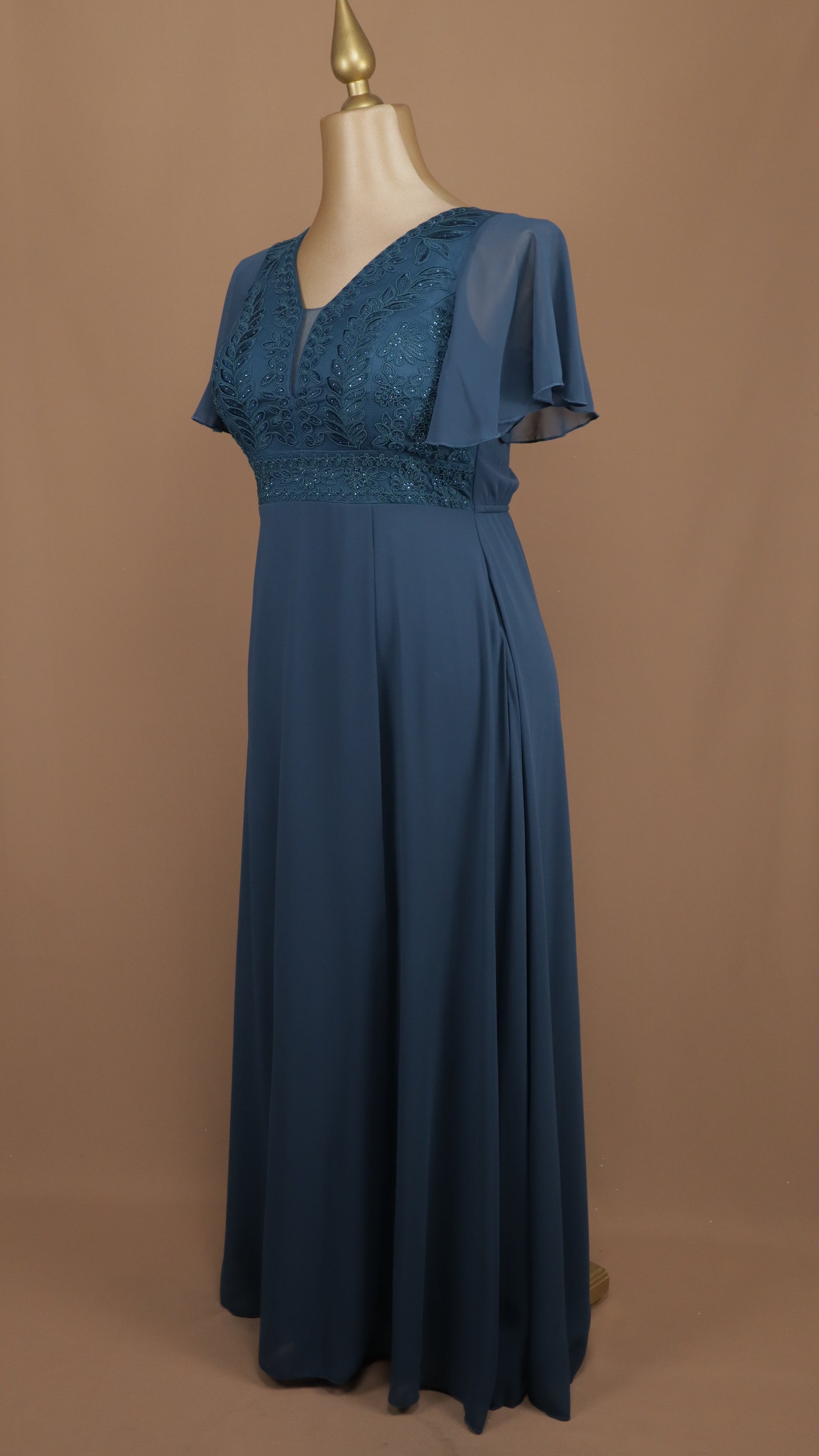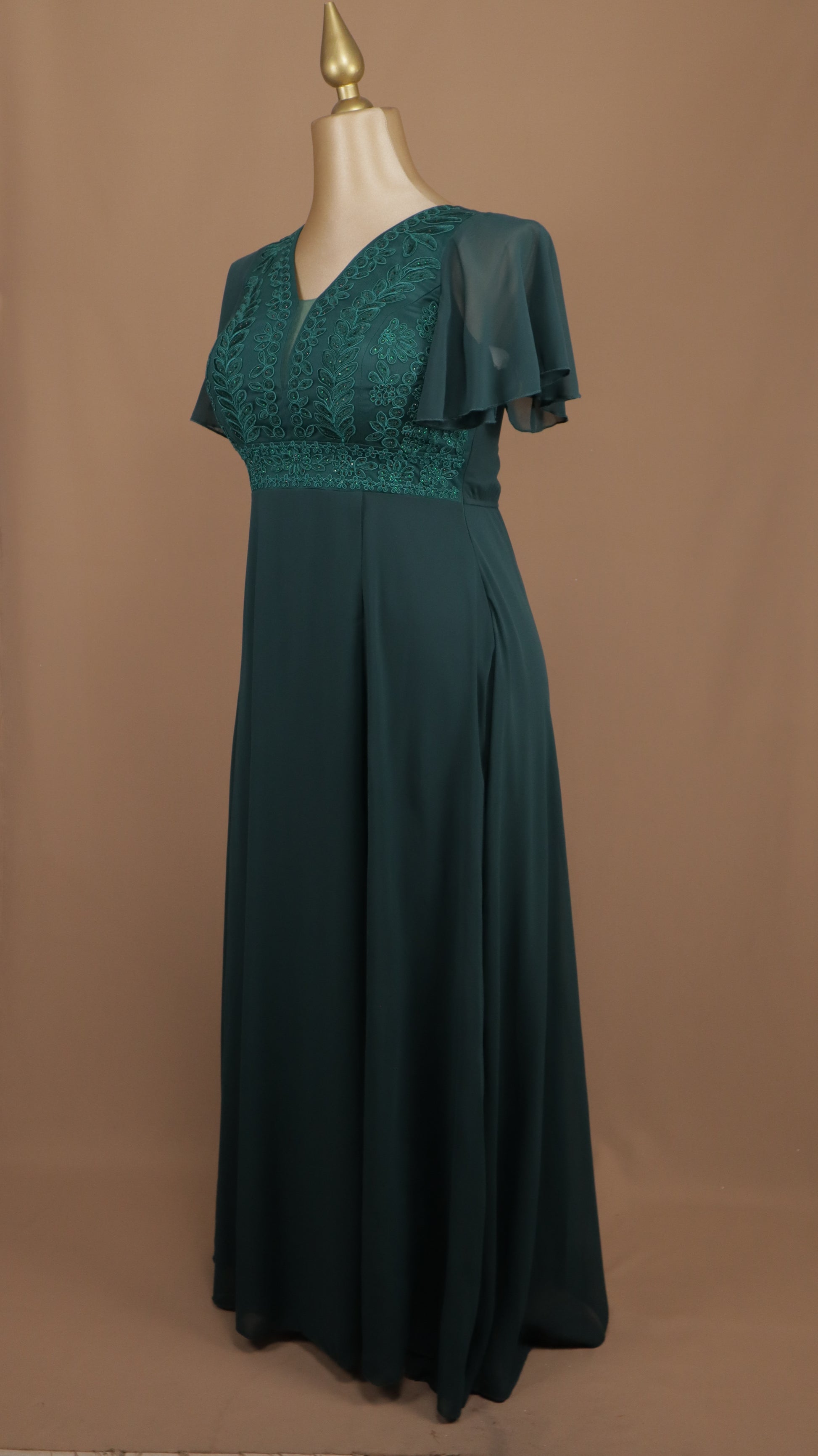 Este vestido largo plus size resalta tu figura con elegancia y comodidad. La delicada pedrería en el busto aporta un toque de sofisticación, mientras que las mangas 3/4 ofrecen un estilo favorecedor y práctico. Perfecto para ocasiones especiales, te brinda confianza y un ajuste cómodo que realza tu belleza natural.