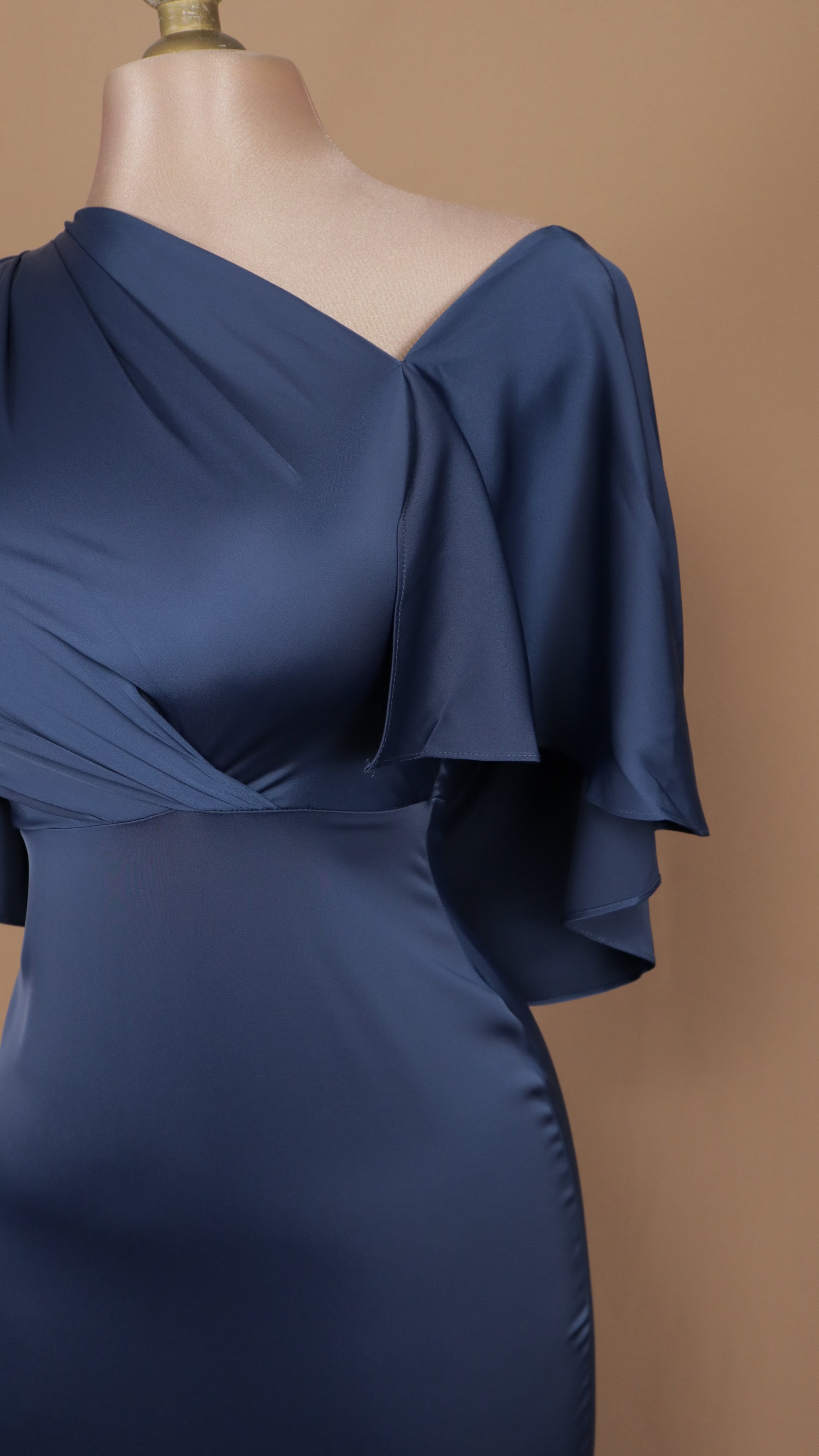 Este vestido largo de satín con capa combina elegancia y sofisticación para cualquier ocasión especial. Su tela satinada ofrece un brillo sutil que realza tu figura, mientras que la capa añade un toque dramático y moderno. Perfecto para destacar con estilo y comodidad, este diseño te hará sentir segura y deslumbrante en cada evento.