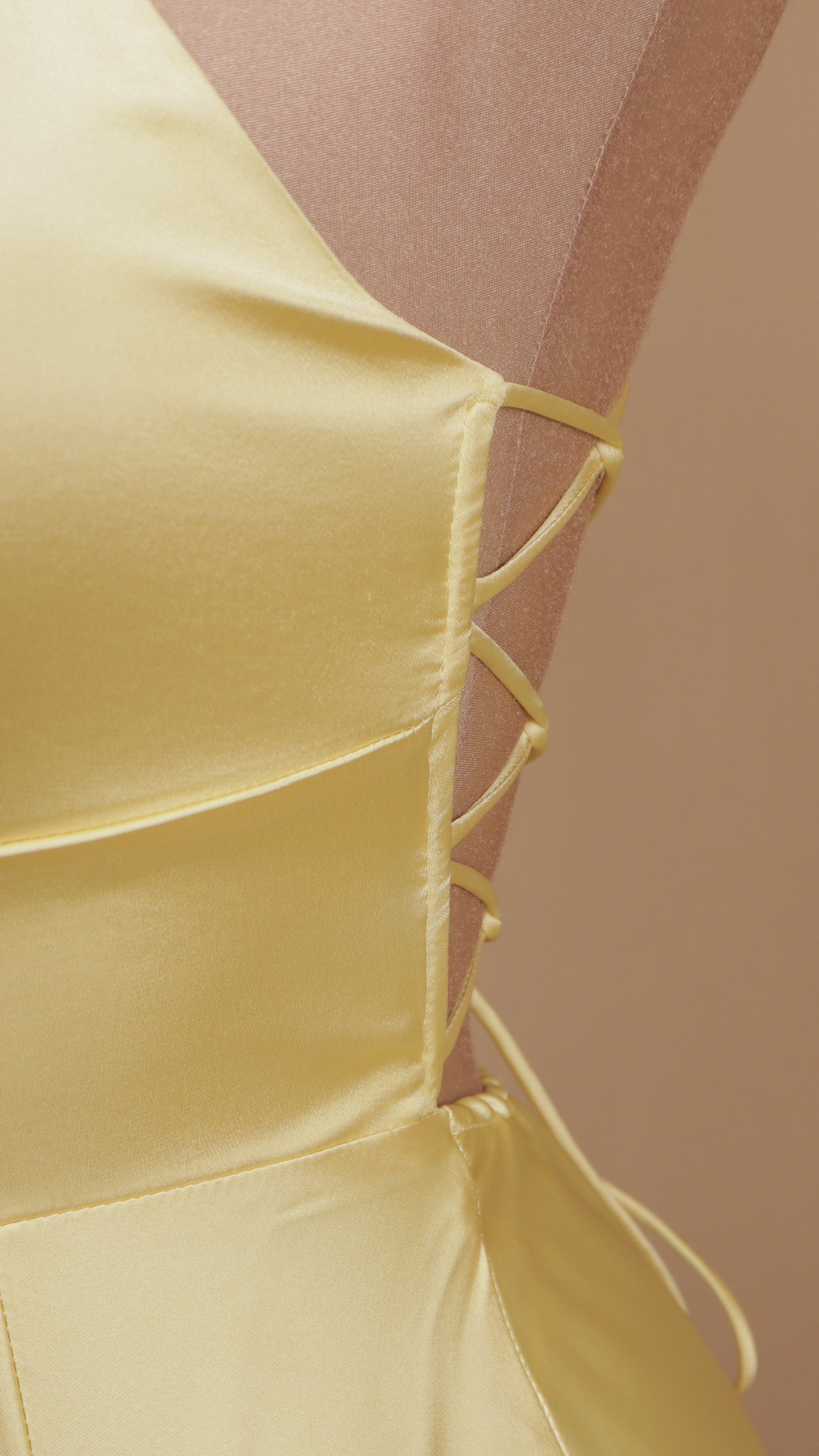 ¡Un vestido de satín tendencia! Serás la más atrevida con este vestido con abertura en el escote. ¡Atrévete a lucir un look moderno y de vanguardia!