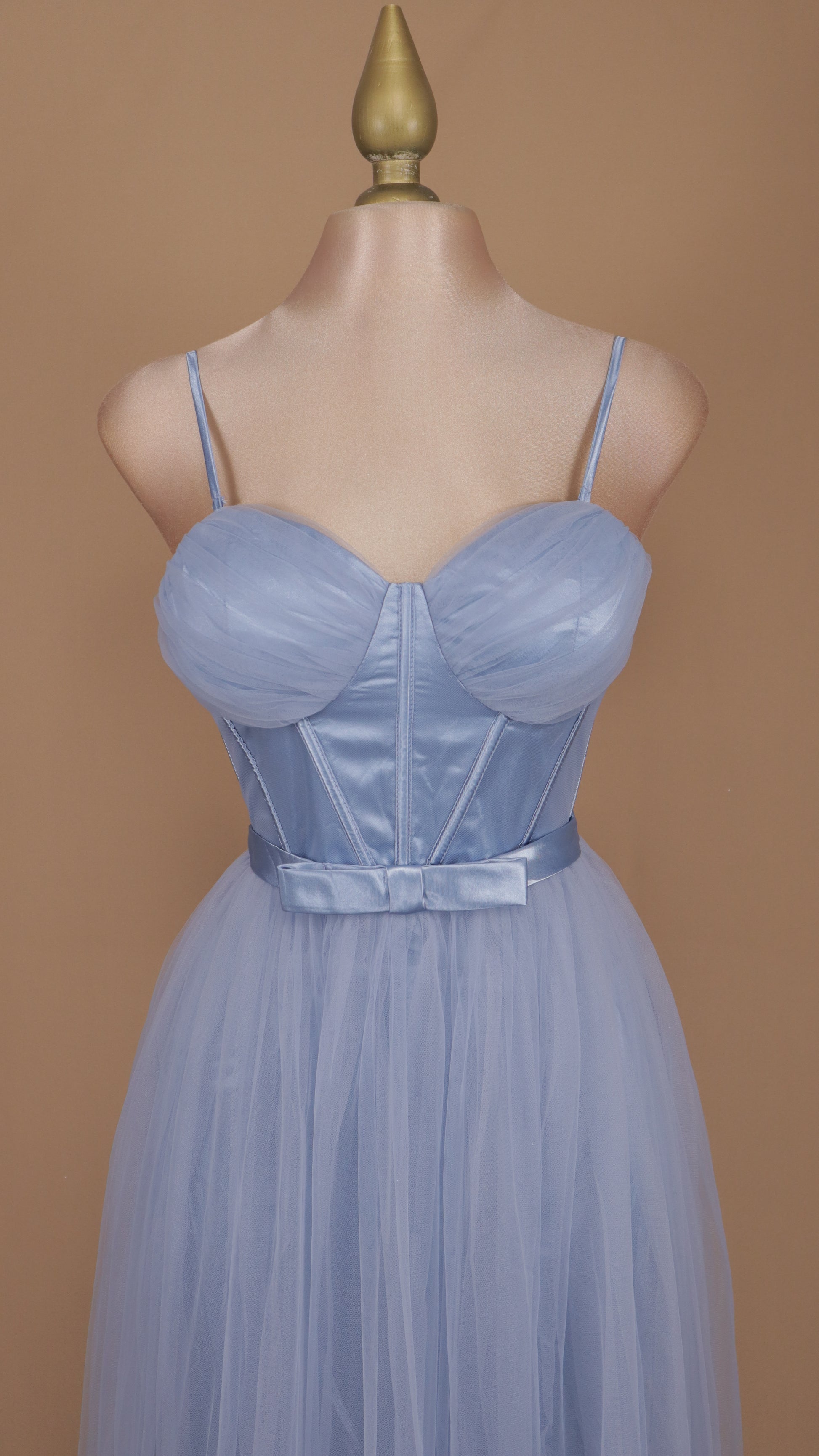 Este vestido largo de tul con corset combina elegancia y estilo para cualquier ocasión especial. Su diseño de tirantes realza la figura, mientras que el corset ofrece un ajuste favorecedor y cómodo.