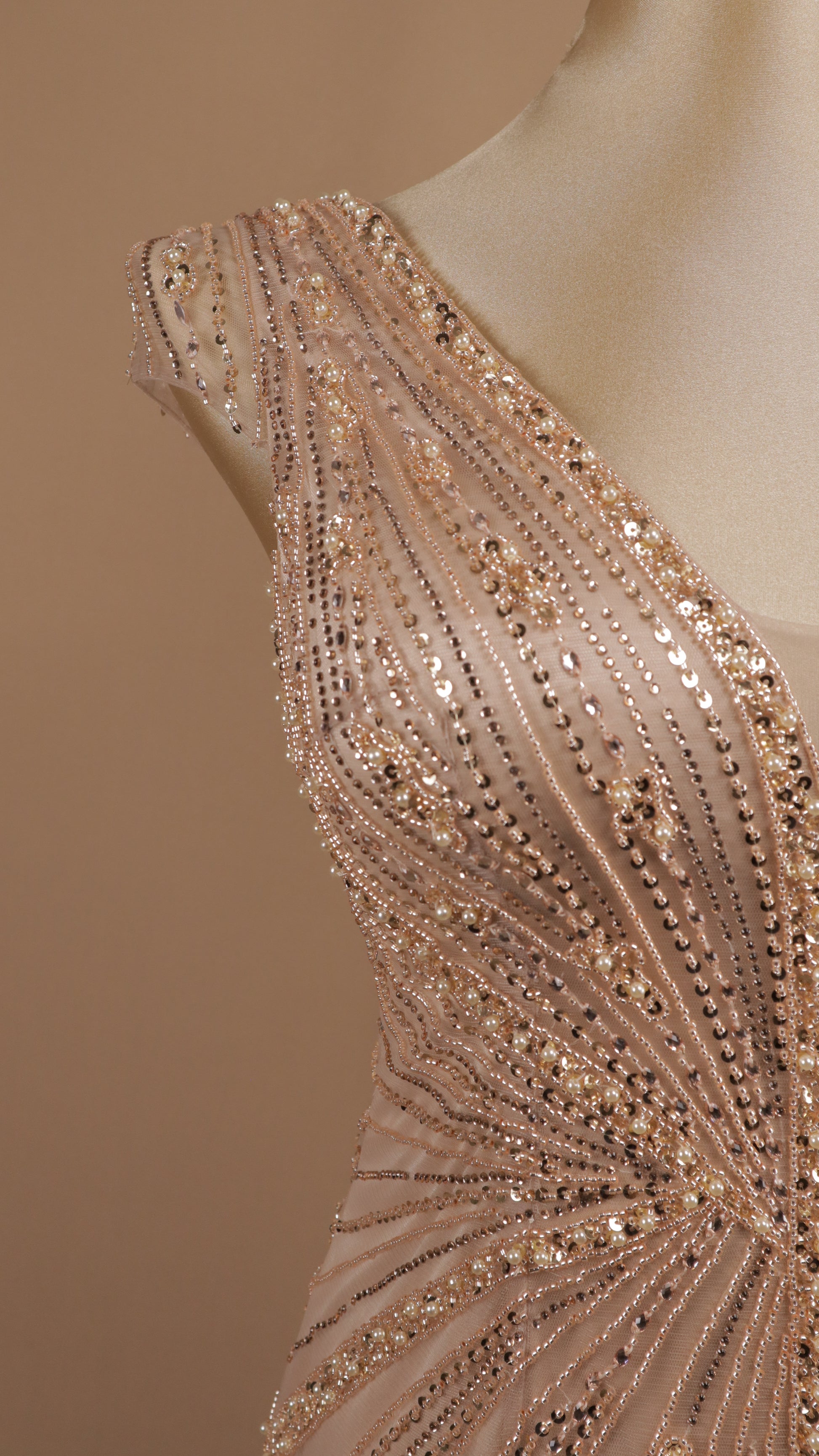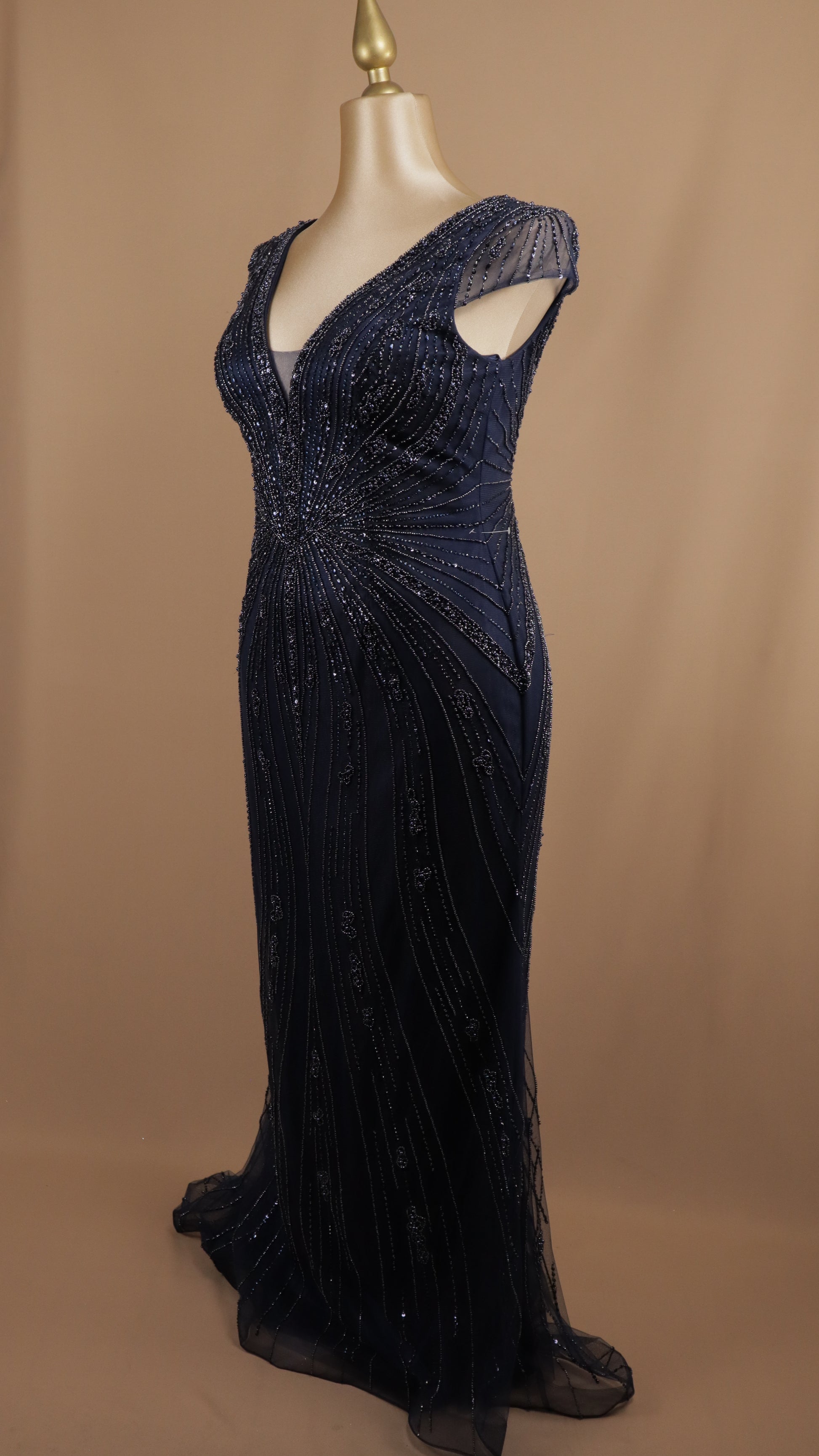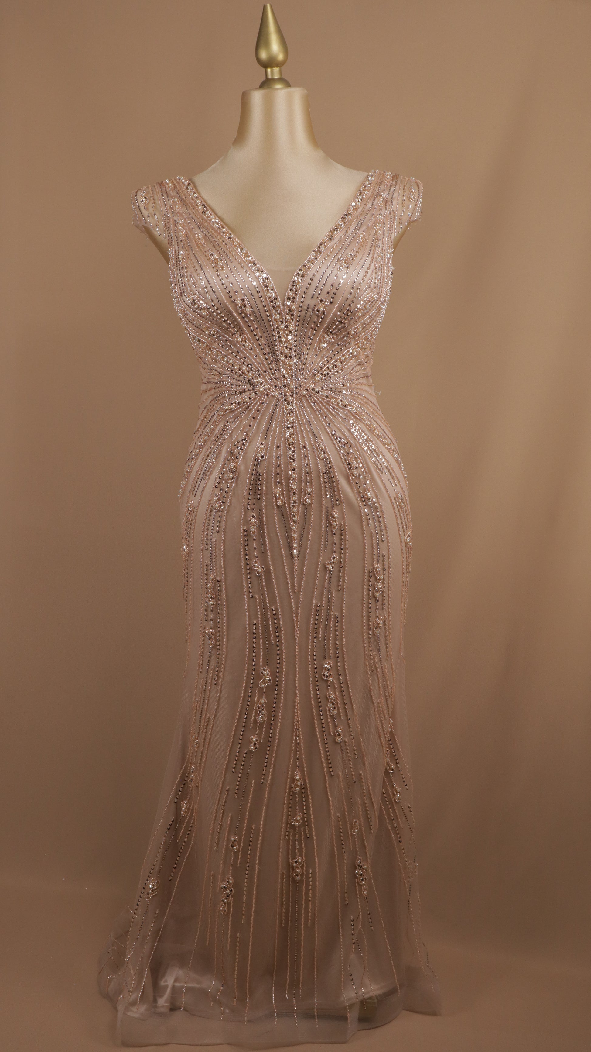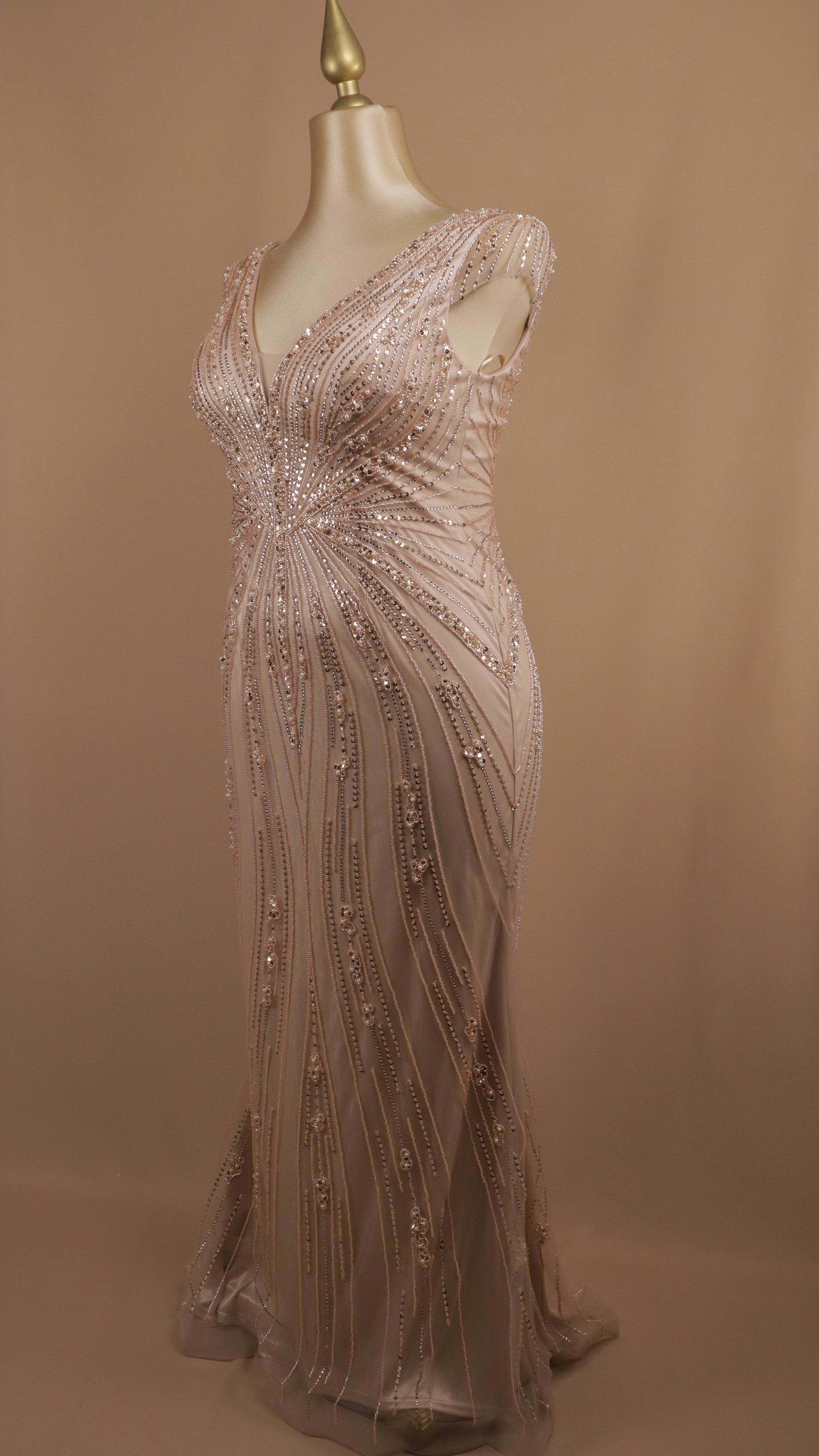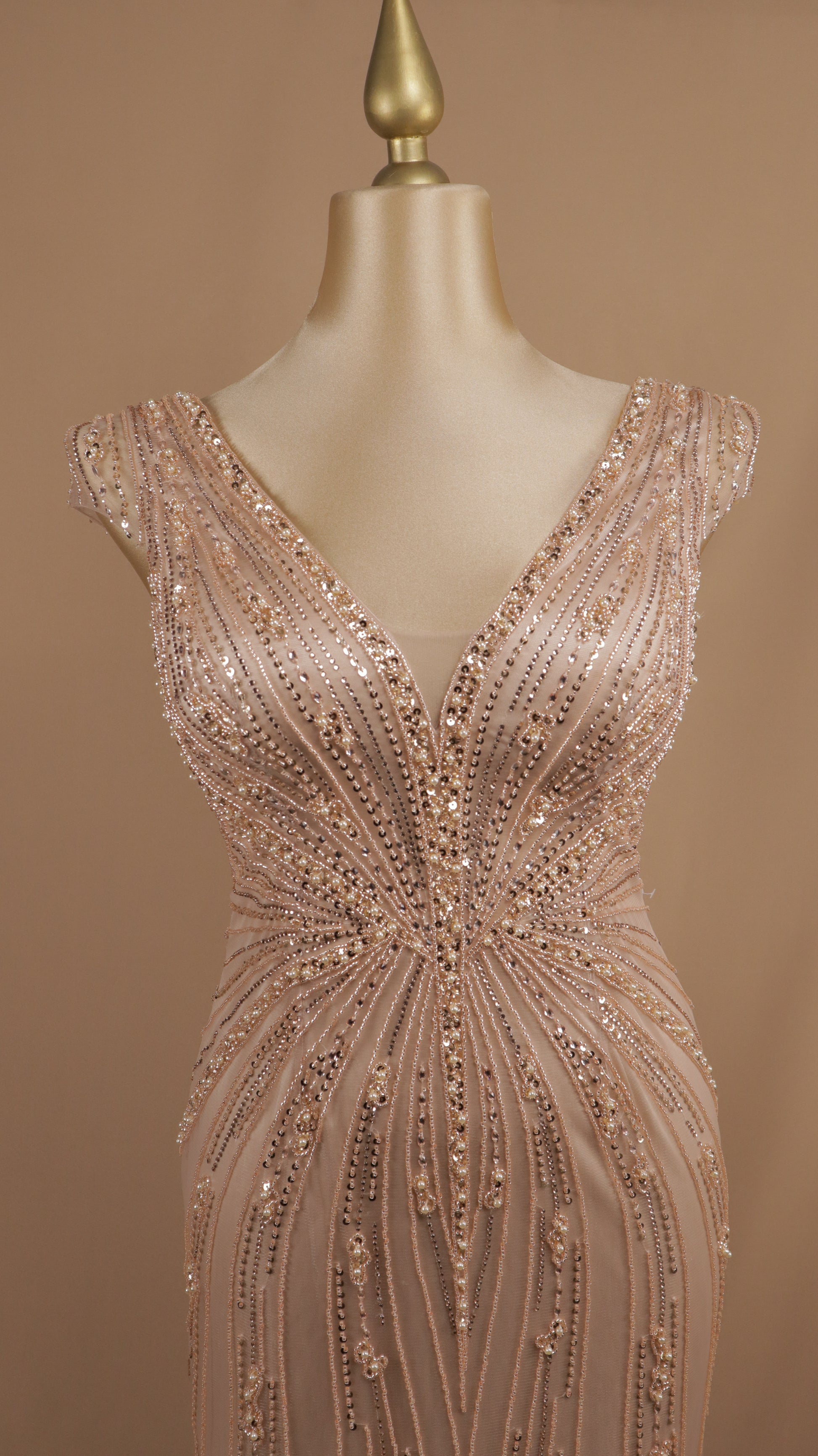 Vestido largo extra con aplicación y escote en V