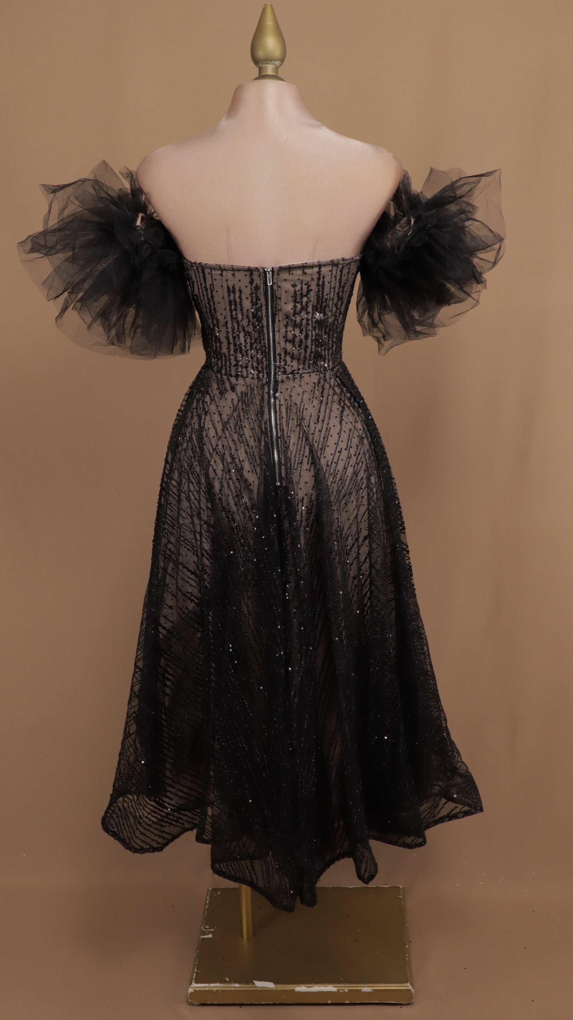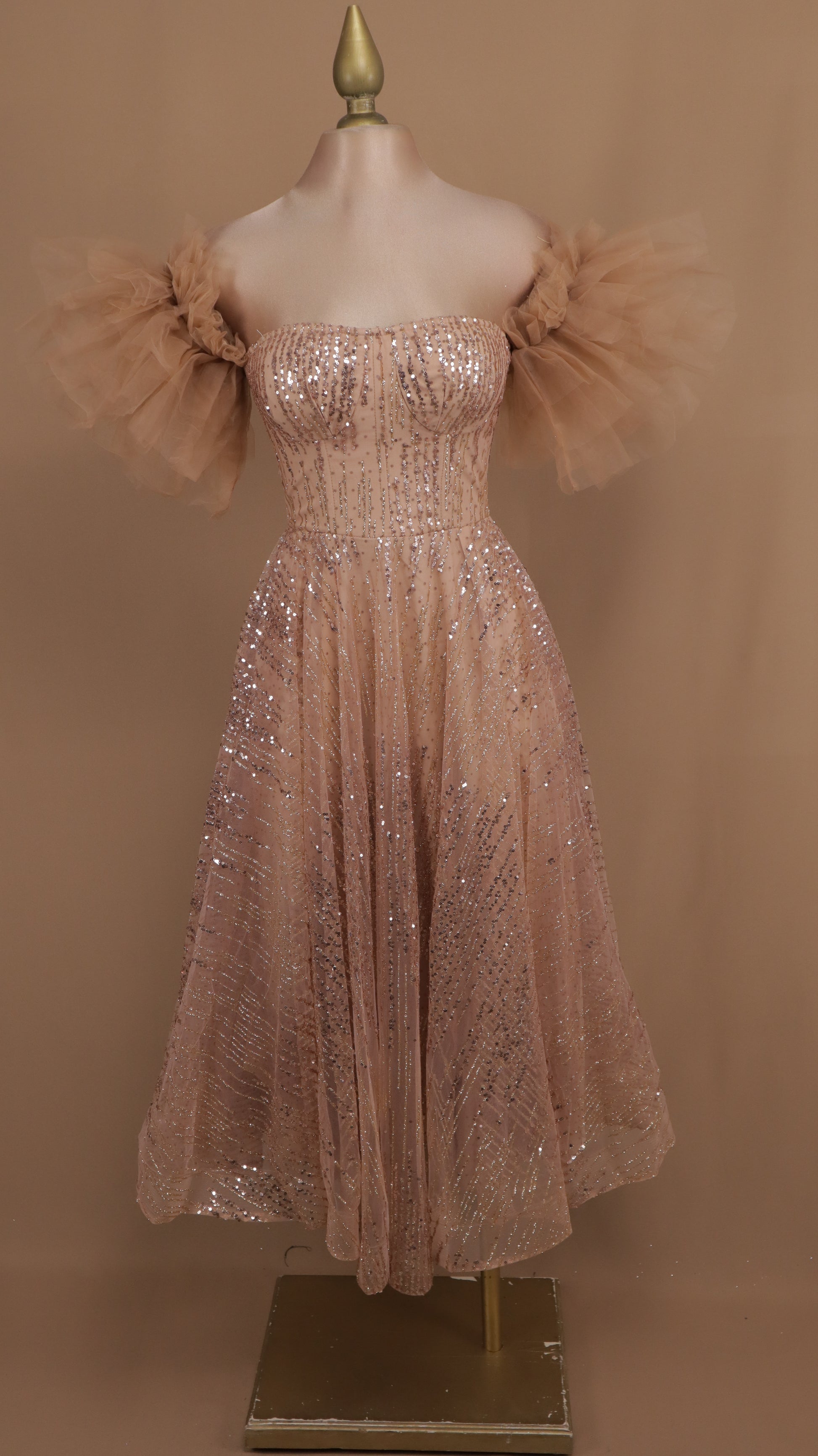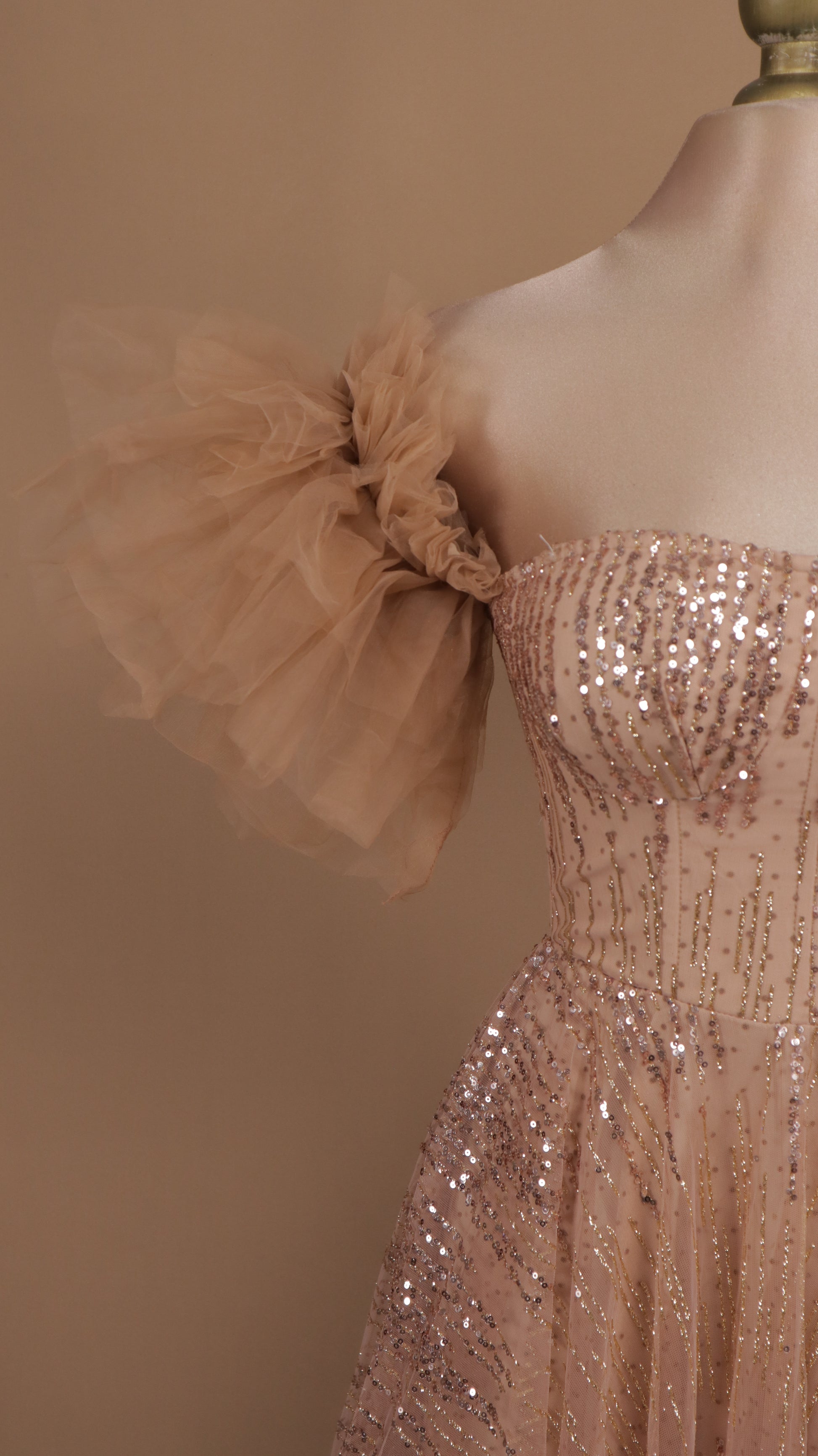 Vestido maxi al hombro con lentejuela