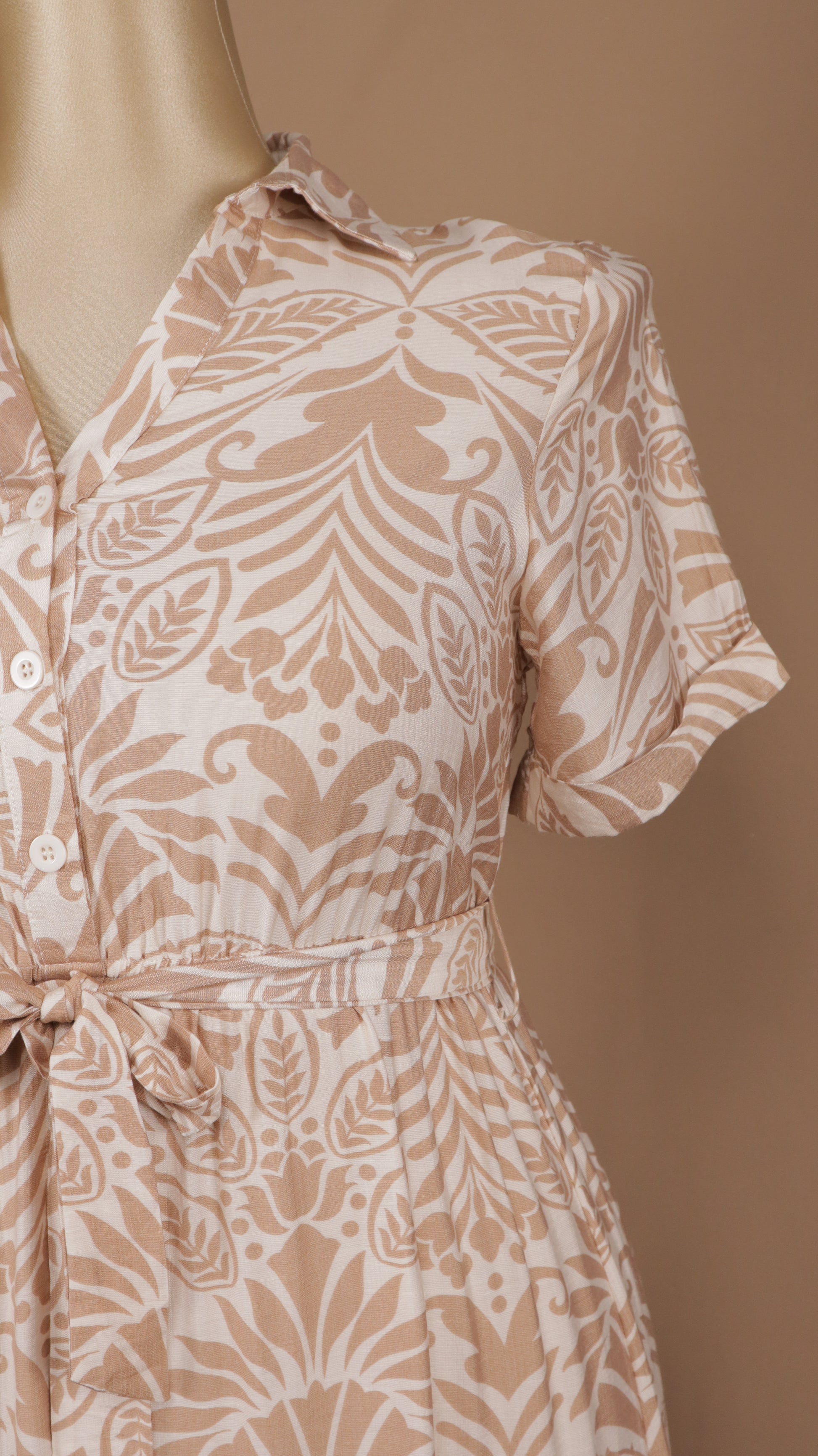 ¡Luce radiante en este vestido maxi estampado con manga corta! Con su hermoso diseño y mangas cortas, este vestido te mantendrá fresca y elegante durante todo el día. Perfecto para cualquier ocasión, ¡este vestido es una pieza imprescindible en tu guardarropa de verano!