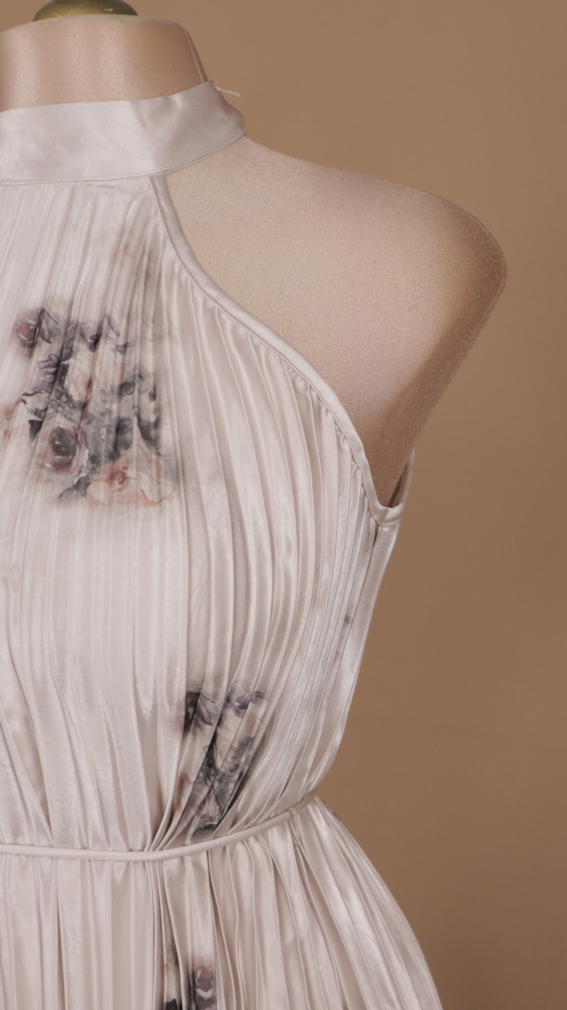 Este vestido maxi con cuello halter plisado y estampado combina elegancia y comodidad para cualquier ocasión especial. Su diseño fluido realza la figura mientras el estampado vibrante aporta un toque único y sofisticado. Perfecto para destacar con estilo y frescura en eventos diurnos o nocturnos.