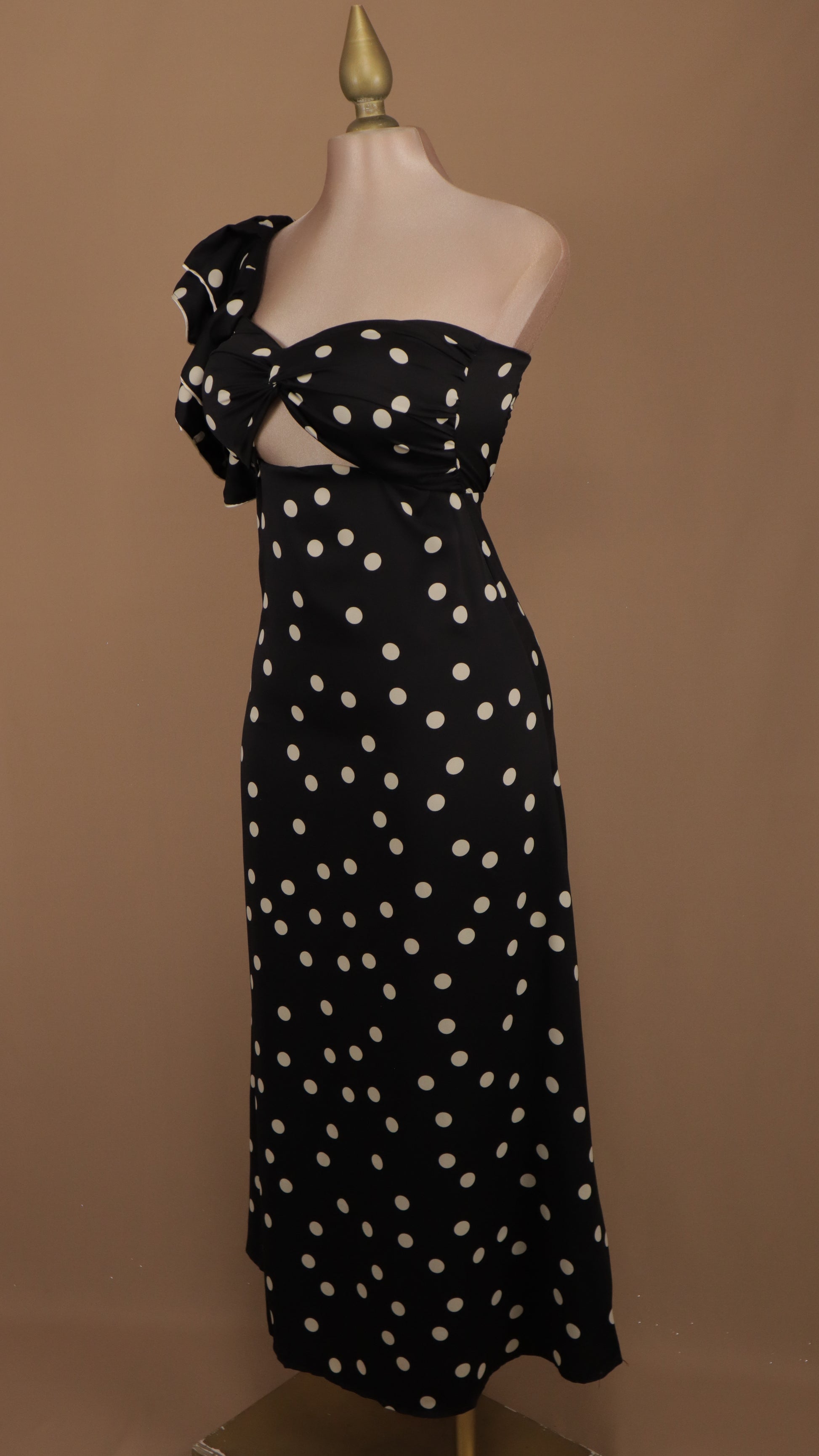 Este vestido midi estampado destaca por su escote asimétrico que aporta un toque moderno y sofisticado. Su diseño boleado ofrece un movimiento fluido y elegante, ideal para cualquier ocasión especial. Combina estilo y comodidad para que te sientas única y segura en cada paso.