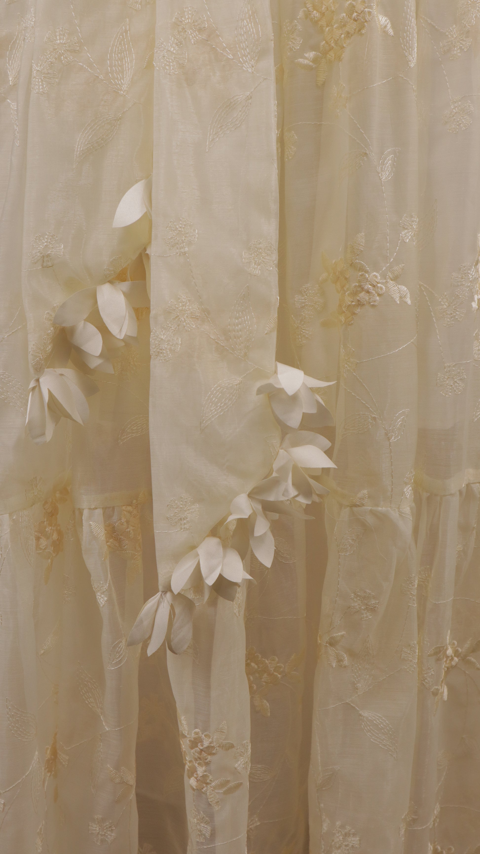 El bordado detallado en las hojas crea un efecto visual único que destaca bajo cualquier luz. Largo midi versátil que favorece la mayoría de siluetas, ideal para quienes buscan prendas con personalidad y estilo contemporáneo.