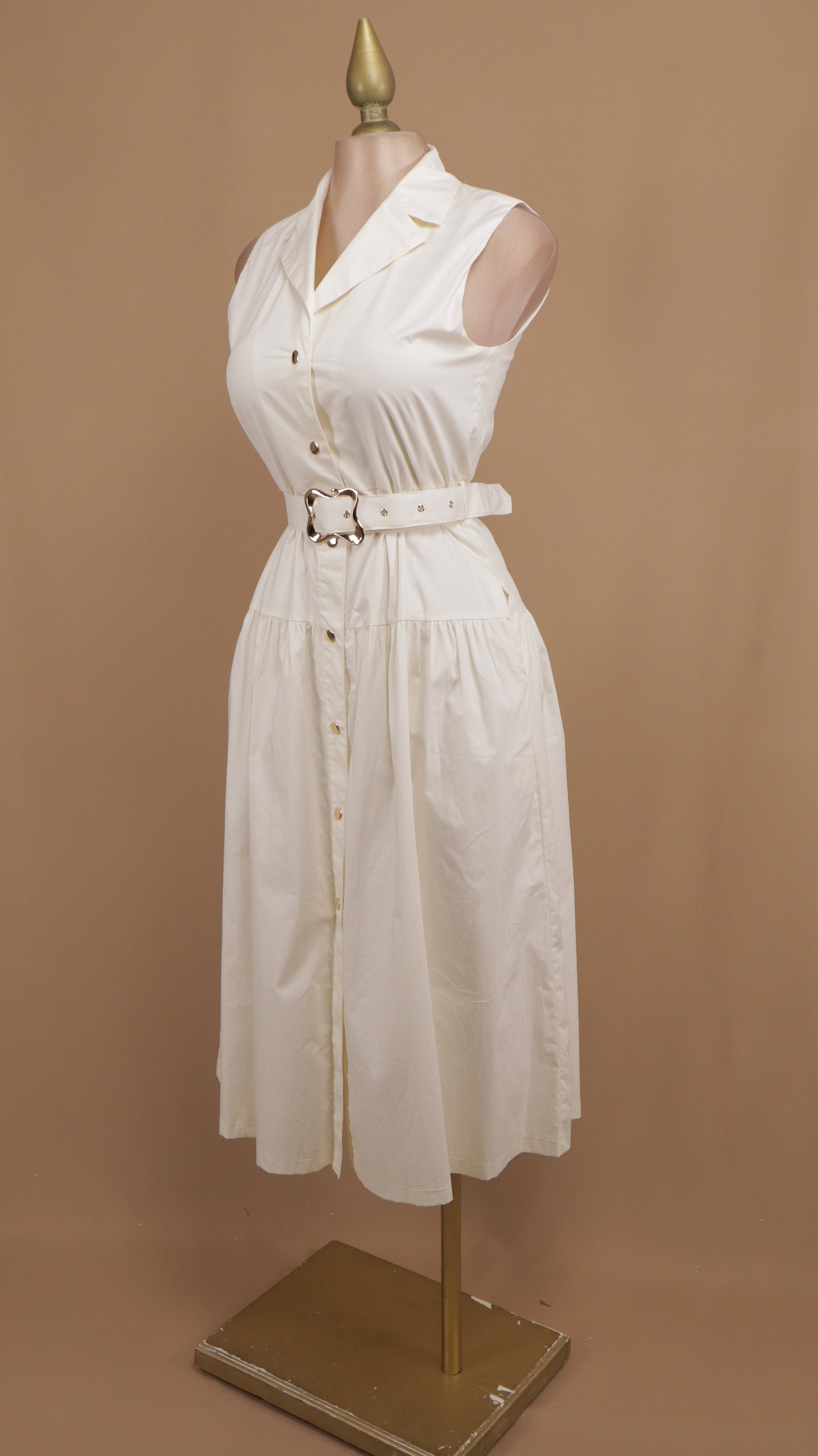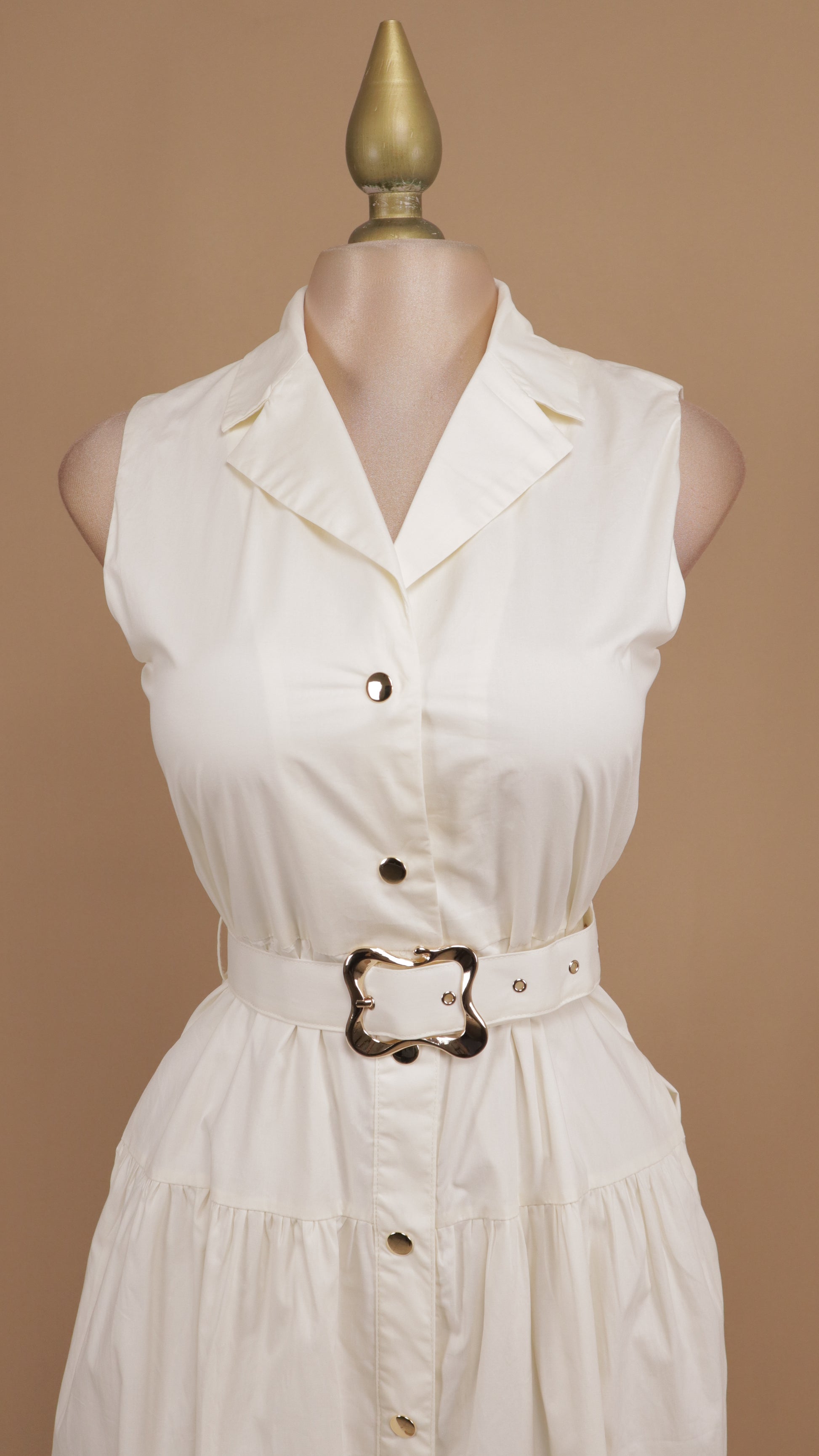 Este vestido midi destaca por su elegante cuello que enmarca el rostro con delicadeza y un cinturón que realza la cintura, ofreciendo una silueta femenina y sofisticada. Ideal para ocasiones especiales o para darle un toque chic a tu día a día, combina comodidad y estilo en una sola prenda. No pierdas la oportunidad de lucir moderna y refinada con este diseño versátil.