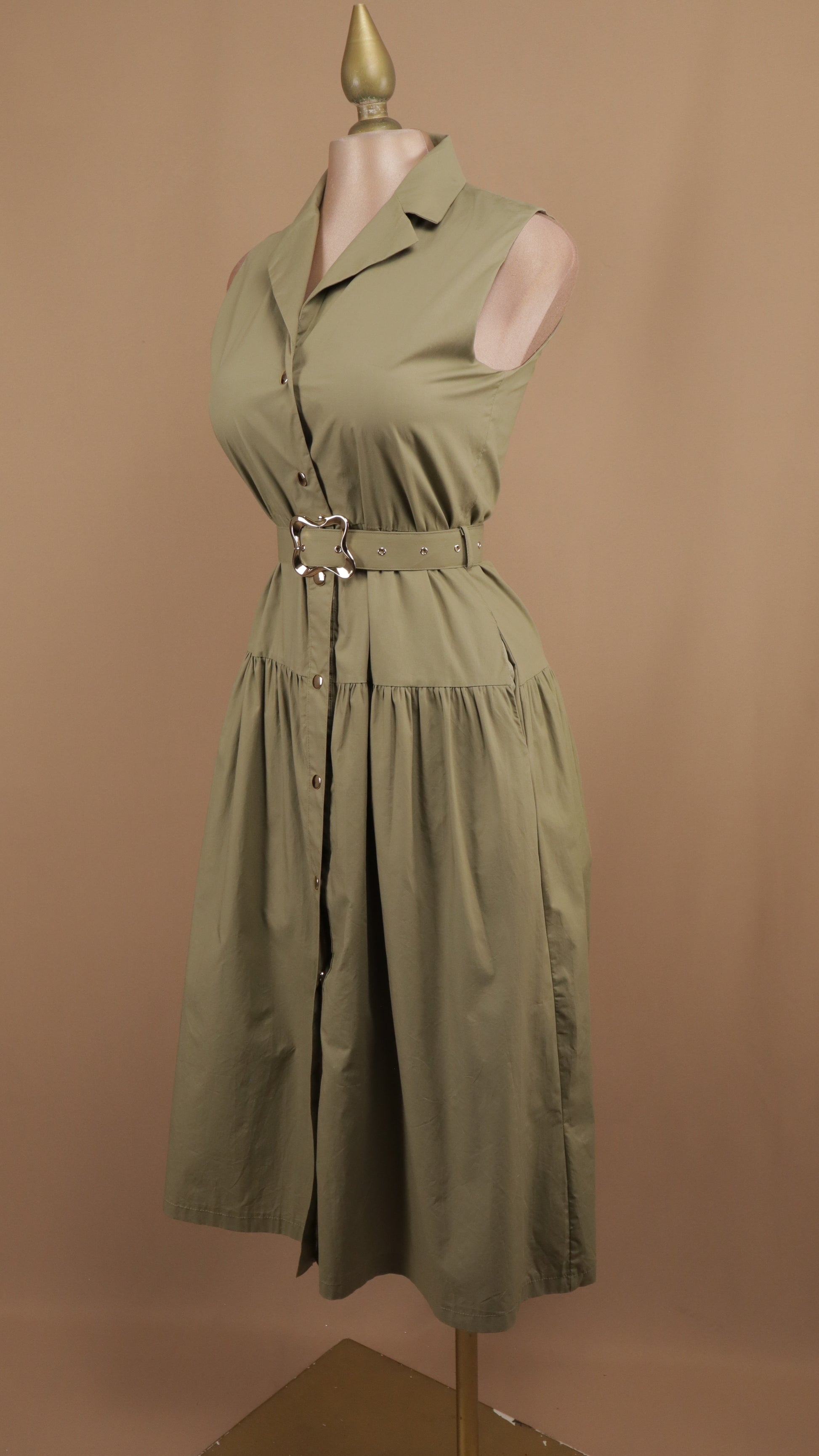 Este vestido midi destaca por su elegante cuello que enmarca el rostro con delicadeza y un cinturón que realza la cintura, ofreciendo una silueta femenina y sofisticada. Ideal para ocasiones especiales o para darle un toque chic a tu día a día, combina comodidad y estilo en una sola prenda. No pierdas la oportunidad de lucir moderna y refinada con este diseño versátil.